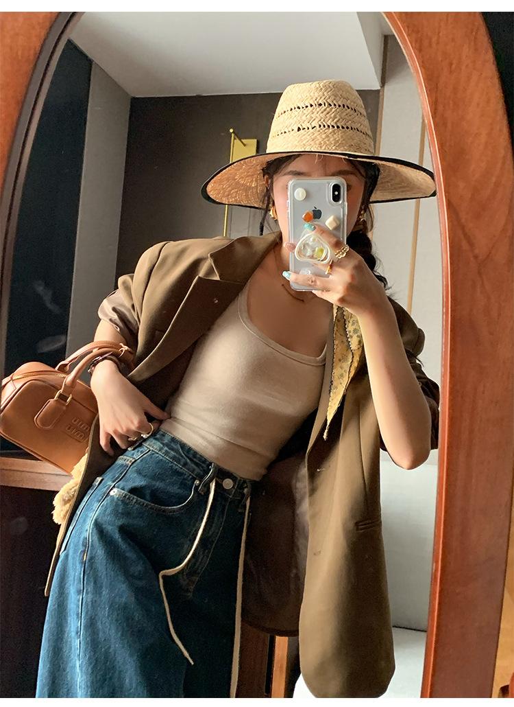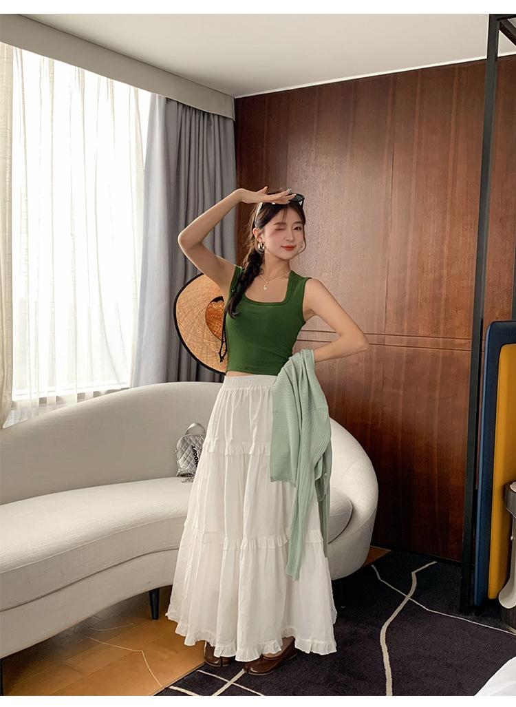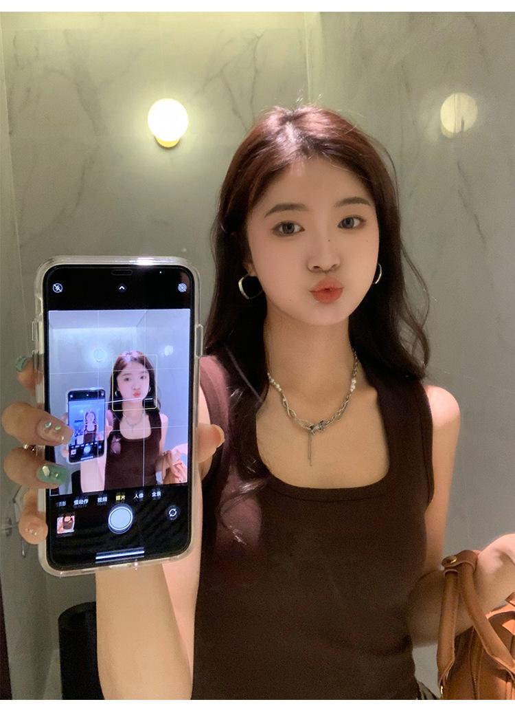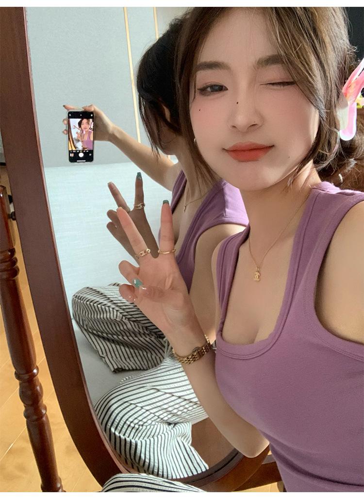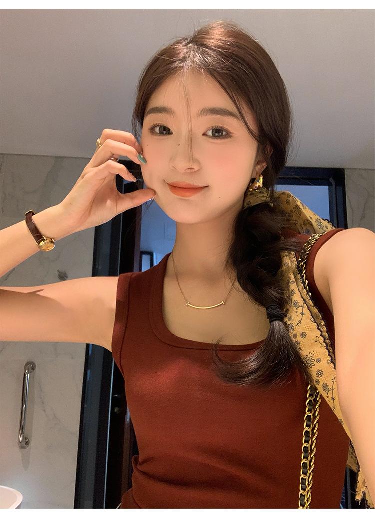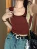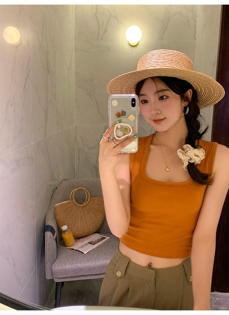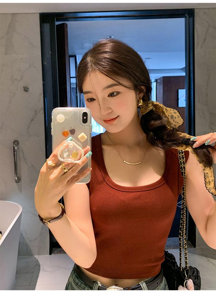 Camisola de Cuello Cuadrado para Mujer 2025 Verano Nuevo Estilo Tirantes Anchos Corta para Fondo con Top sin Mangas para Usar Exterior
