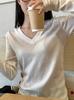 Camiseta interior blanca con cuello en V para mujer, otoño e invierno, holgada, corta, de color liso, ajustada, de manga larga, 2024