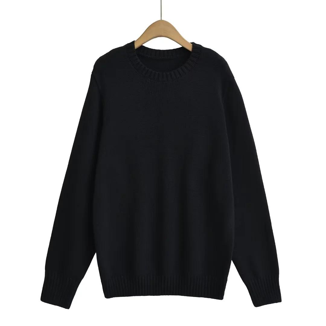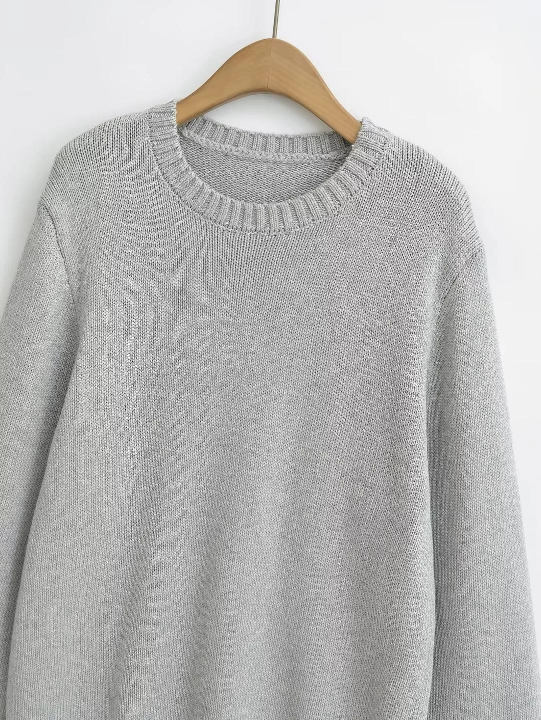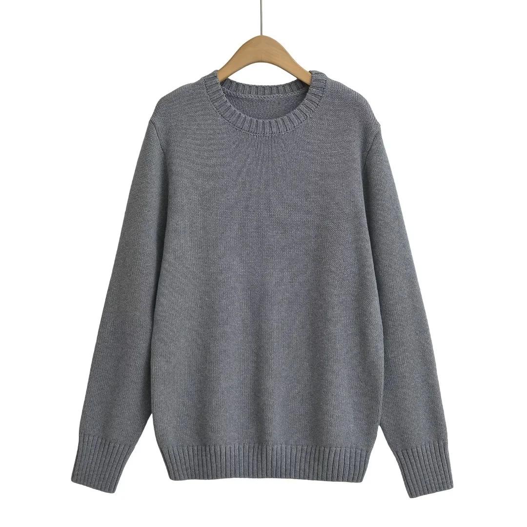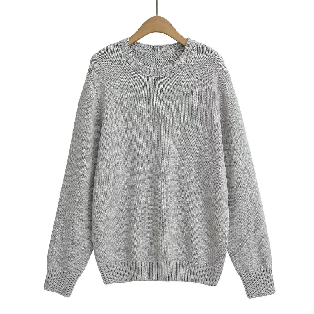 Suéter informal holgado de manga larga con cuello redondo y color liso para mujer, estilo perezoso, para otoño