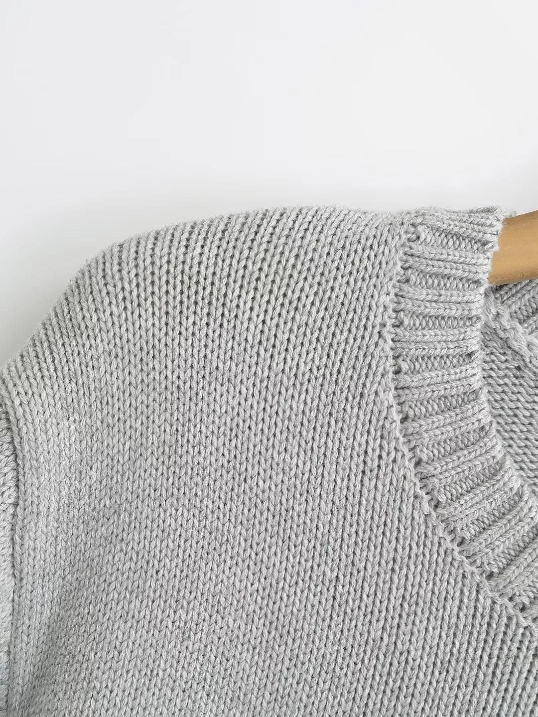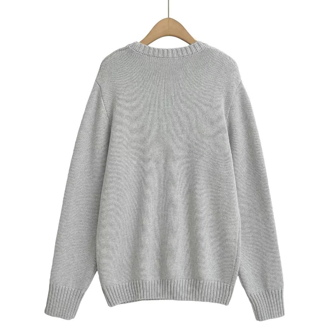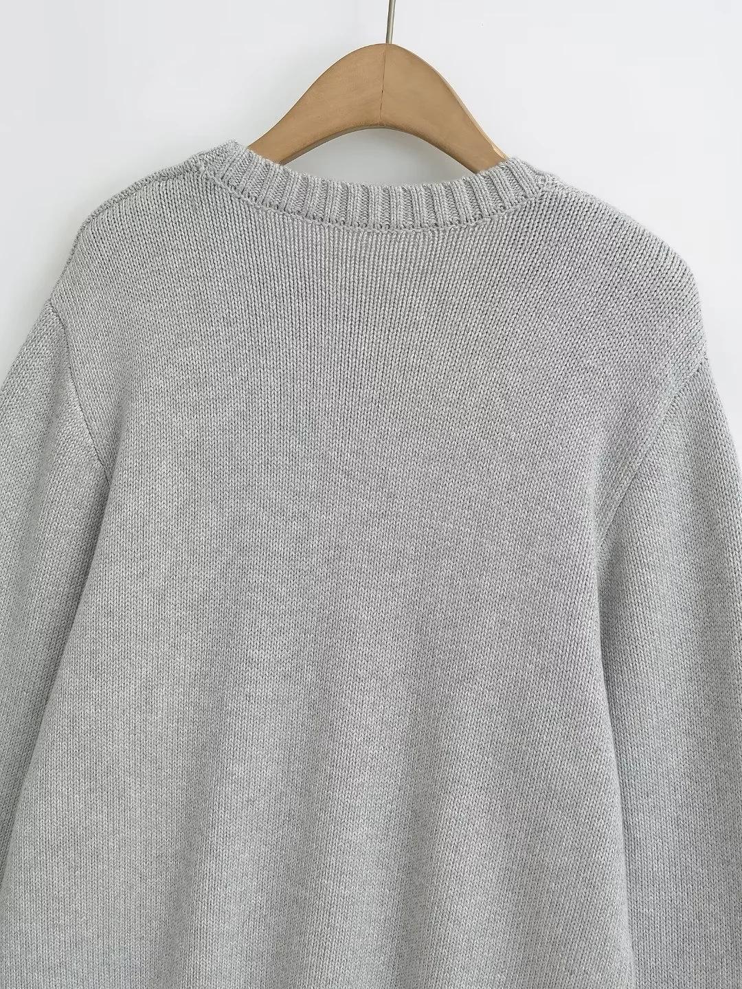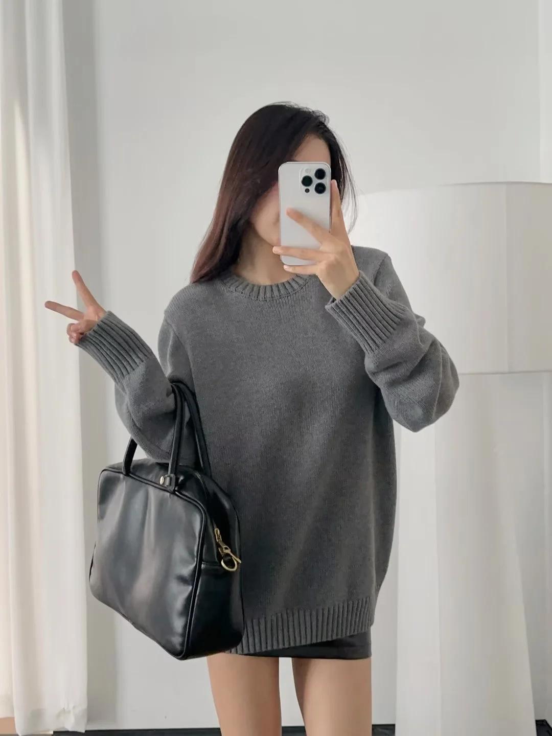 Suéter informal holgado de manga larga con cuello redondo y color liso para mujer, estilo perezoso, para otoño