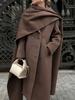 En Stock Cruzado Otoño e Invierno 2024 Abrigo Cuello Bufanda Chaqueta Versátil Capa Larga Vintage Manga Larga Gris Ropa para Mujer