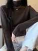Suéter de cuello alto medio con forro polar grueso para mujer, camisa base, otoño e invierno 2024, nuevo suéter de punto interior de estilo extranjero de corte entallado