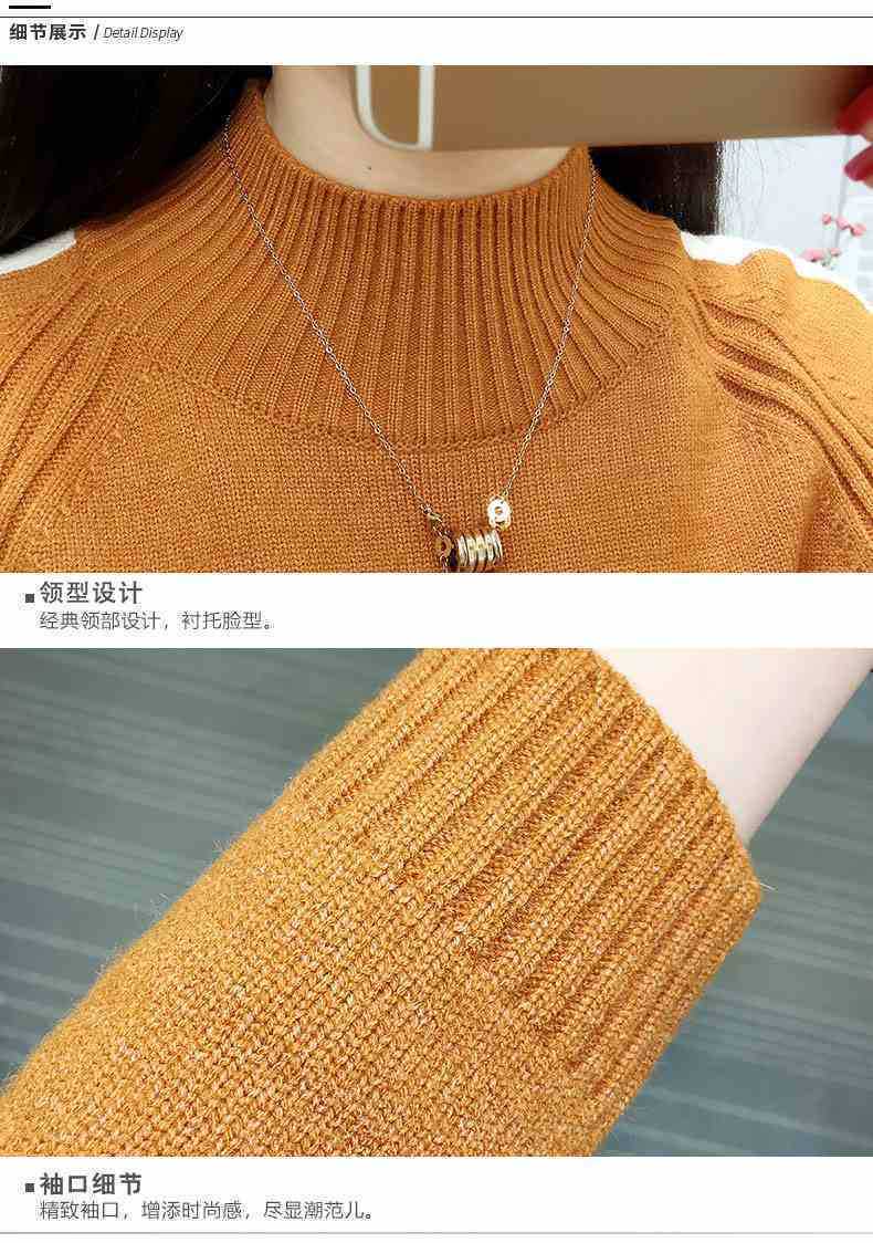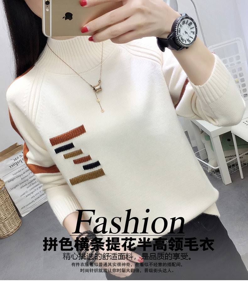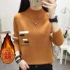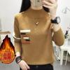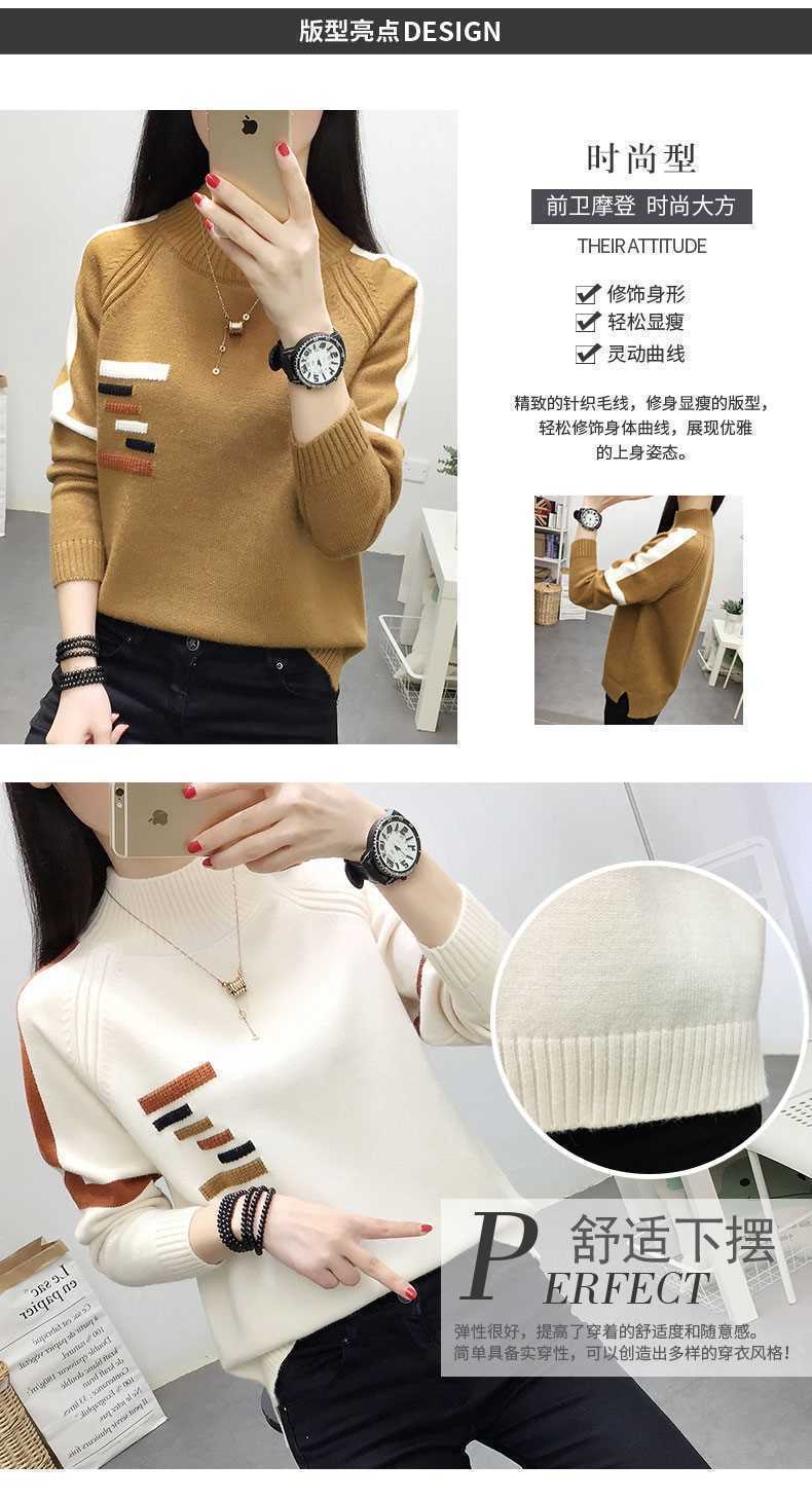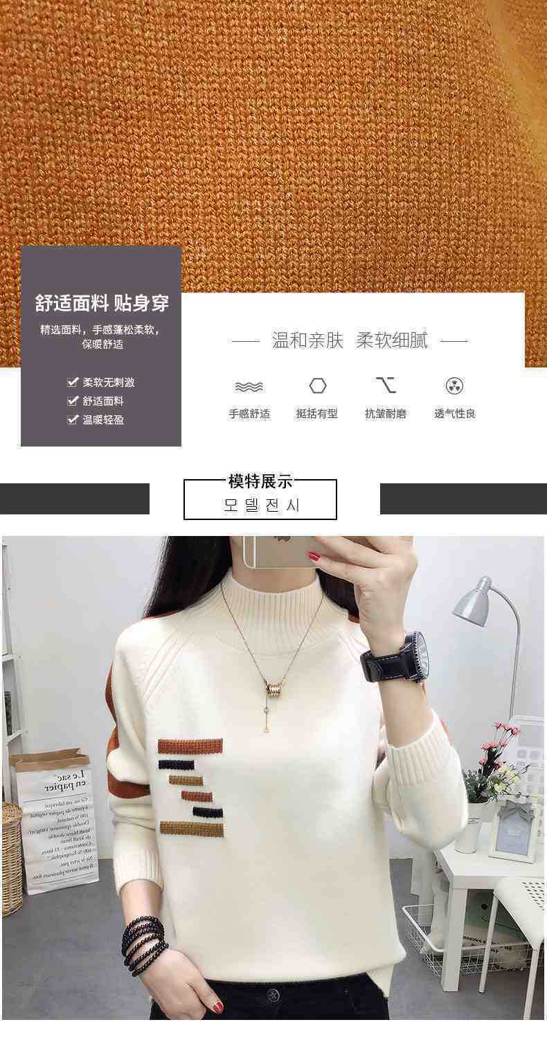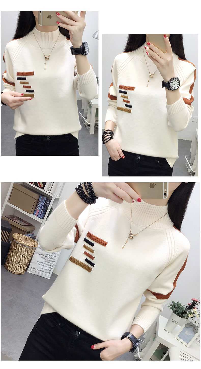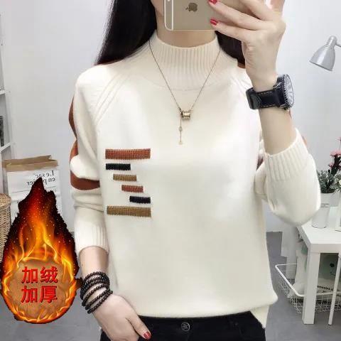 Suéter Blanco de Cuello Medio Alto con Manga Raglán para Mujer, Forrado de Felpa, Grueso, Otoño e Invierno, Nuevo, Holgado, Combinación de Colores, Tejido, Camiseta Base