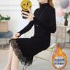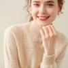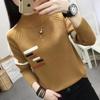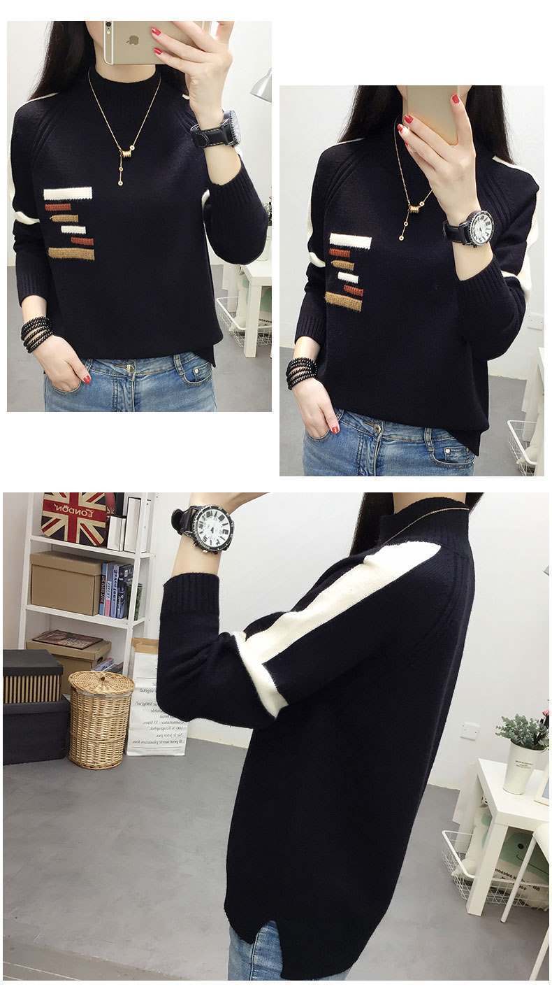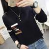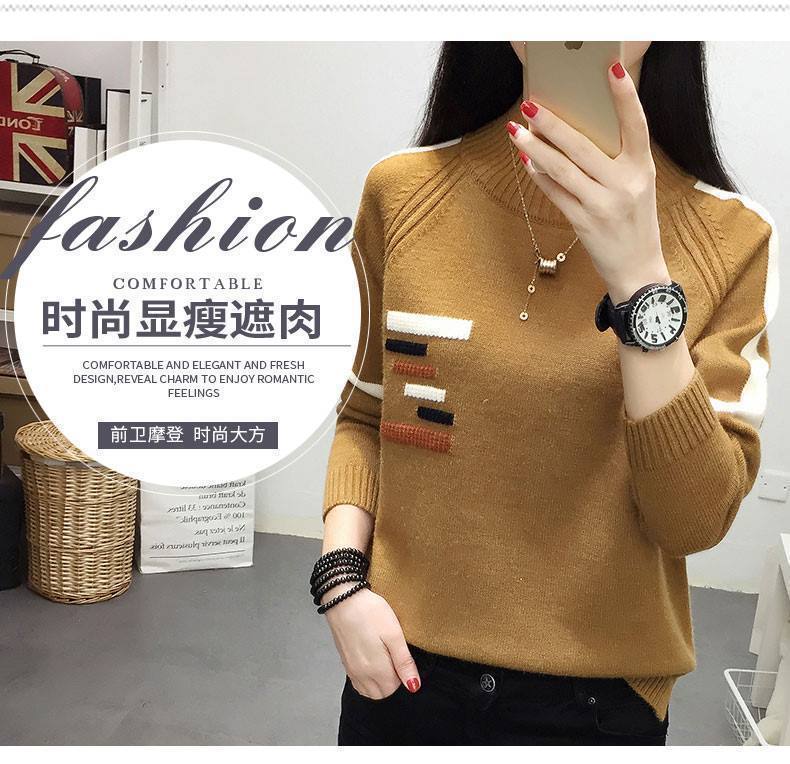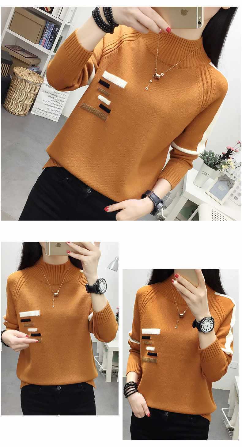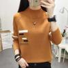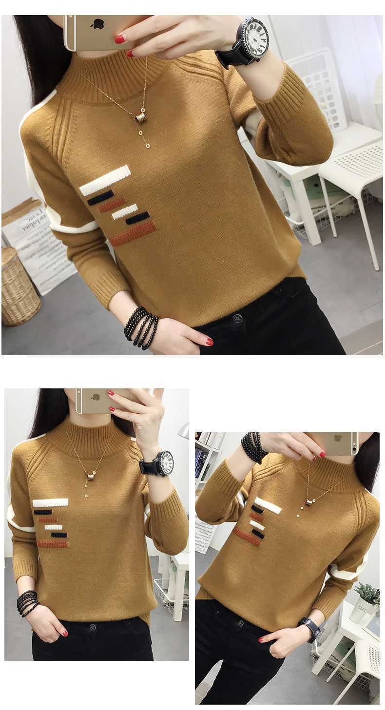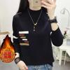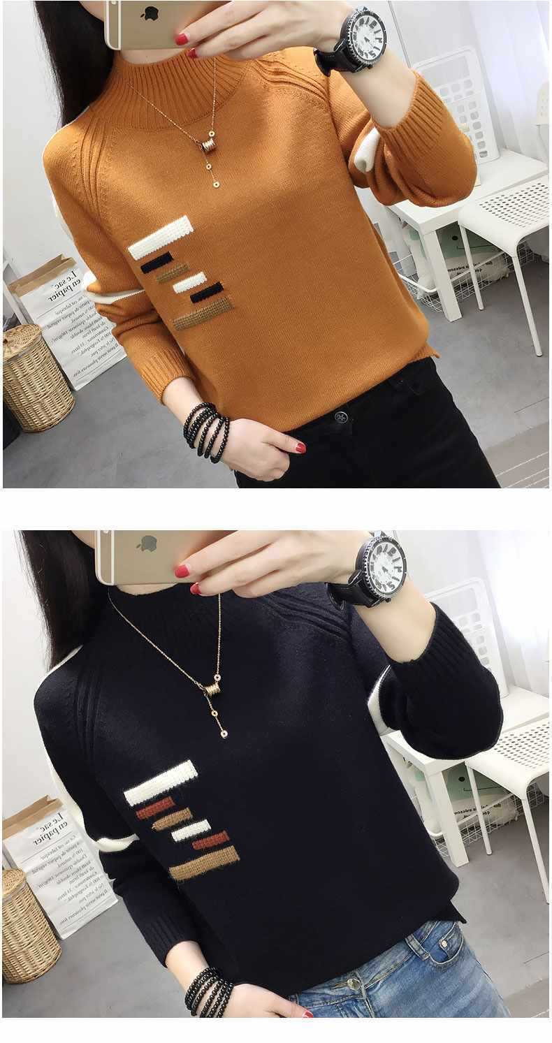 Suéter Blanco de Cuello Medio Alto con Manga Raglán para Mujer, Forrado de Felpa, Grueso, Otoño e Invierno, Nuevo, Holgado, Combinación de Colores, Tejido, Camiseta Base