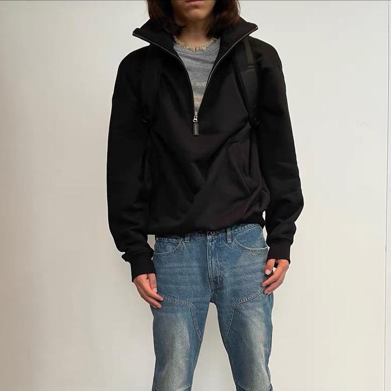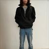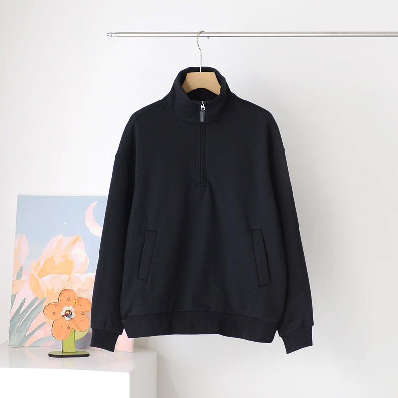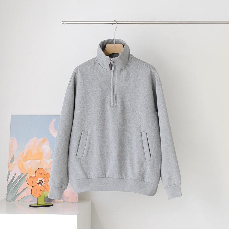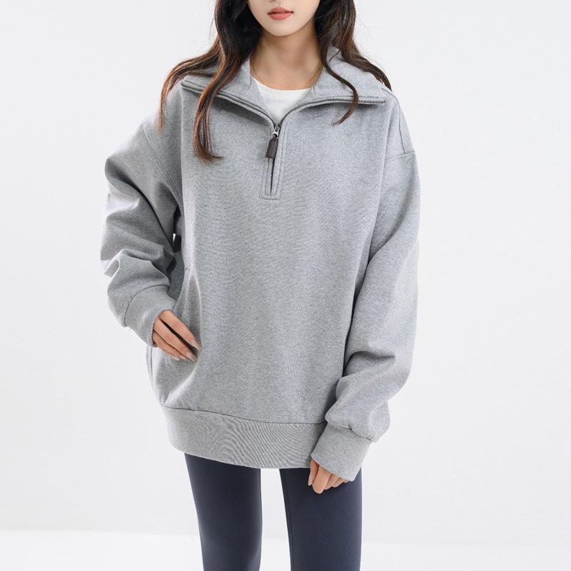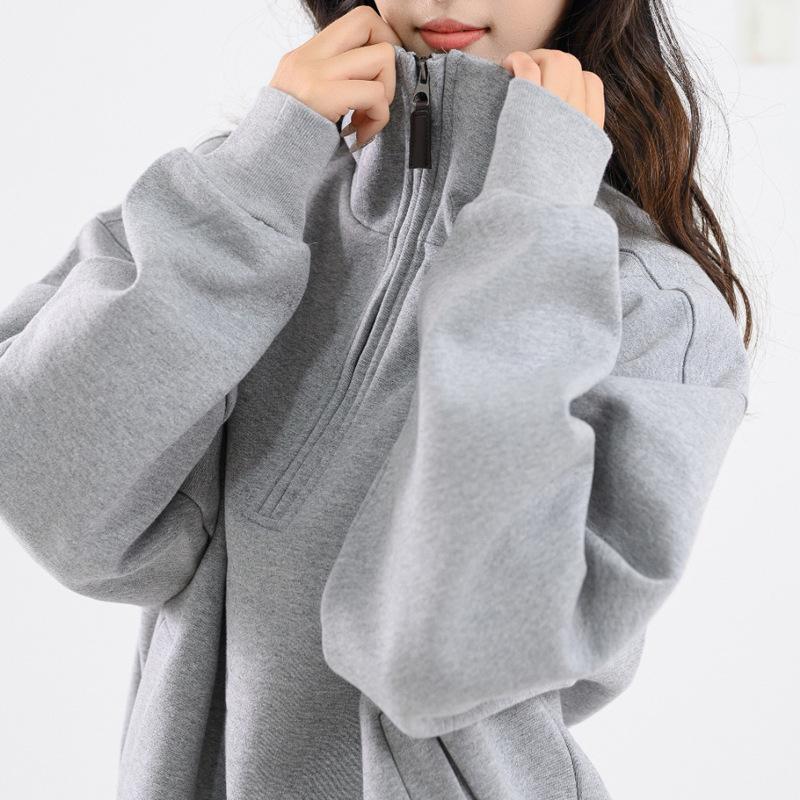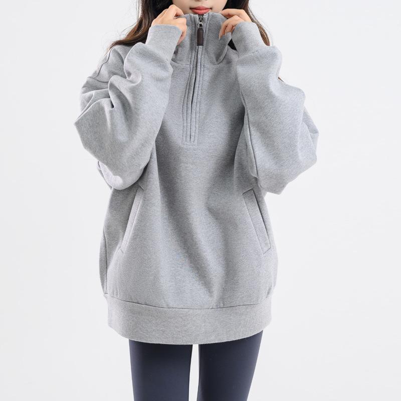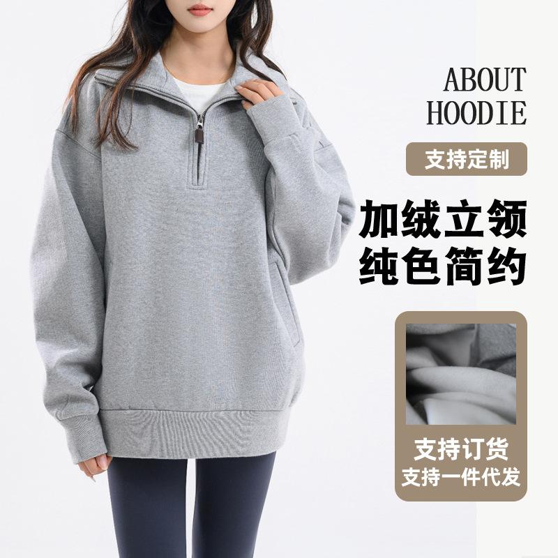 Sudadera con Capucha de Cuello Alto 2025 Otoño e Invierno Nuevo Estilo Forrada de Felpa Engrosada Suelta Talla Grande Casual Color Puro Chaqueta para Mujer