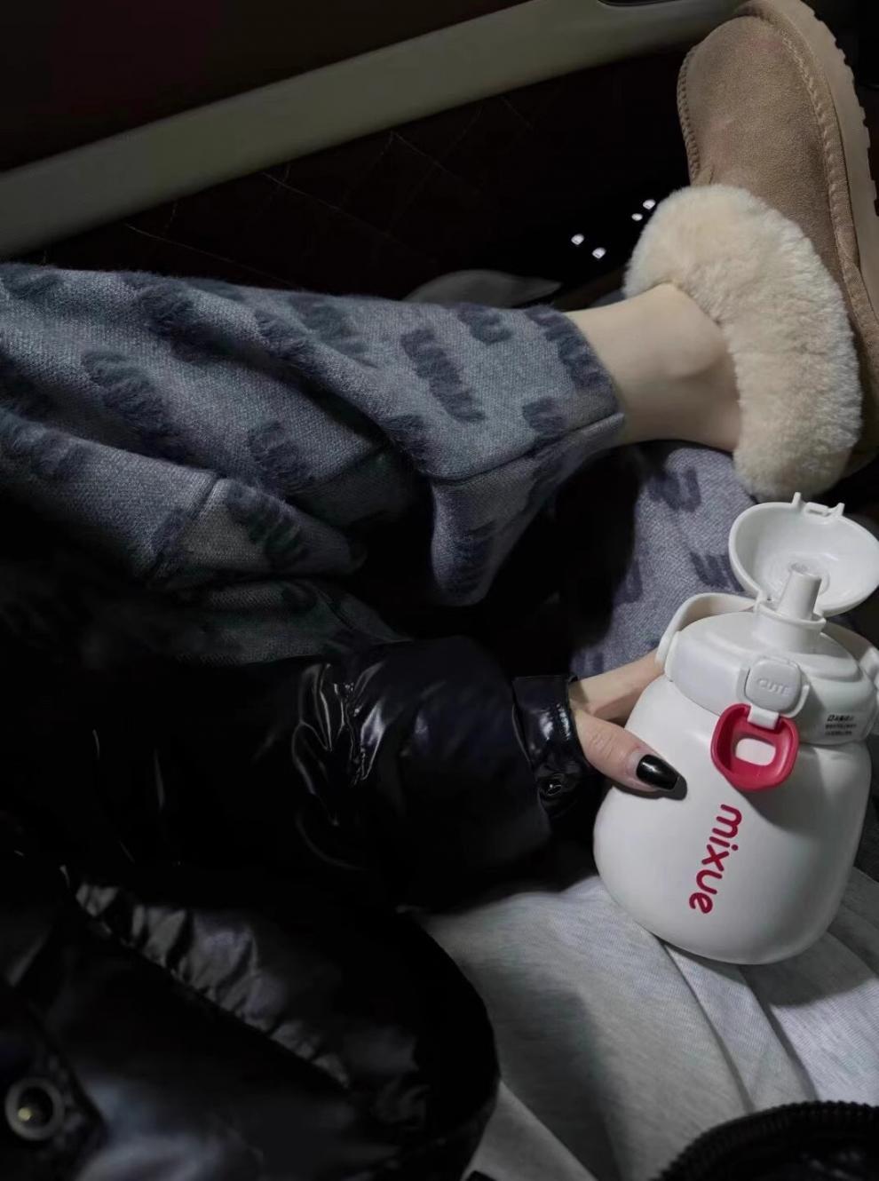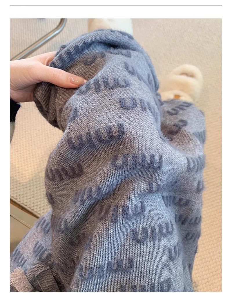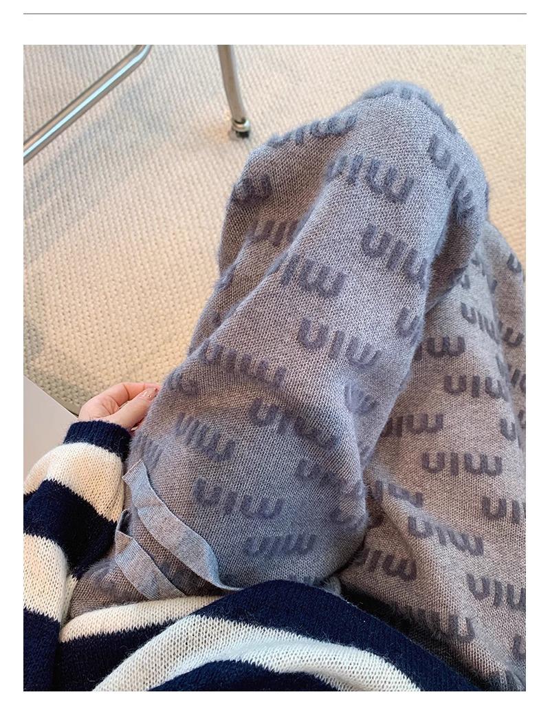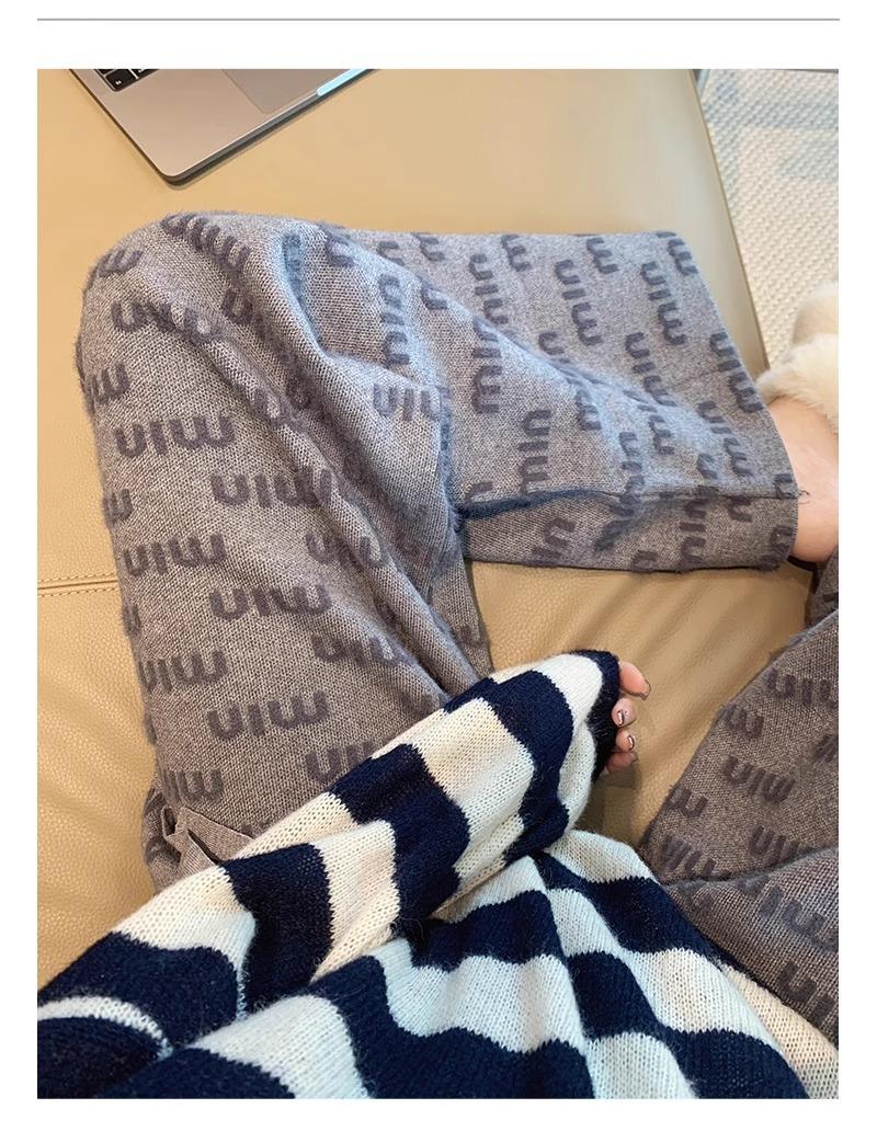 Pantalones de Punto Gruesos Jacquard de Letras a la Moda de Pierna Ancha para Mujer Invierno 2024 Nueva Llegada Holgados Suaves Cerosos Largos de Moda