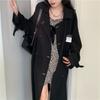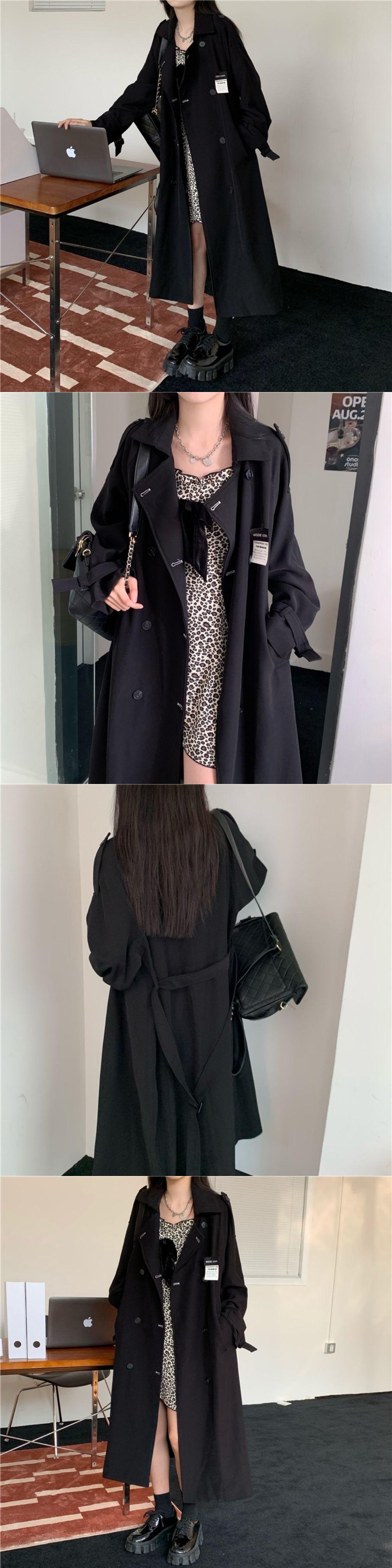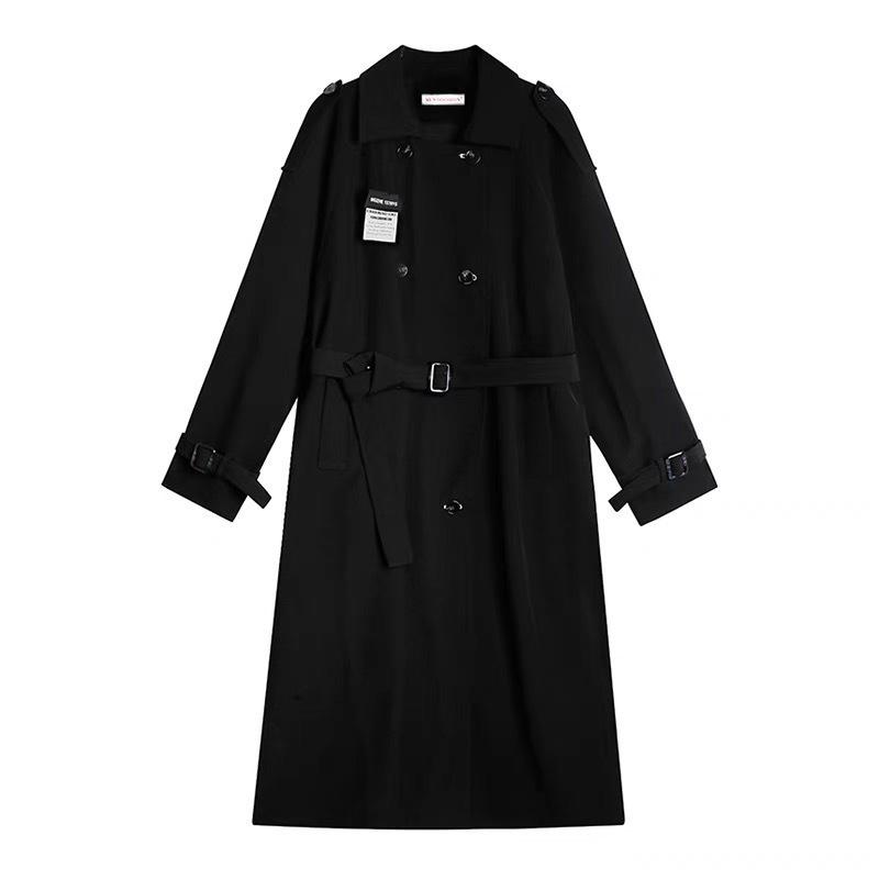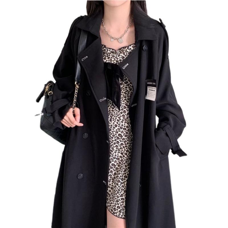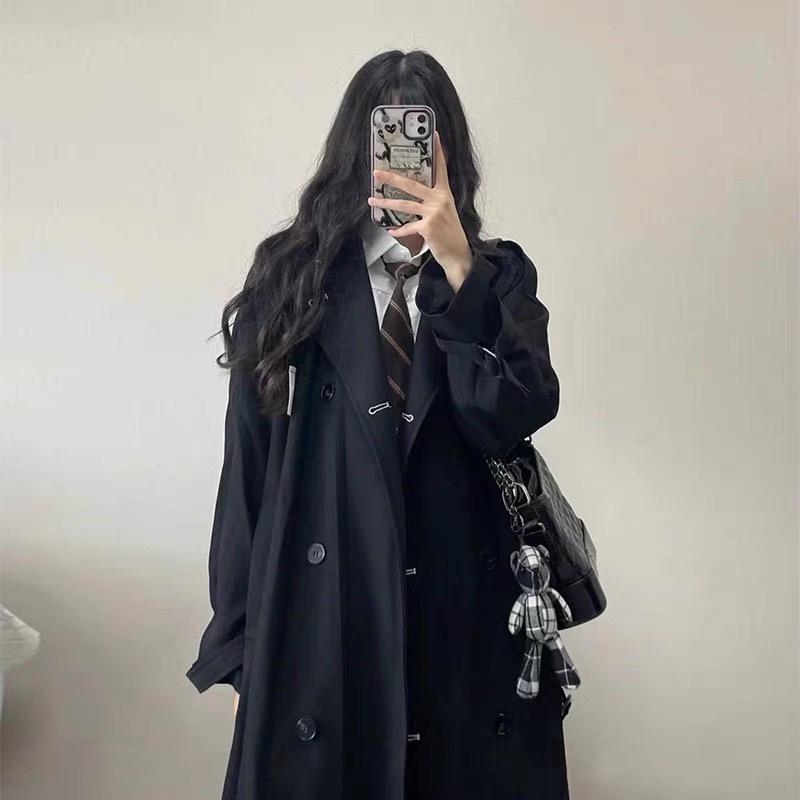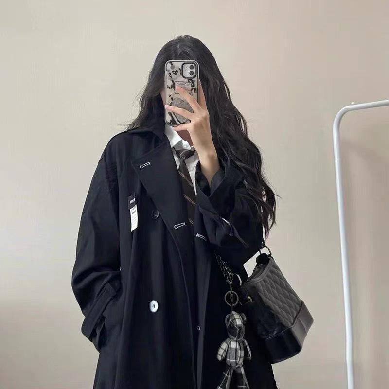 2024 Nuevo abrigo negro de talla grande británico y coreano para mujer, abrigo de primavera y otoño de longitud media, pequeño, de alta gama
