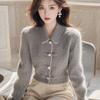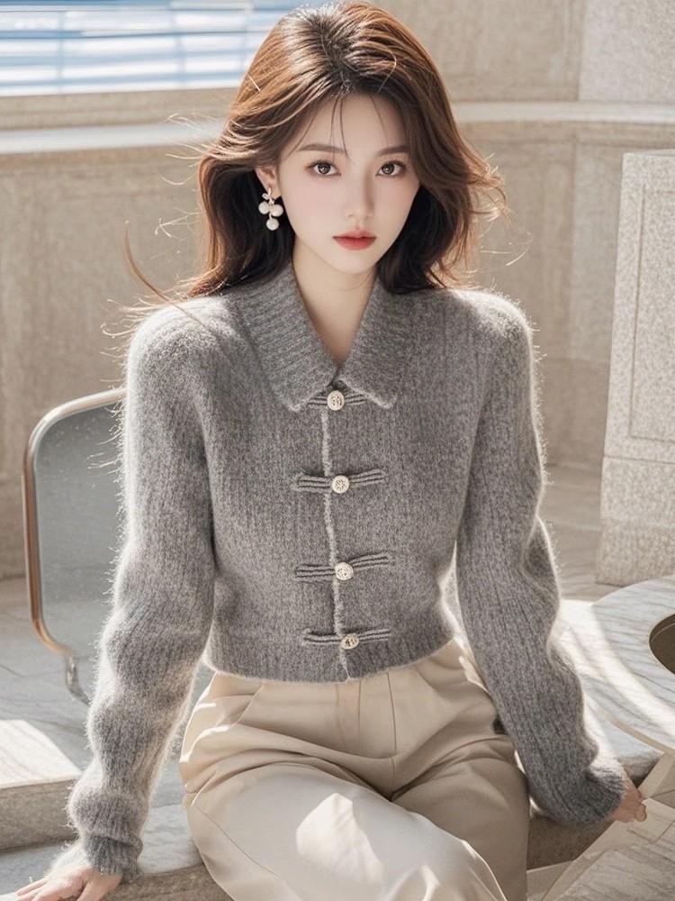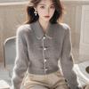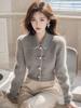 Suéter de punto holgado de invierno 2024 para mujer, elegante, nuevo, estilo chino, estilo nacional, gris, con base interior