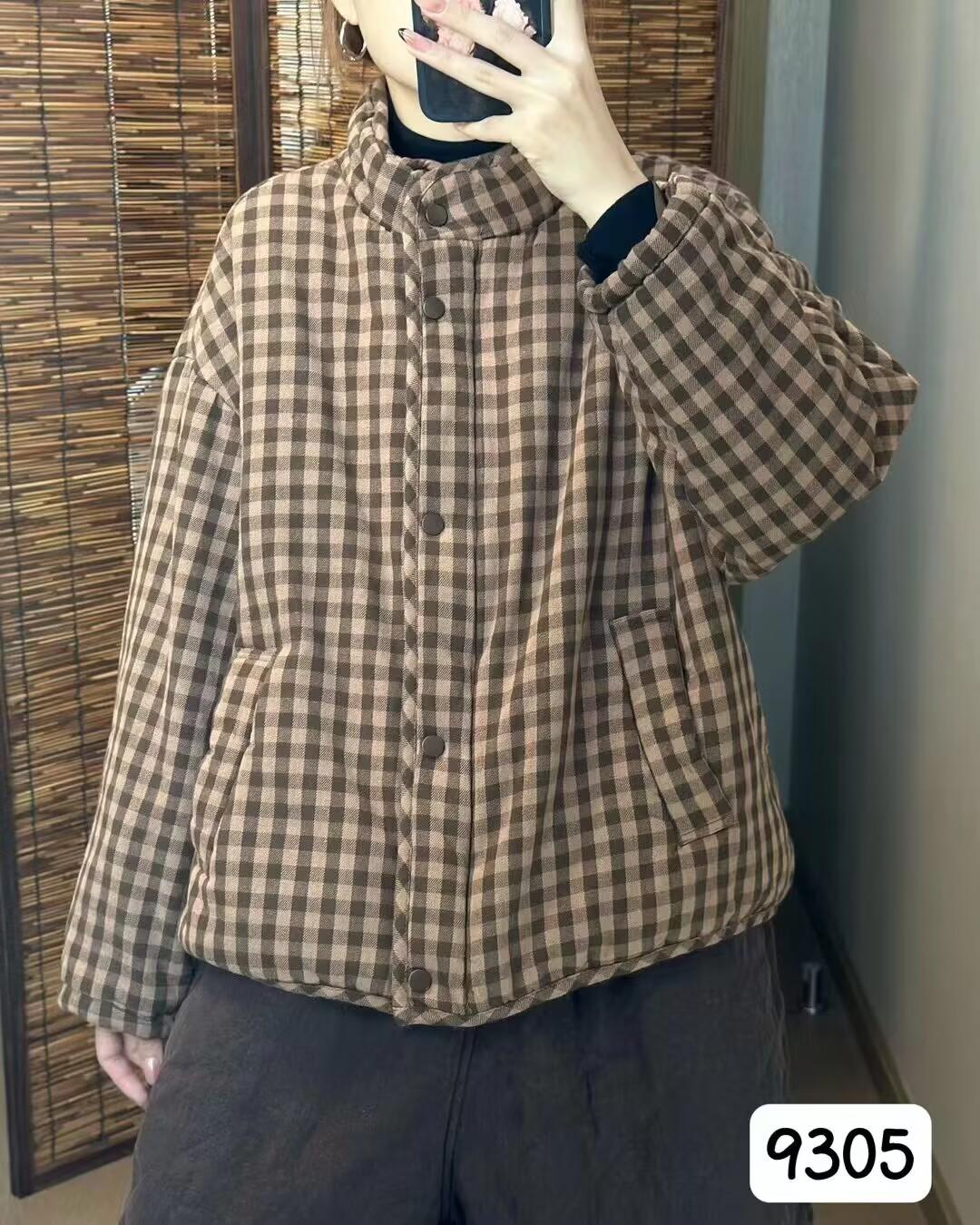 Chaqueta acolchada de algodón a cuadros para mujer, nueva moda europea de invierno, holgada, adelgazante, combinable, informal, cálida y gruesa, 9305