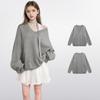 Suéter Primavera y Otoño nuevo jersey de mujer suelto irregular abertura delantera corto atrás largo bajo cuello redondo suéter corto mujer