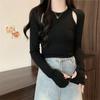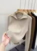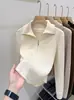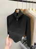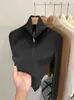 Camiseta de manga larga para mujer, otoño, nuevo diseño de estilo coreano, cuello medio alto, cremallera, top sexy para chica, camisa básica ajustada
