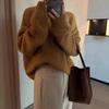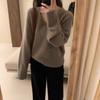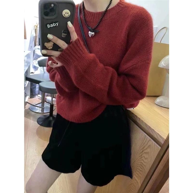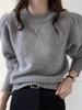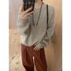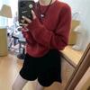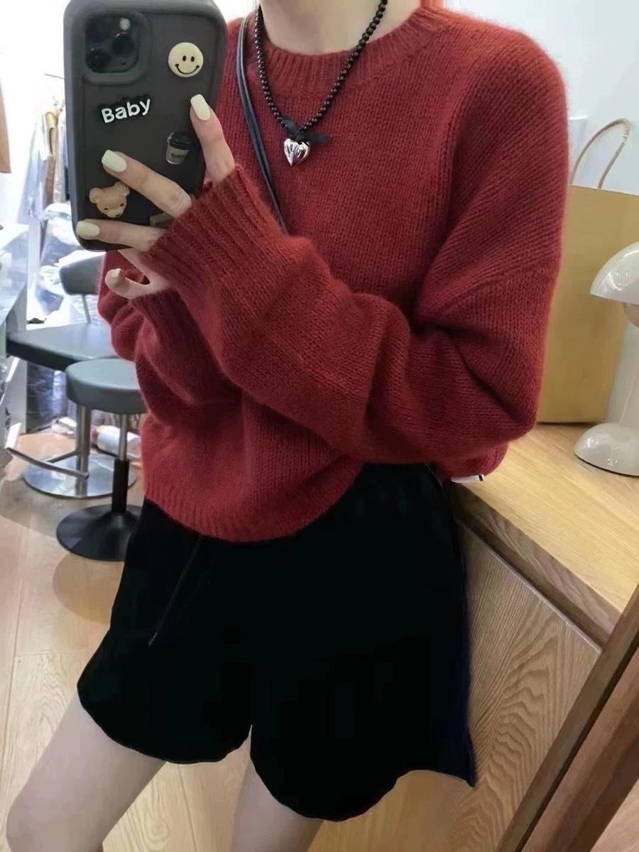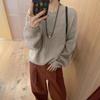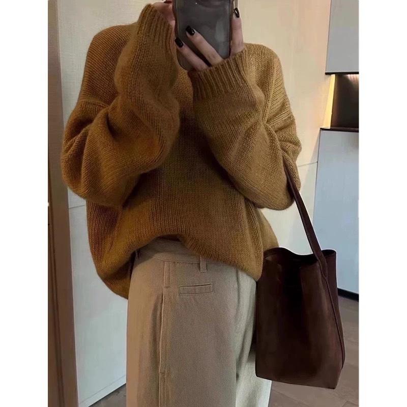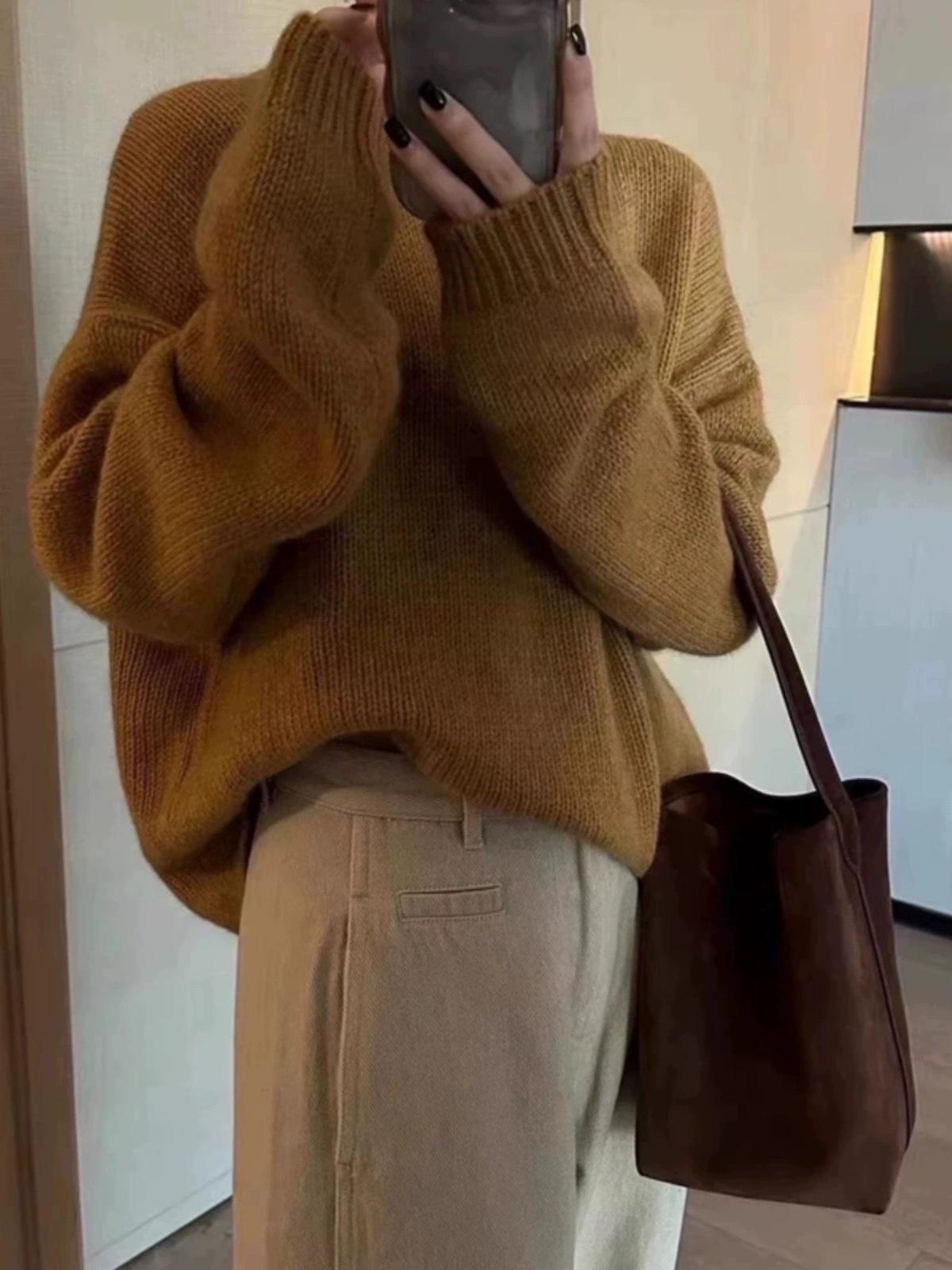 Suéter de cuello redondo para mujer, tejido de punto de lana pura, suelto, de color liso, manga larga, elegante, para ir al trabajo, combina con todo.