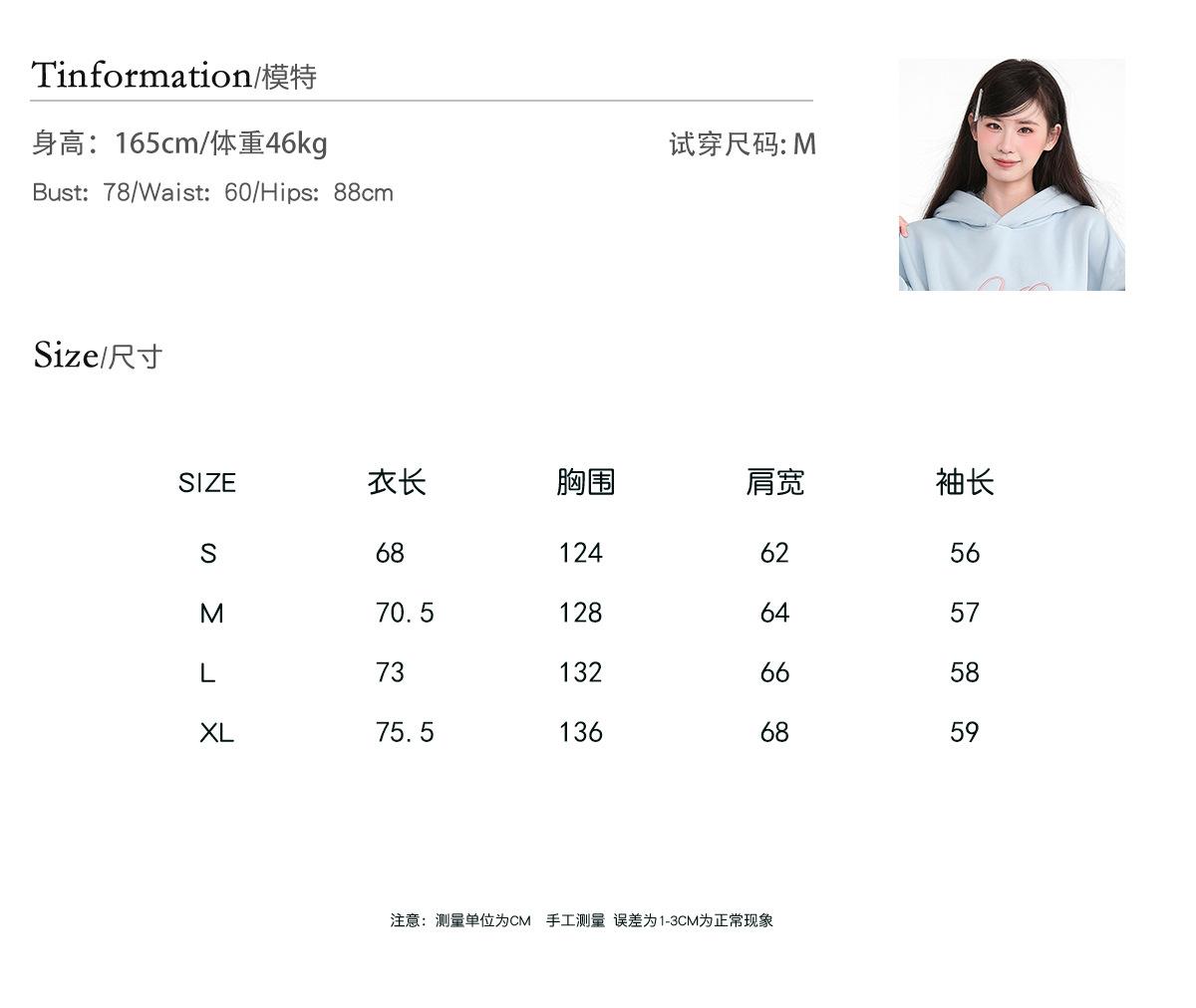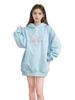Abrigo Sudadera con Capucha Bordada Azul para Mujer Otoño e Invierno Estilo Holgado Perezoso Estilo Americano Marca de Moda Manga Larga Media Larga Estilo Primavera y Otoño
