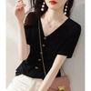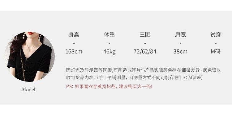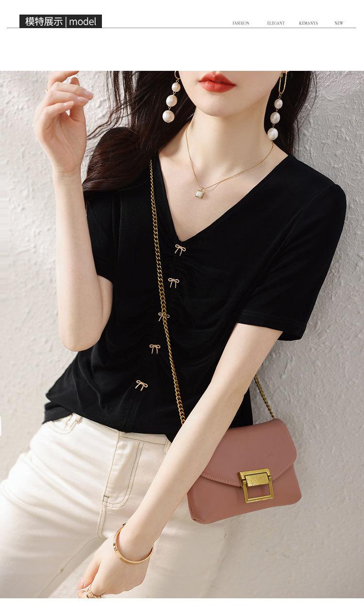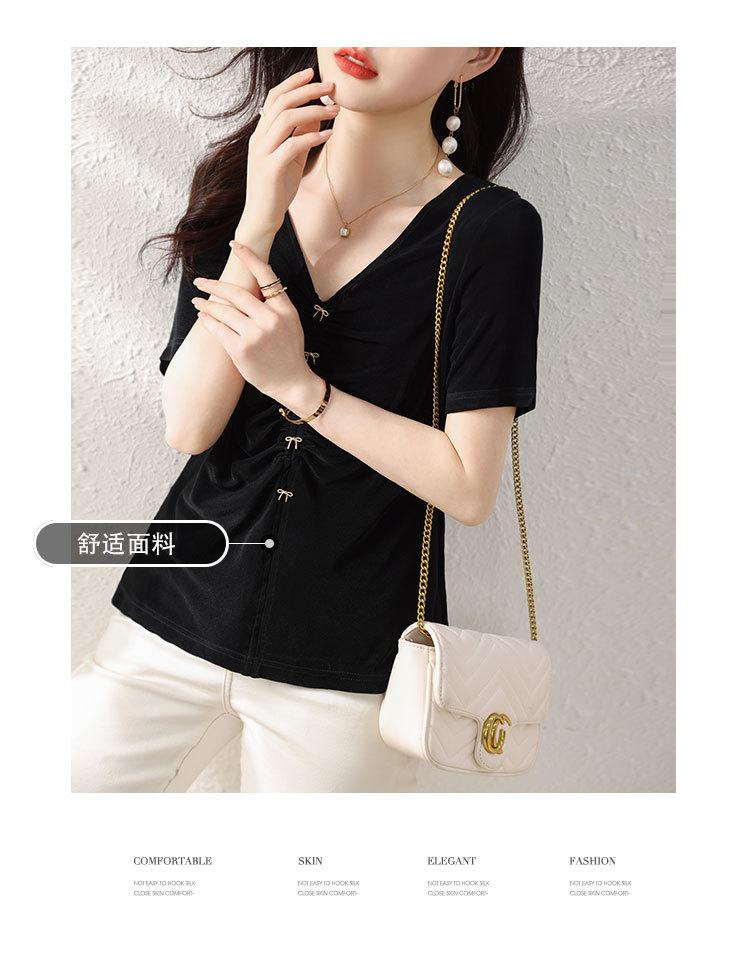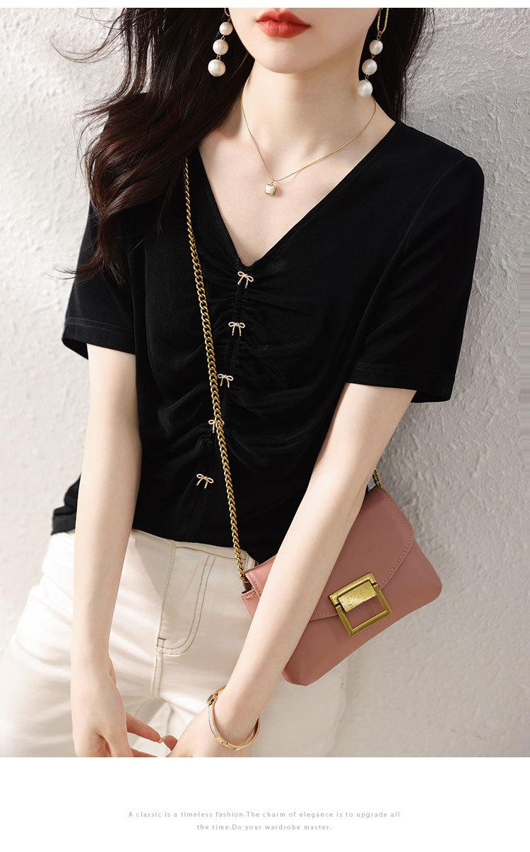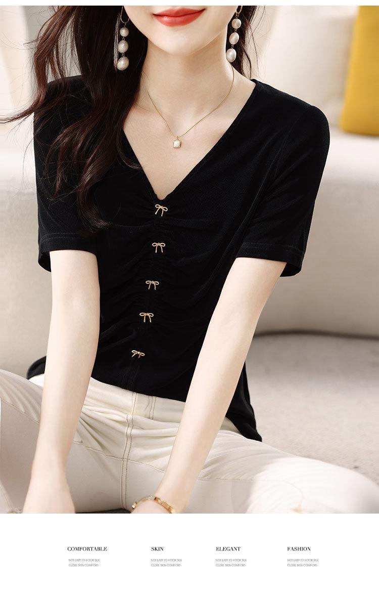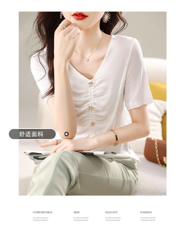 2025 Nuevo Verano Estilo Coreano Ropa de Trabajo Top, Exquisita Camiseta de Mujer de Manga Corta con Cuello en V de Aspecto Adelgazante Plisado