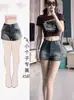 Pantalones cortos vaqueros estilo americano vintage para mujer, de verano, de cintura alta, elásticos, adelgazantes, de corte A, con pierna ancha