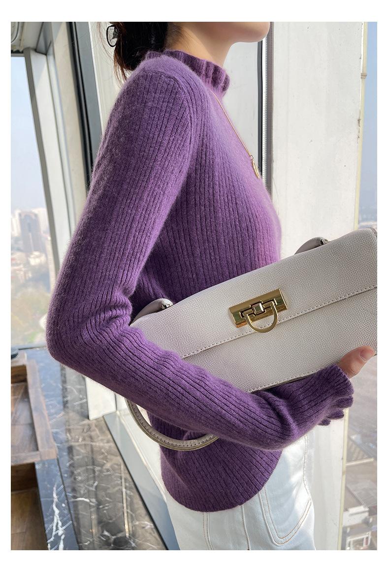 Suéter de cachemira para mujer, suéter básico de otoño e invierno, top ajustado, suéter de punto de lana adelgazante.