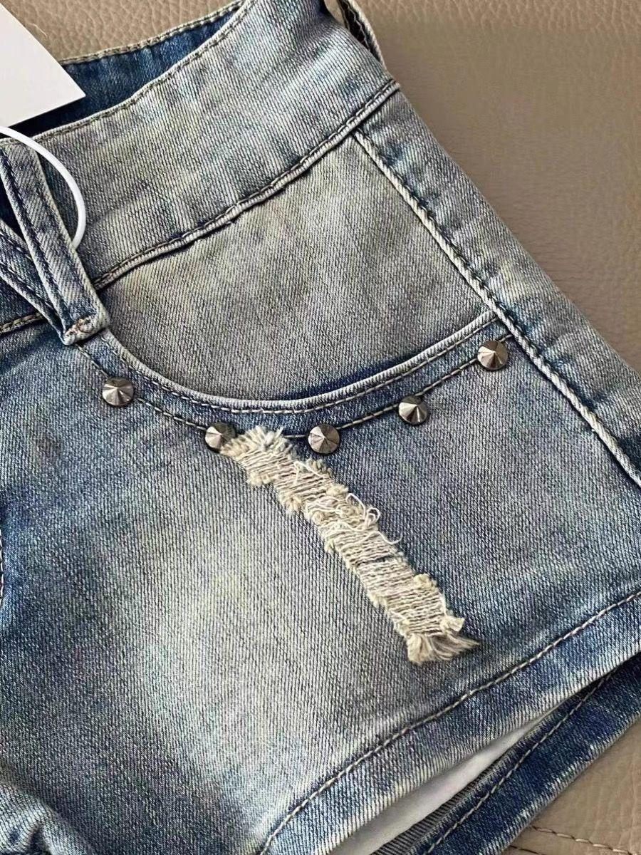 Pantalones cortos vaqueros vintage de color claro para mujer, estilo Spice Girl, de cintura baja, lavados, de verano