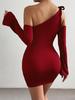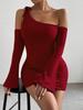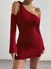 2026 Otoño/Invierno Nuevo Ropa de Mujer Transfronteriza de Amazon Sexy Escote Asimétrico Vestido con Tirante al Hombro Rojo Vestido Corto con Hombros Descubiertos