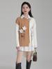 Cárdigan Suéter Otoño 2025 Diseño Nicho Suéter Bloque de Color Flor Suéter Cremallera Color Contraste Top