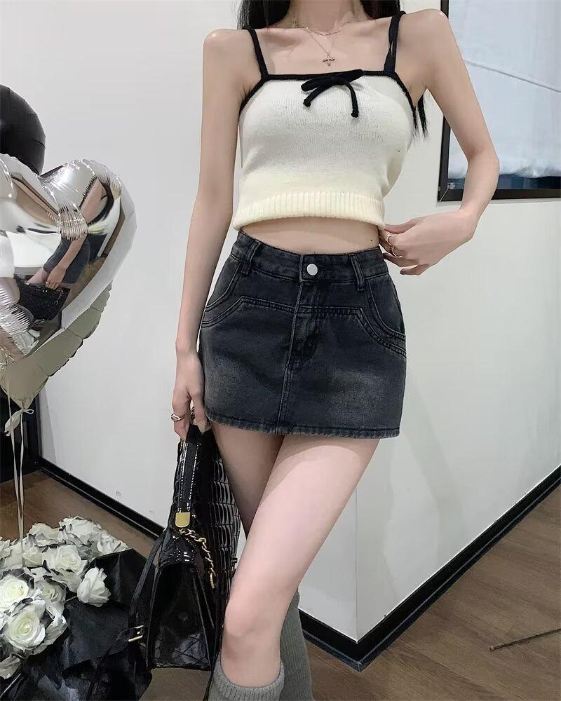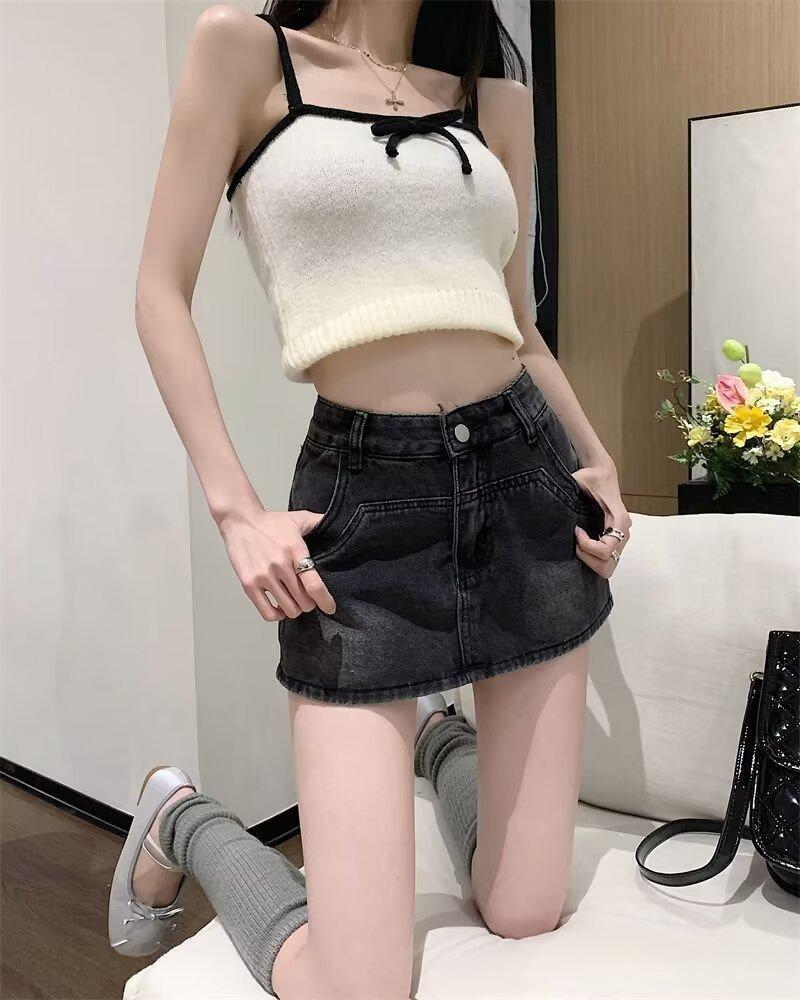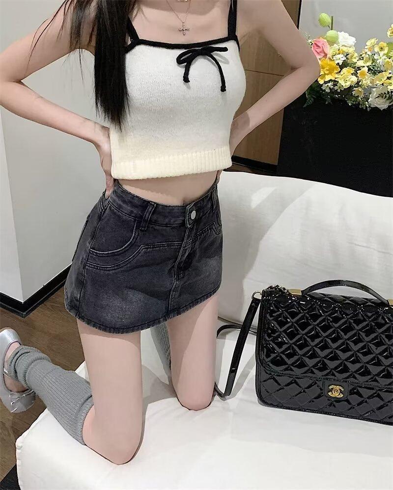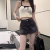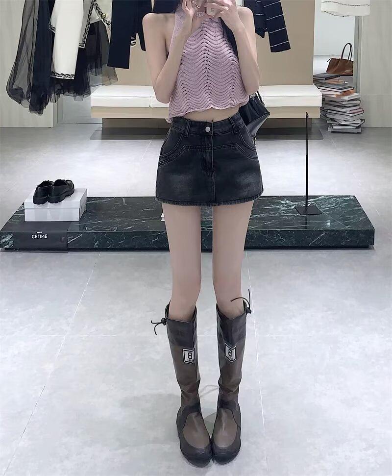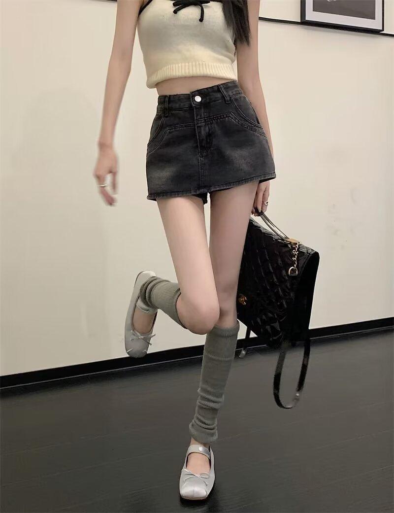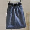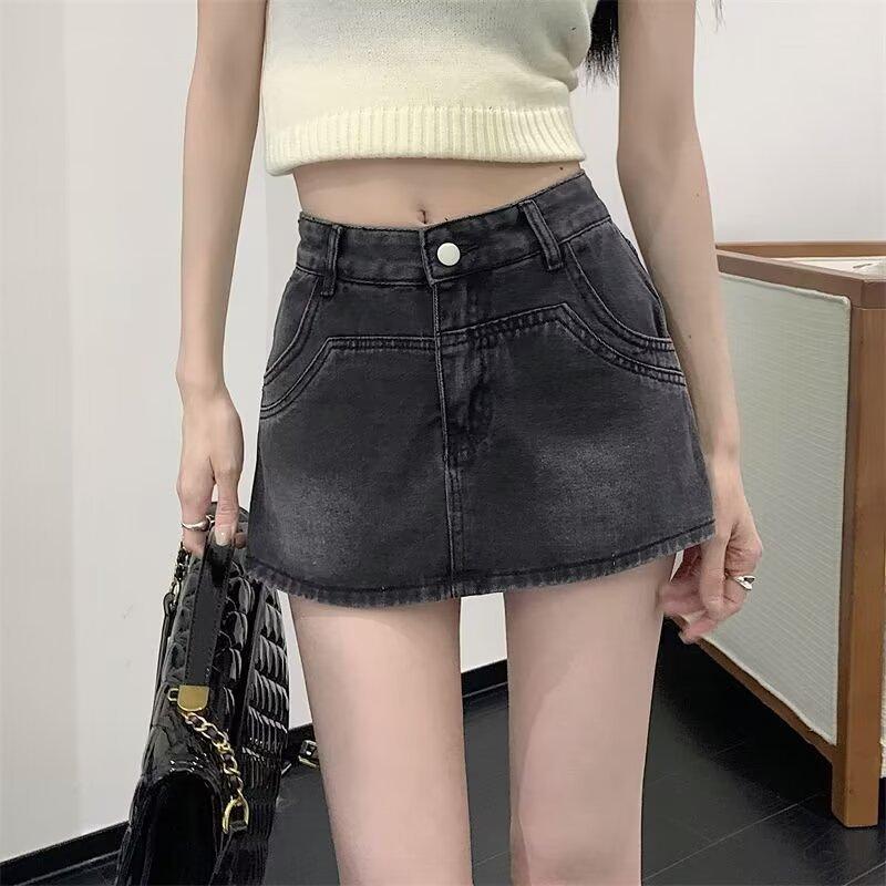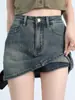 Falda de mezclilla retro de cintura alta American Spice Girl para mujer Primavera y Otoño 2024 talla grande Hermana gorda Cubre caderas Falda corta Pantalones