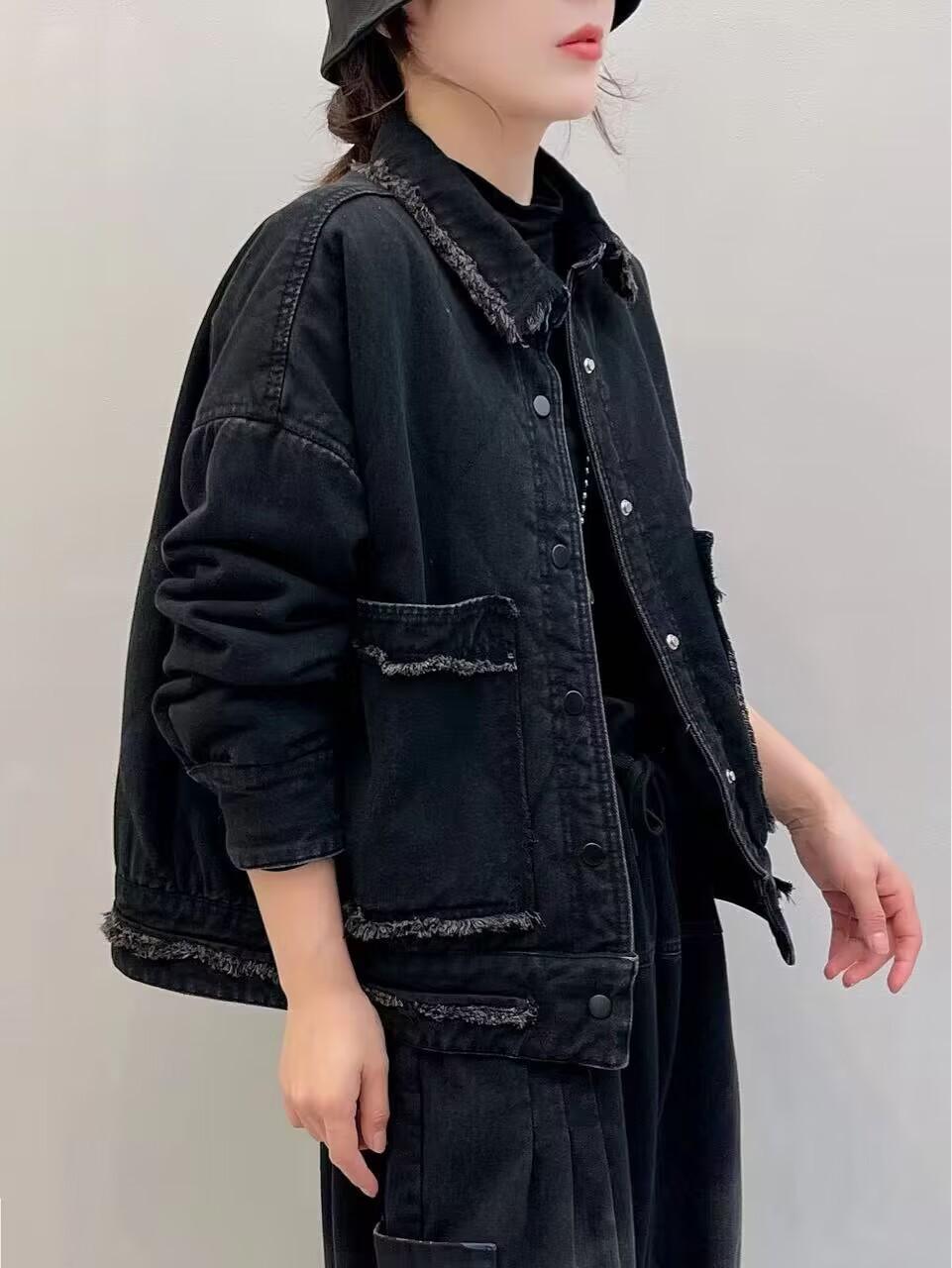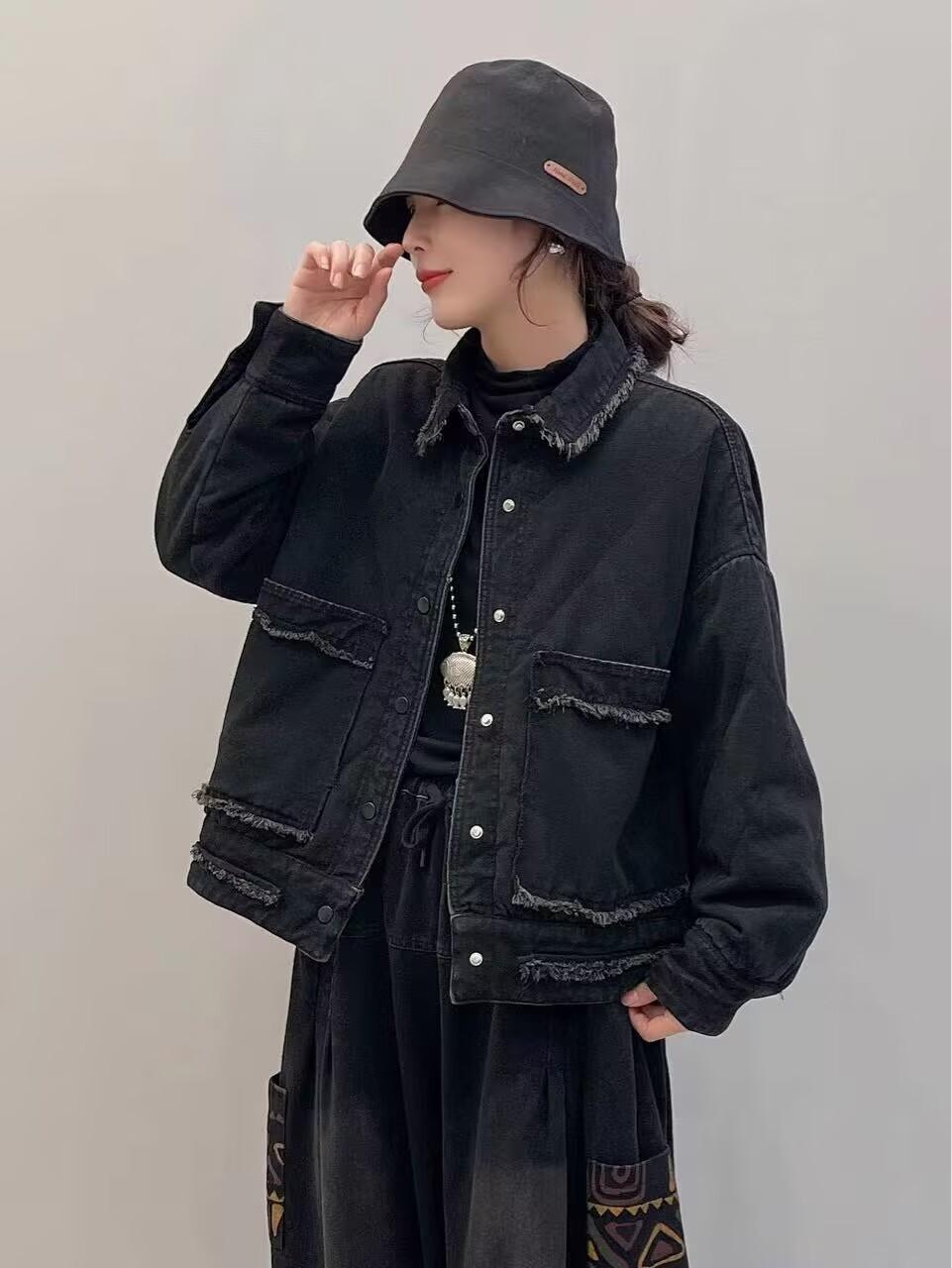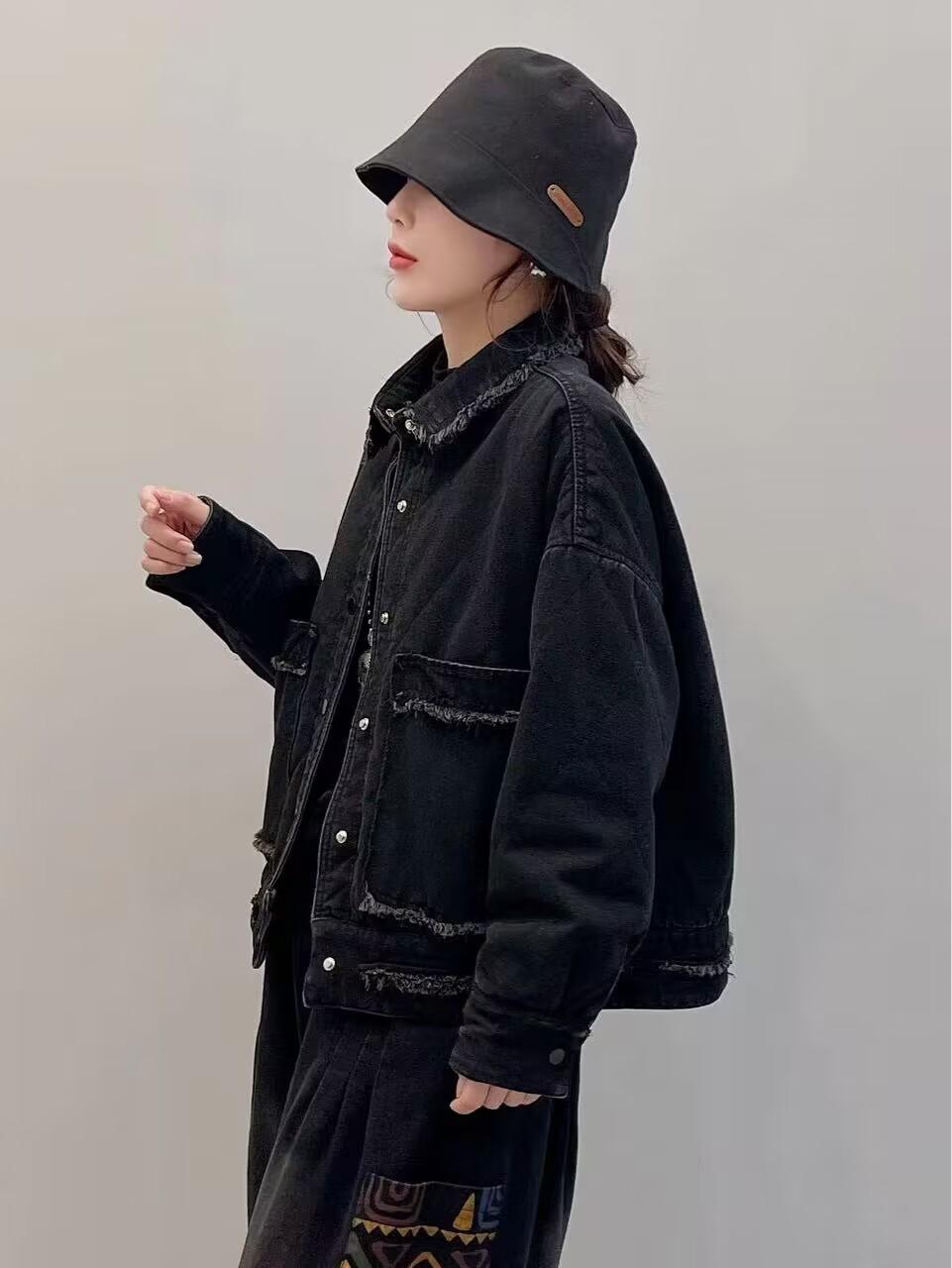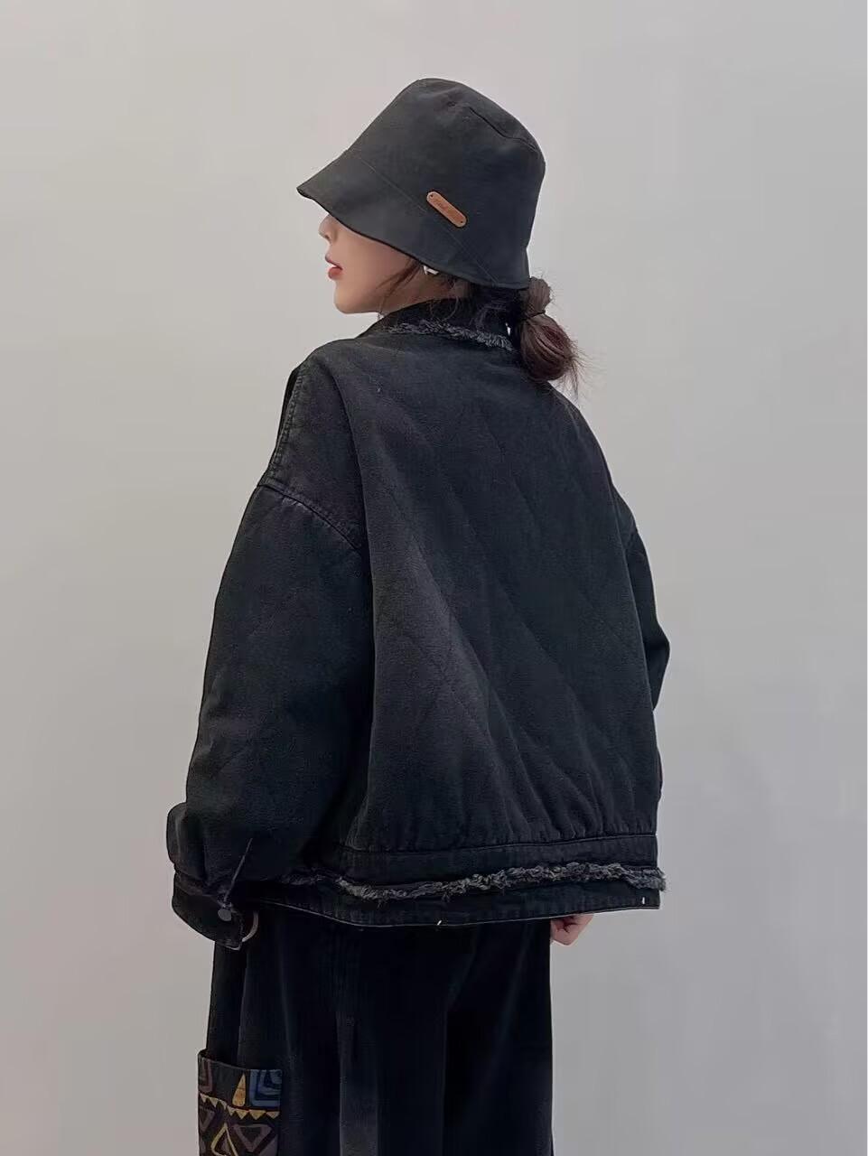 Abrigo de Algodón Acolchado de Mezclilla para Mujer Invierno Nuevo Artístico Retro Resistente al Viento Cálido Suelto Adelgazante Bolsillo Grande Abrigo Acolchado de Algodón Rouge