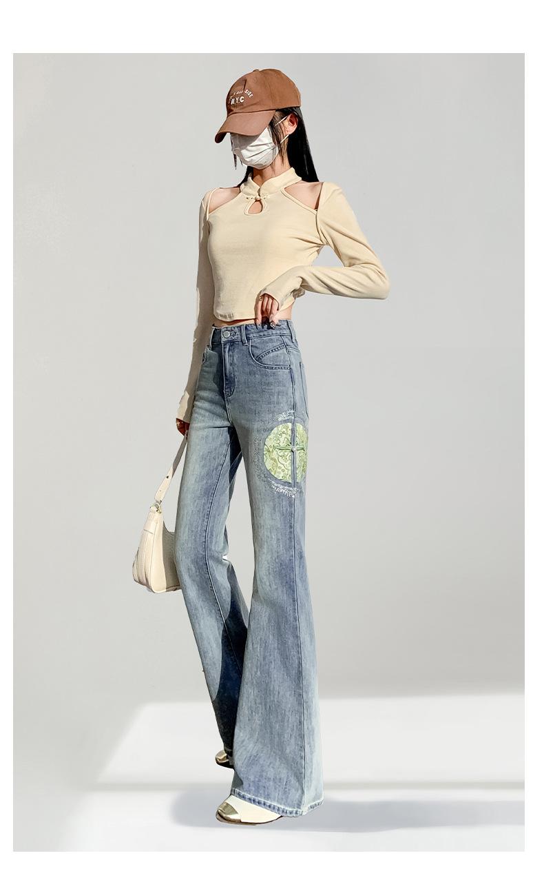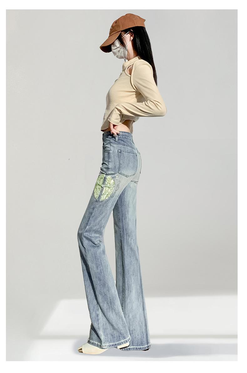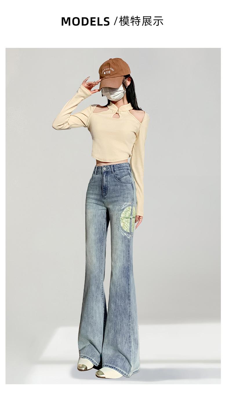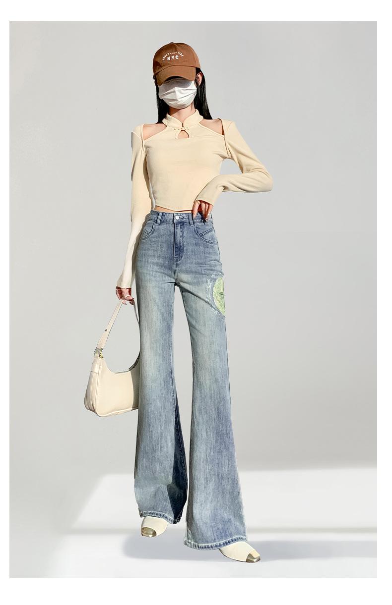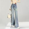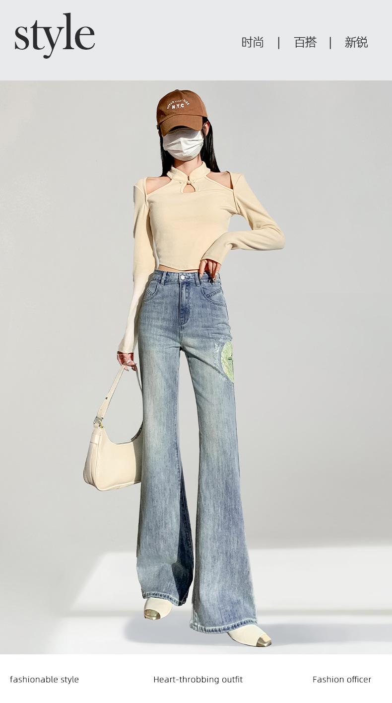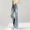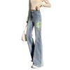 Jeans Acampanados Azul Claro para Mujer Verano 2025 Nuevo Tiro Alto Corte Slim Bordado Estilo Nacional Pantalones Rectos Largos