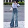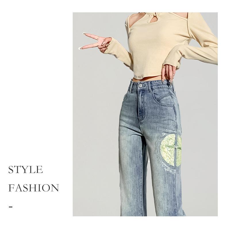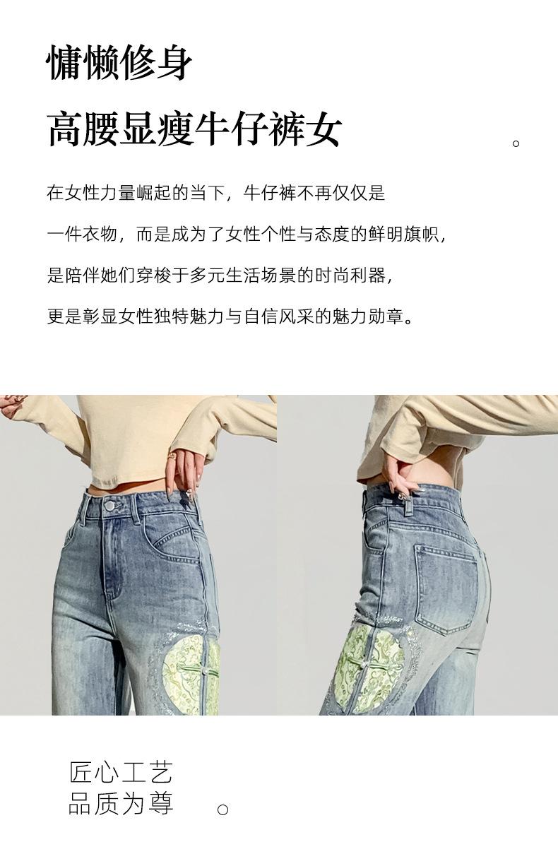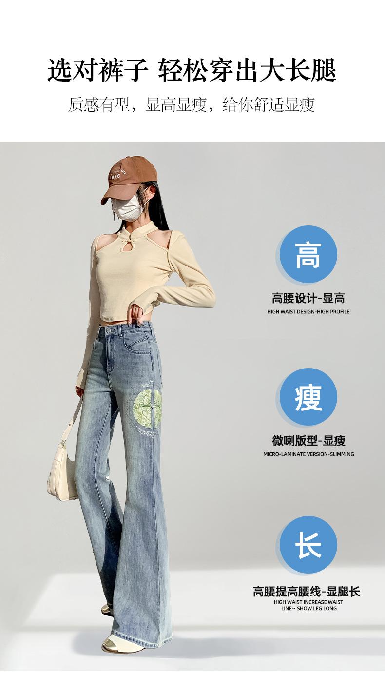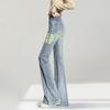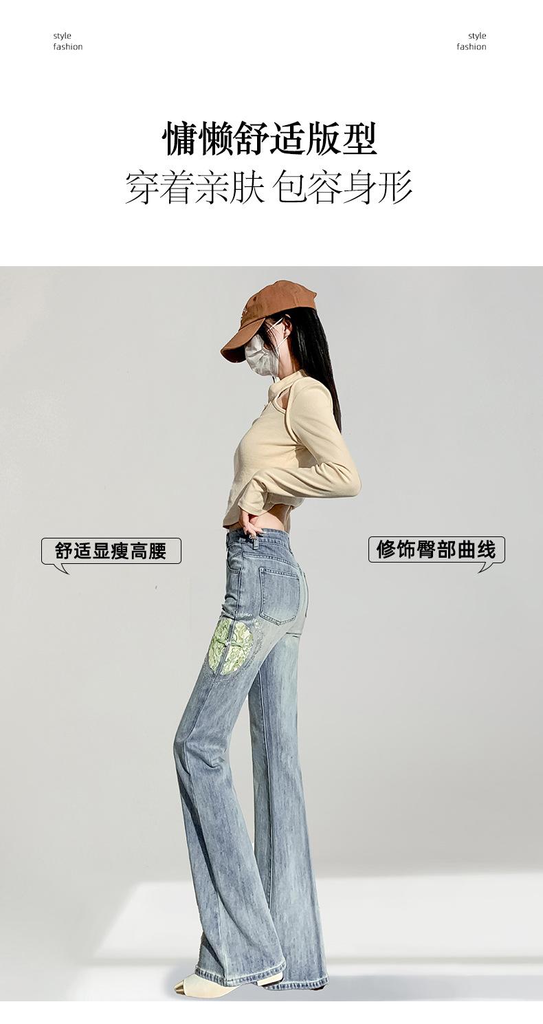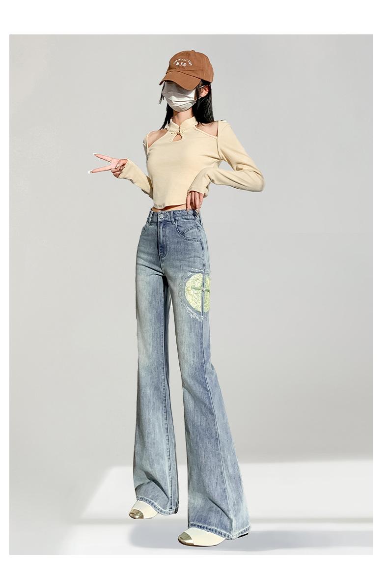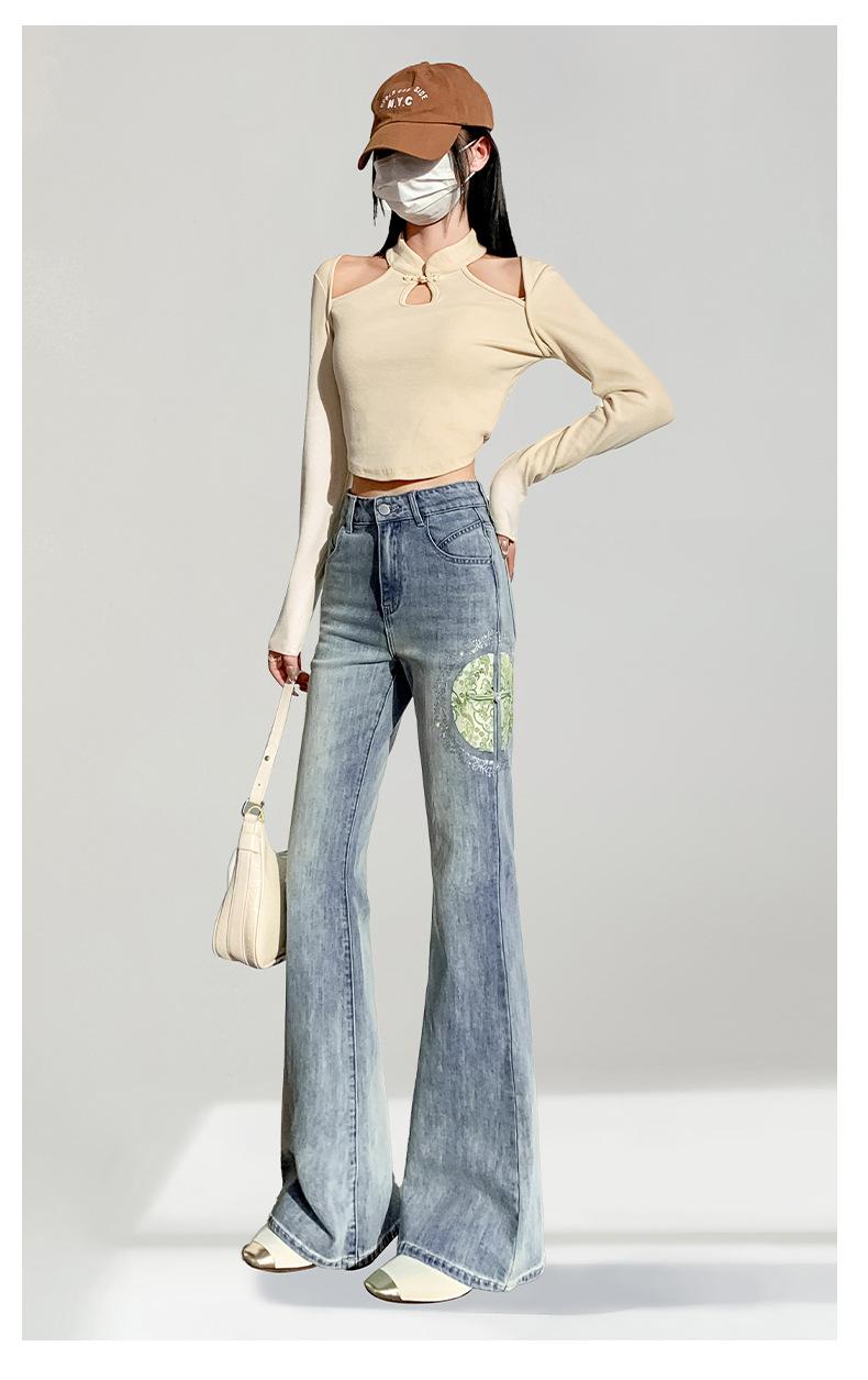 Jeans Acampanados Azul Claro para Mujer Verano 2025 Nuevo Tiro Alto Corte Slim Bordado Estilo Nacional Pantalones Rectos Largos