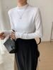 Camiseta de manga larga con cuello medio alto, forrada con vellón y lijado grueso, de fabricación europea, para mujer, estilo de alta gama, para otoño e invierno.