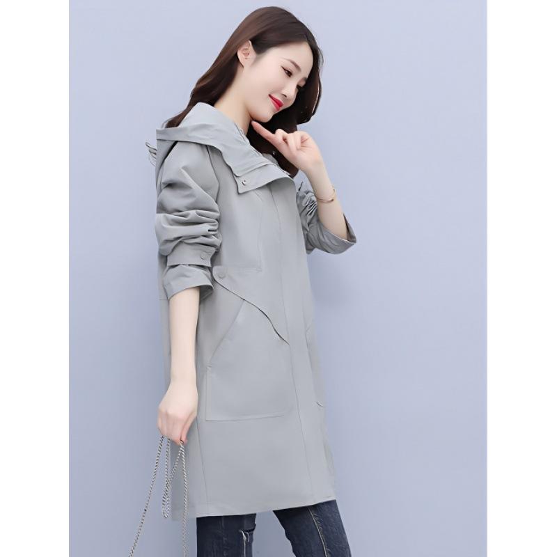 Abrigo de talla grande estilo occidental para mujer, largo medio, primavera y otoño 2024, nuevo abrigo informal con capucha que combina con todo para mujer