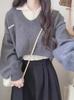 Suéter Corto Estilo Universitario con Cuello POLO para Mujer Primavera Otoño Invierno Diseño Sensorial de Cintura Alta Top Tejido de Dos Piezas 2024 Nuevo