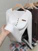Suéter de una pieza con cuello en V de terciopelo y forro polar para mujer, camisa base, suéter interior cálido y grueso de corte ajustado para otoño e invierno.
