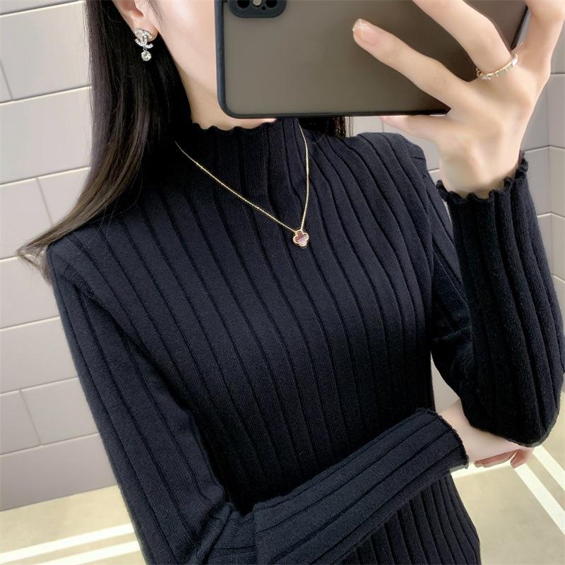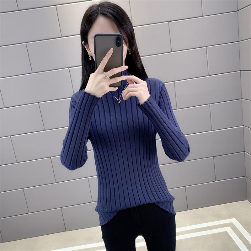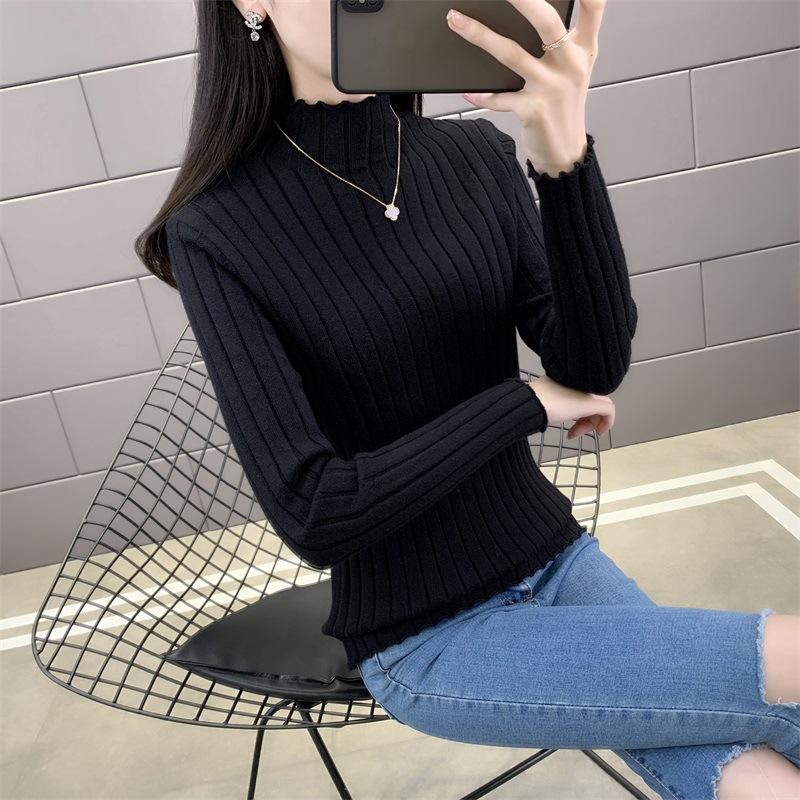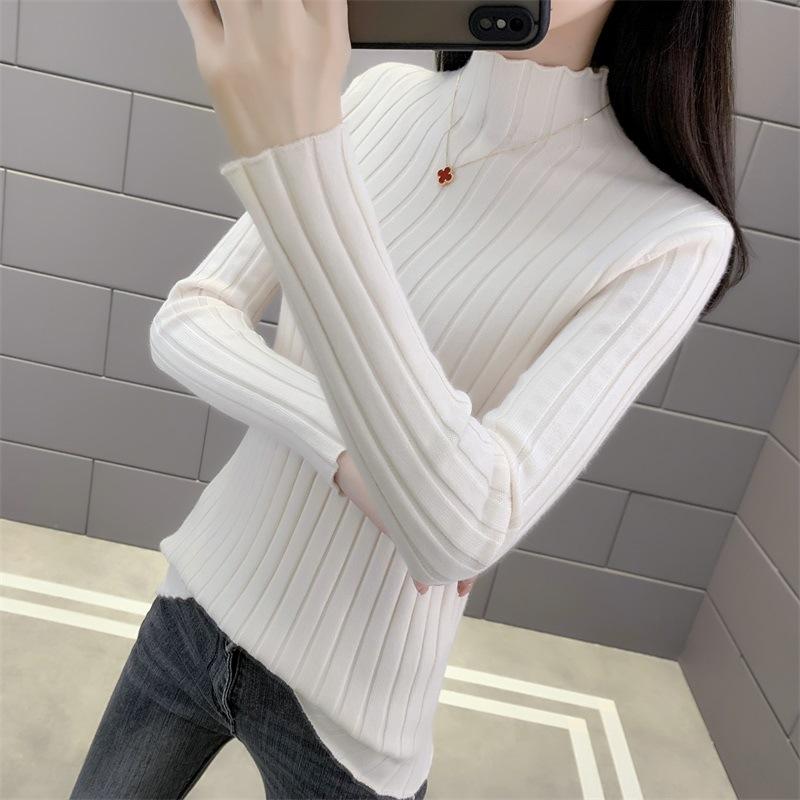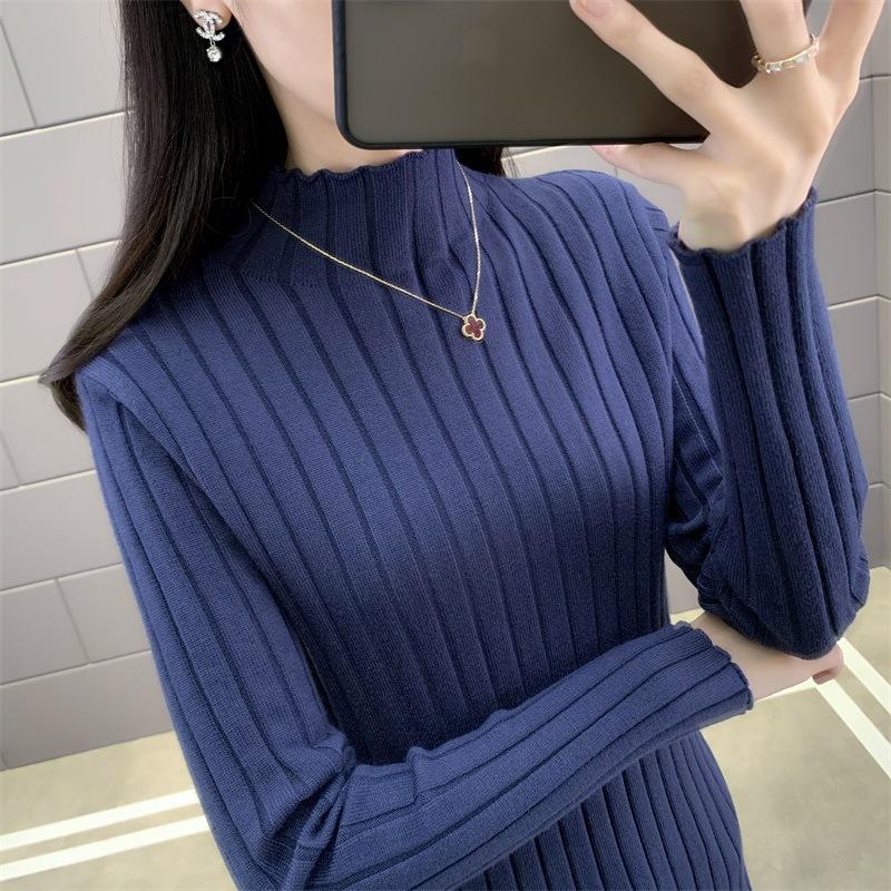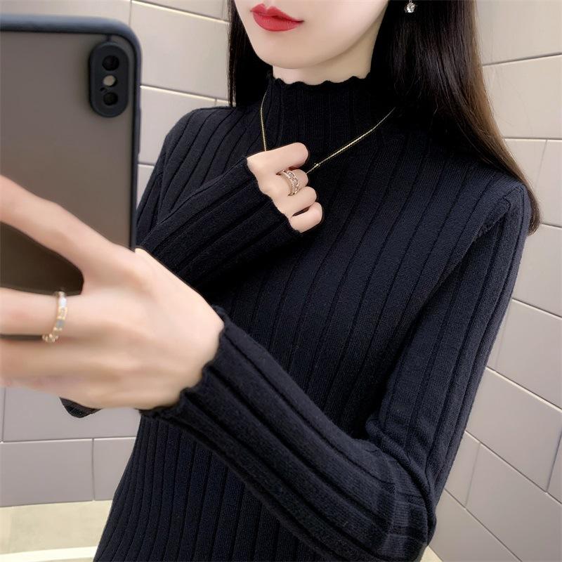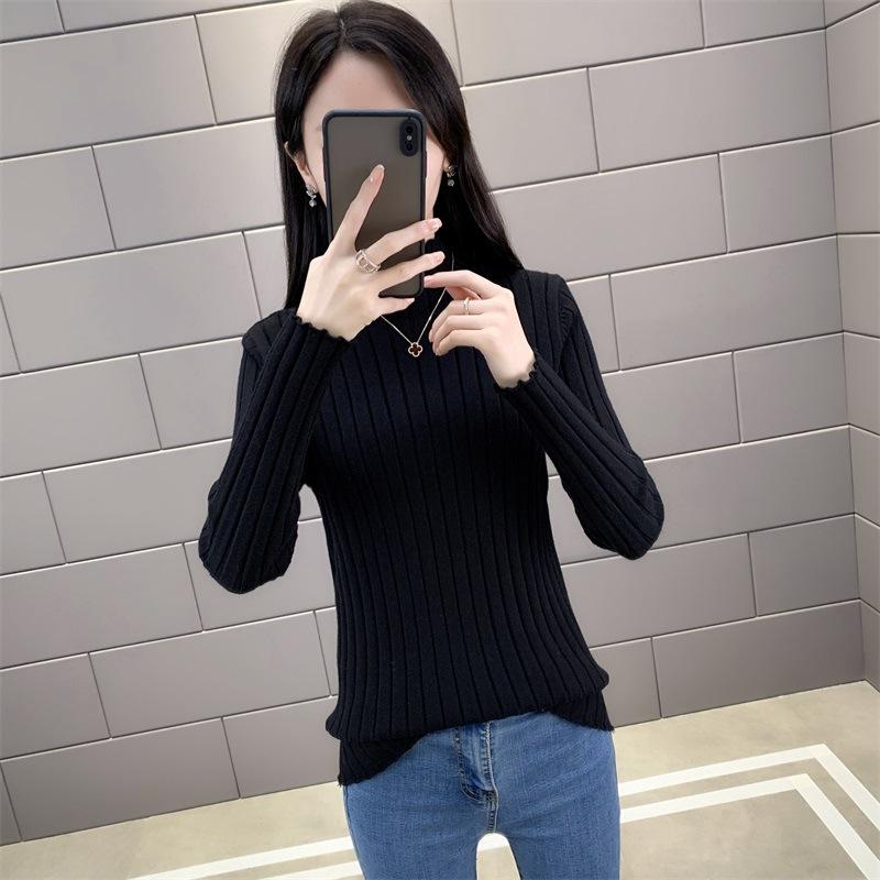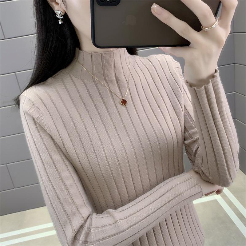 Suéter de cuello alto medio para mujer, camisa básica, interior de otoño e invierno 2023, nuevo suéter simple, ajustado, de manga larga