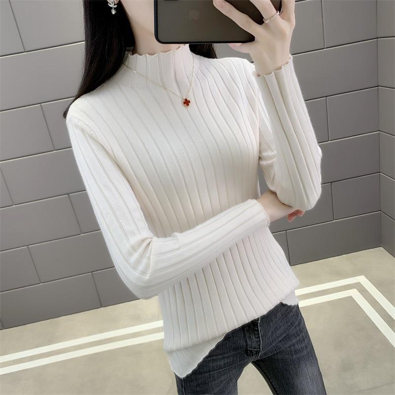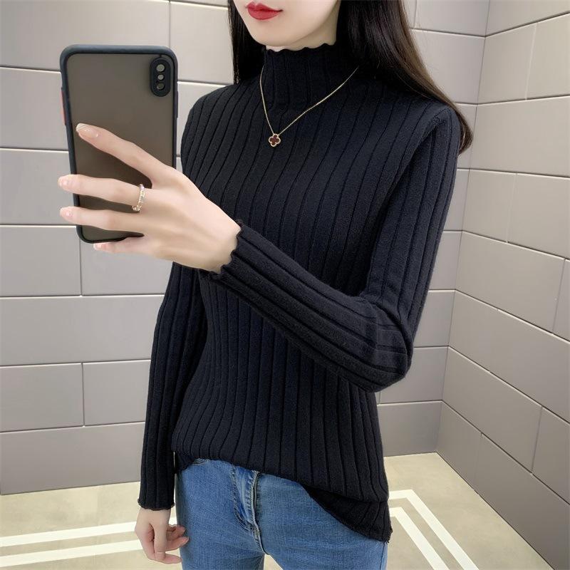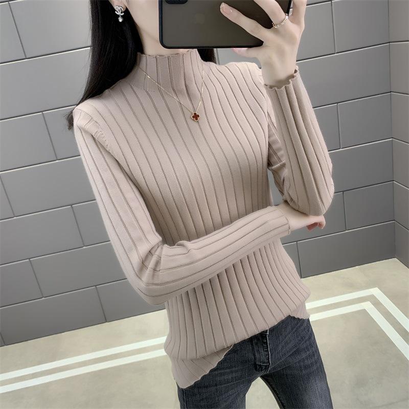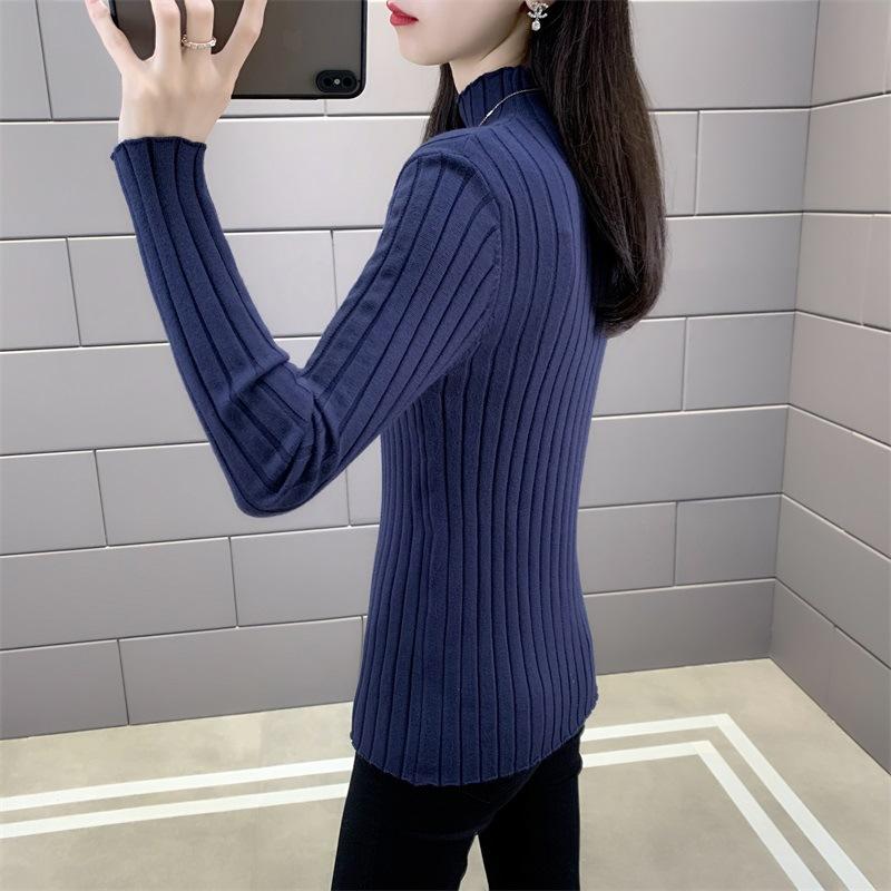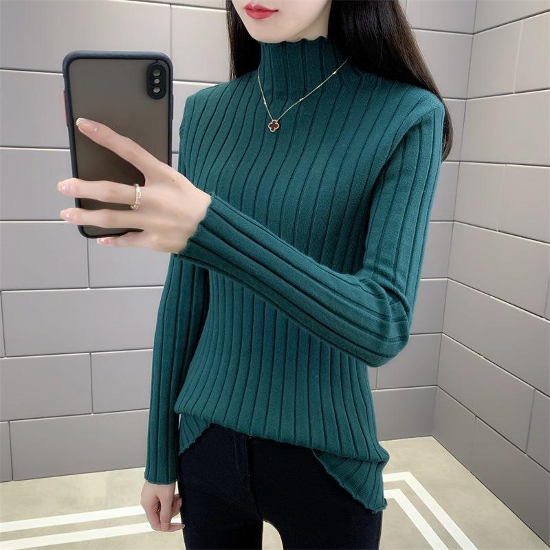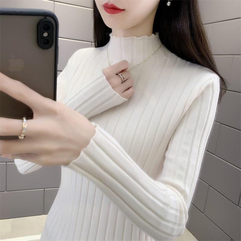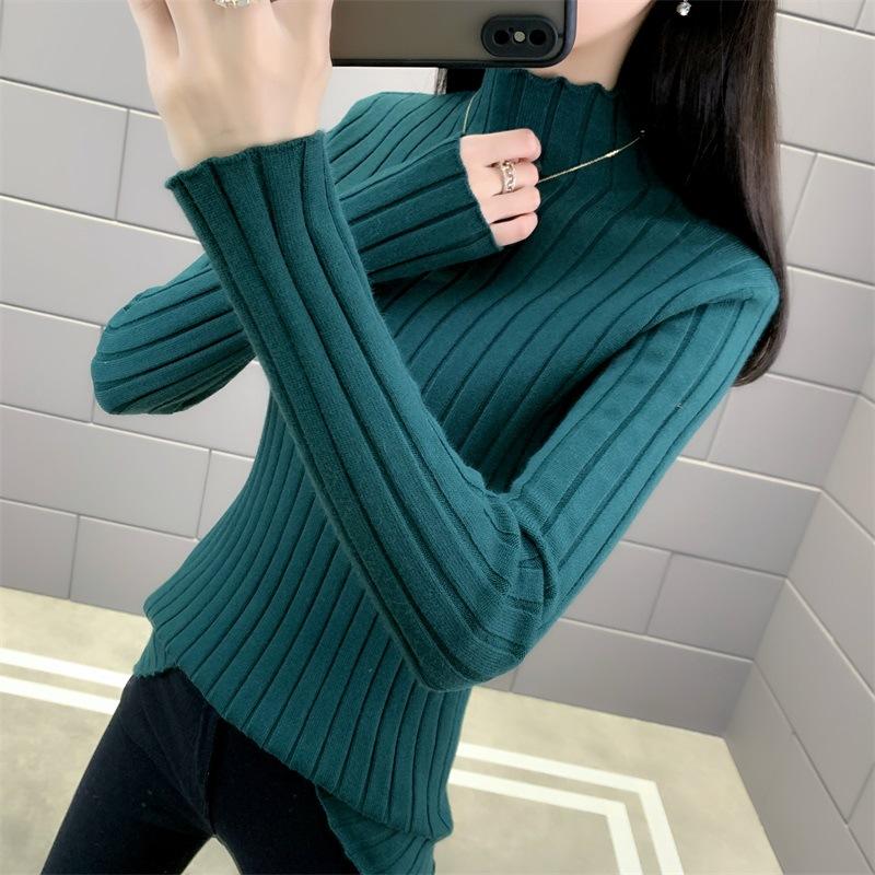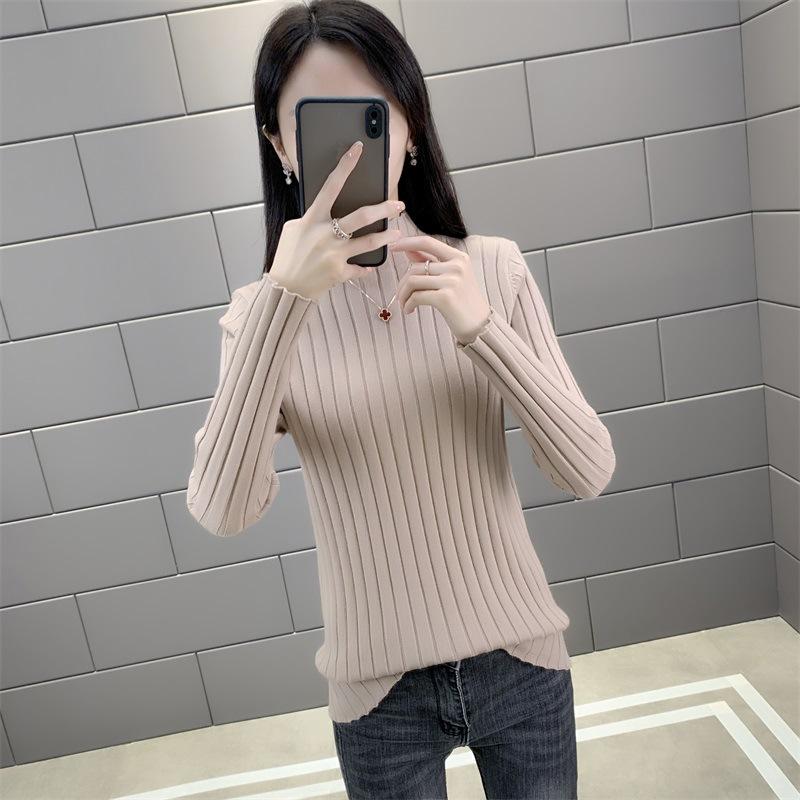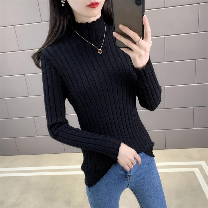 Suéter de cuello alto medio para mujer, camisa básica, interior de otoño e invierno 2023, nuevo suéter simple, ajustado, de manga larga