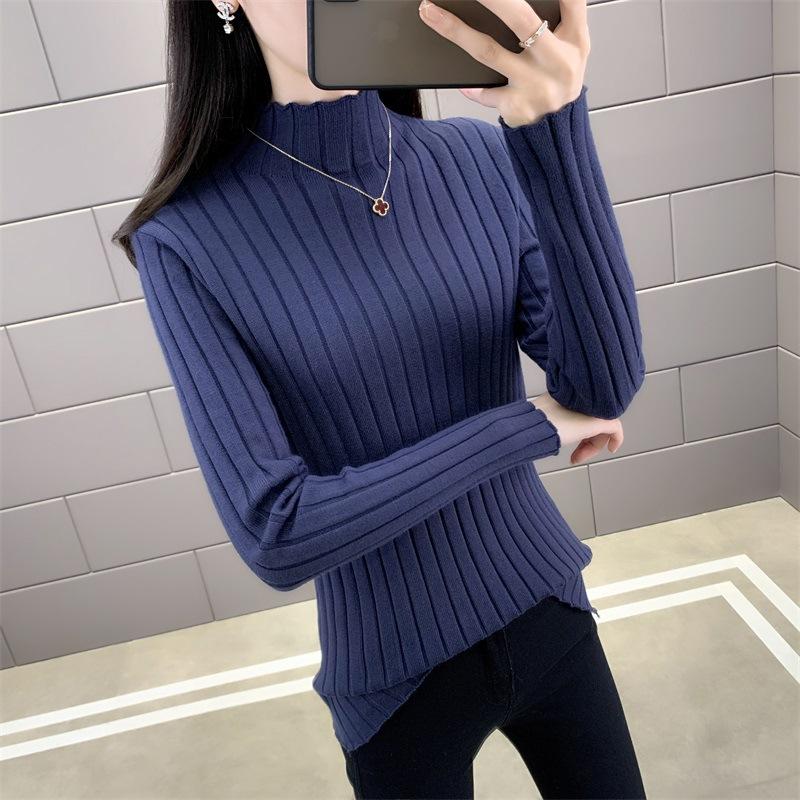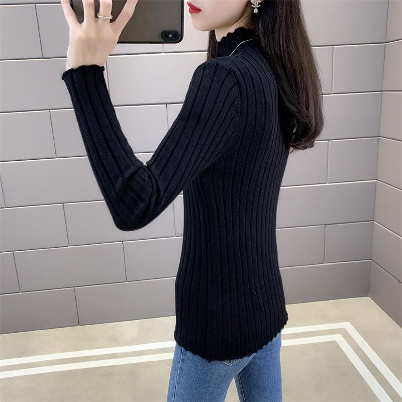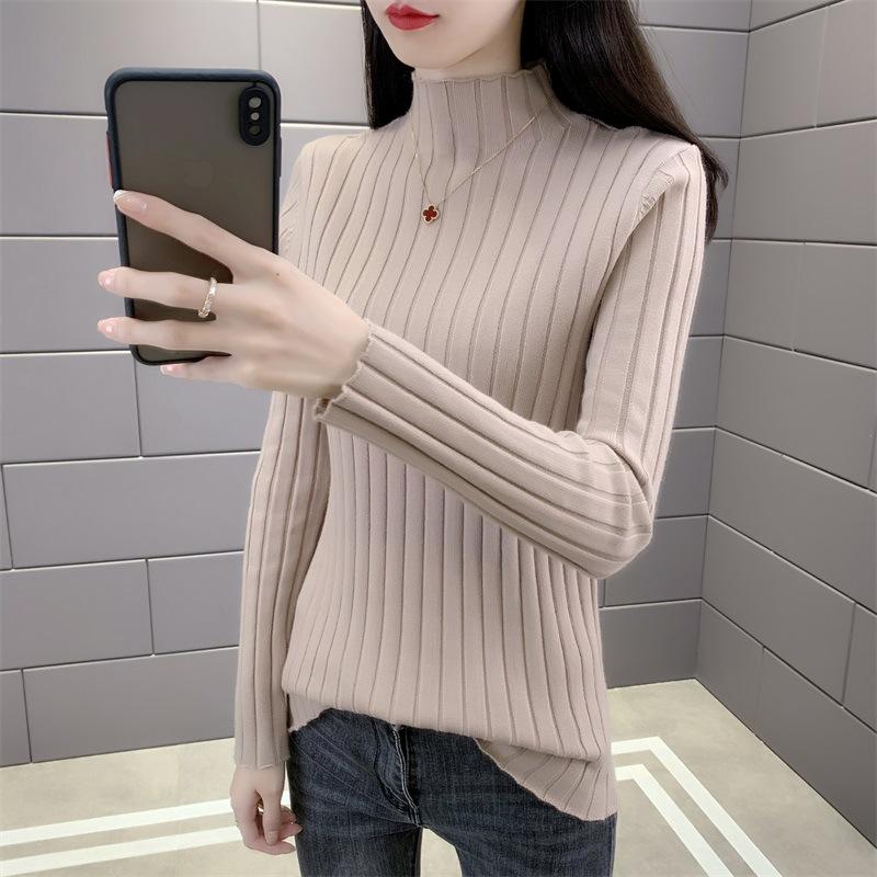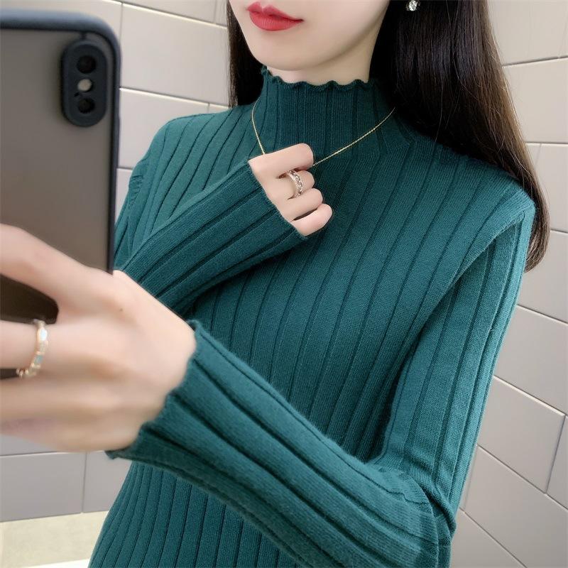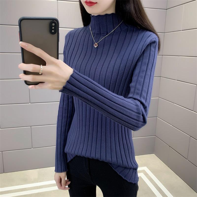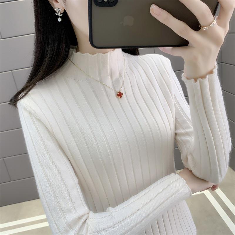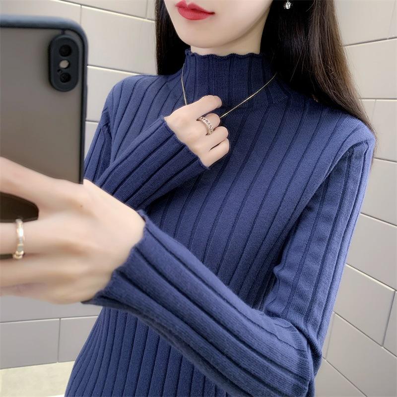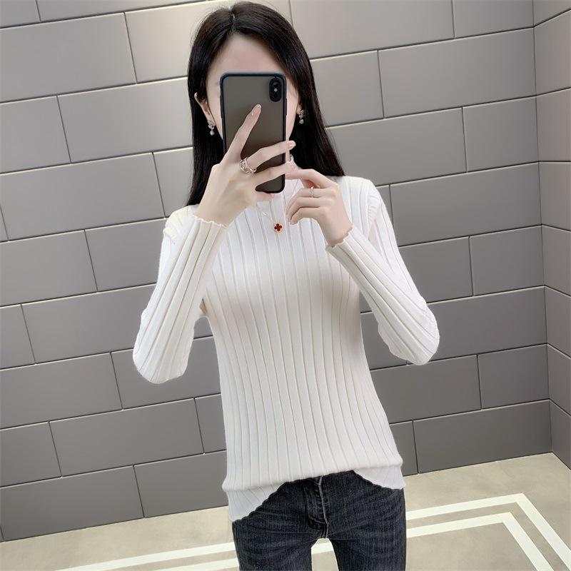 Suéter de cuello alto medio para mujer, camisa básica, interior de otoño e invierno 2023, nuevo suéter simple, ajustado, de manga larga