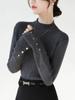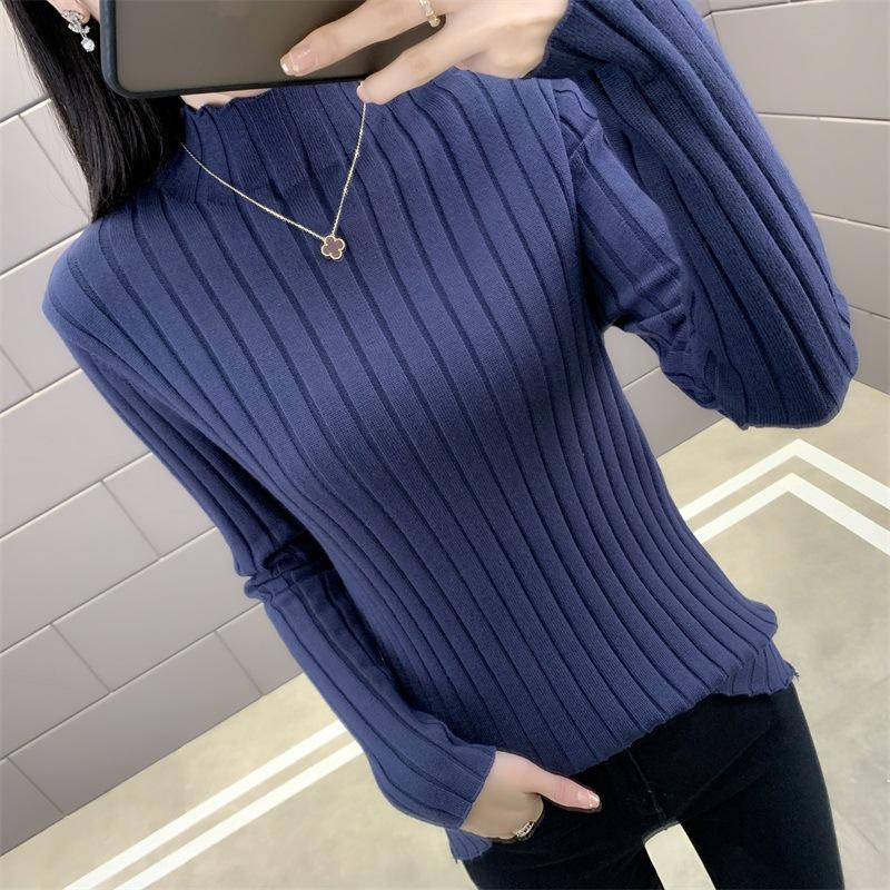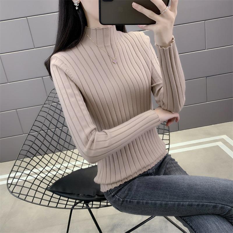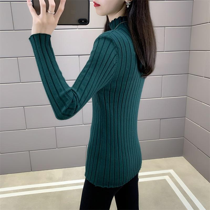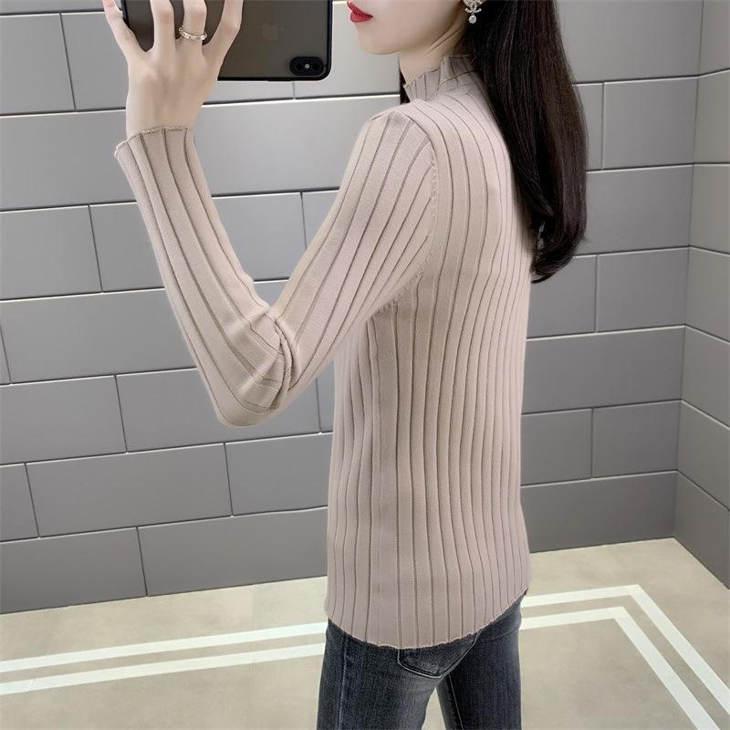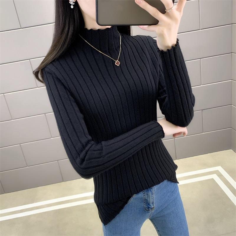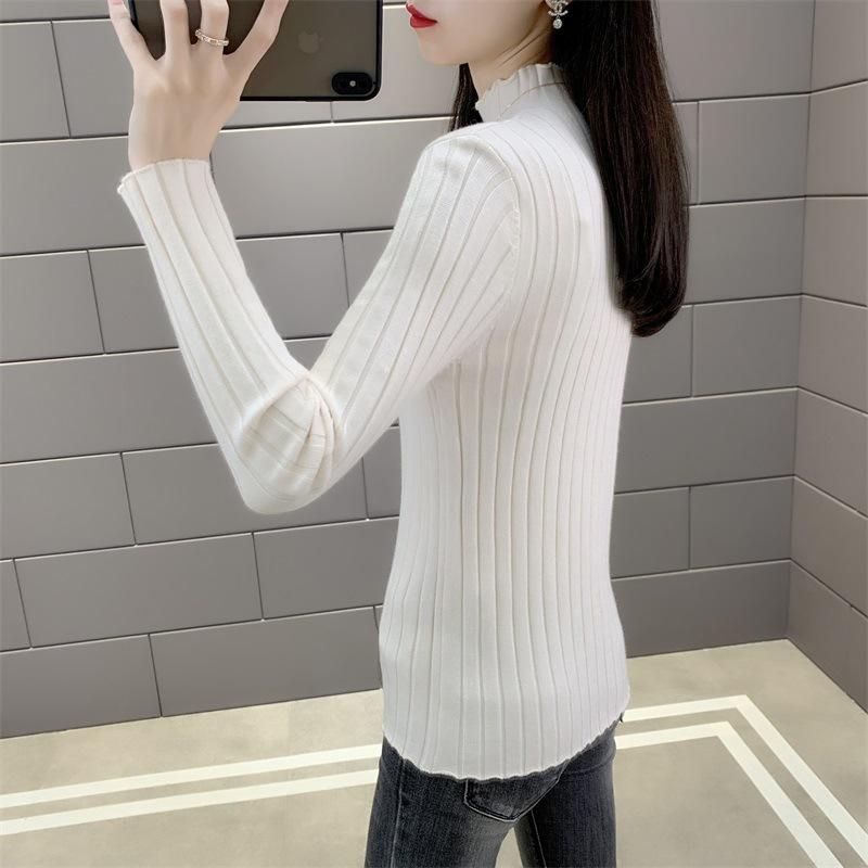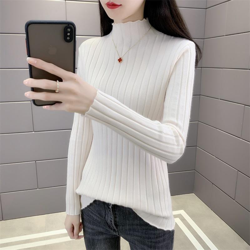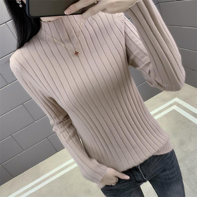 Suéter de cuello alto medio para mujer, camisa básica, interior de otoño e invierno 2023, nuevo suéter simple, ajustado, de manga larga