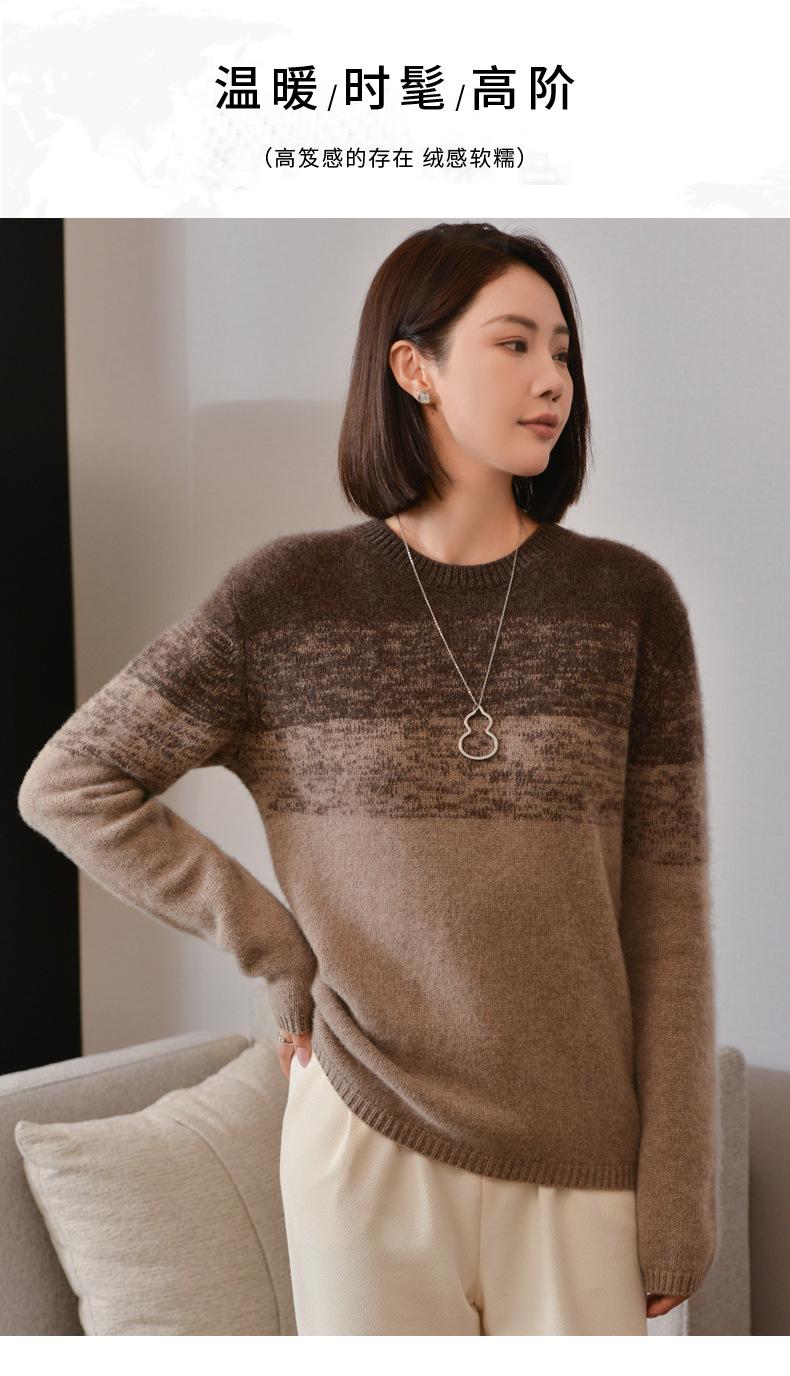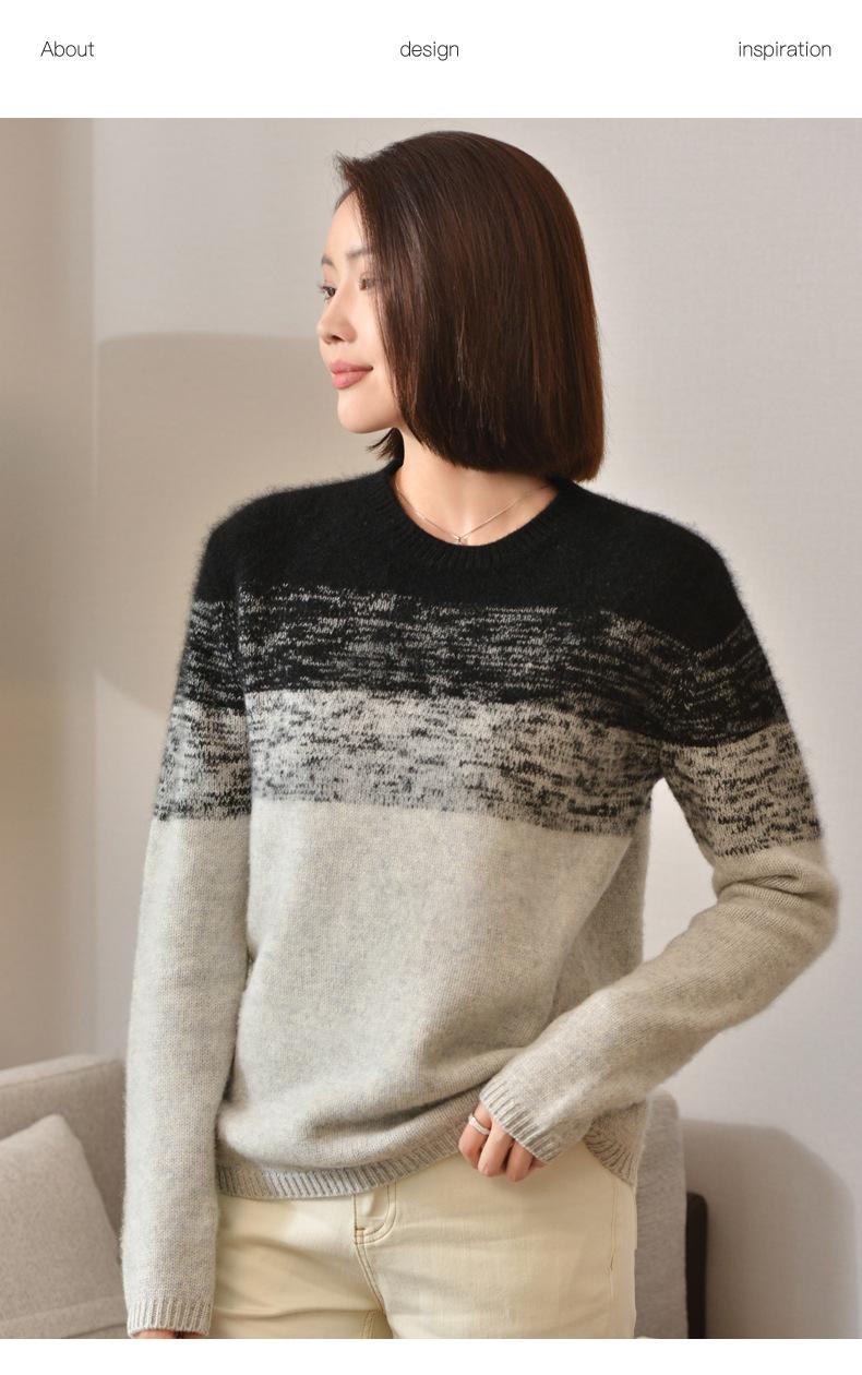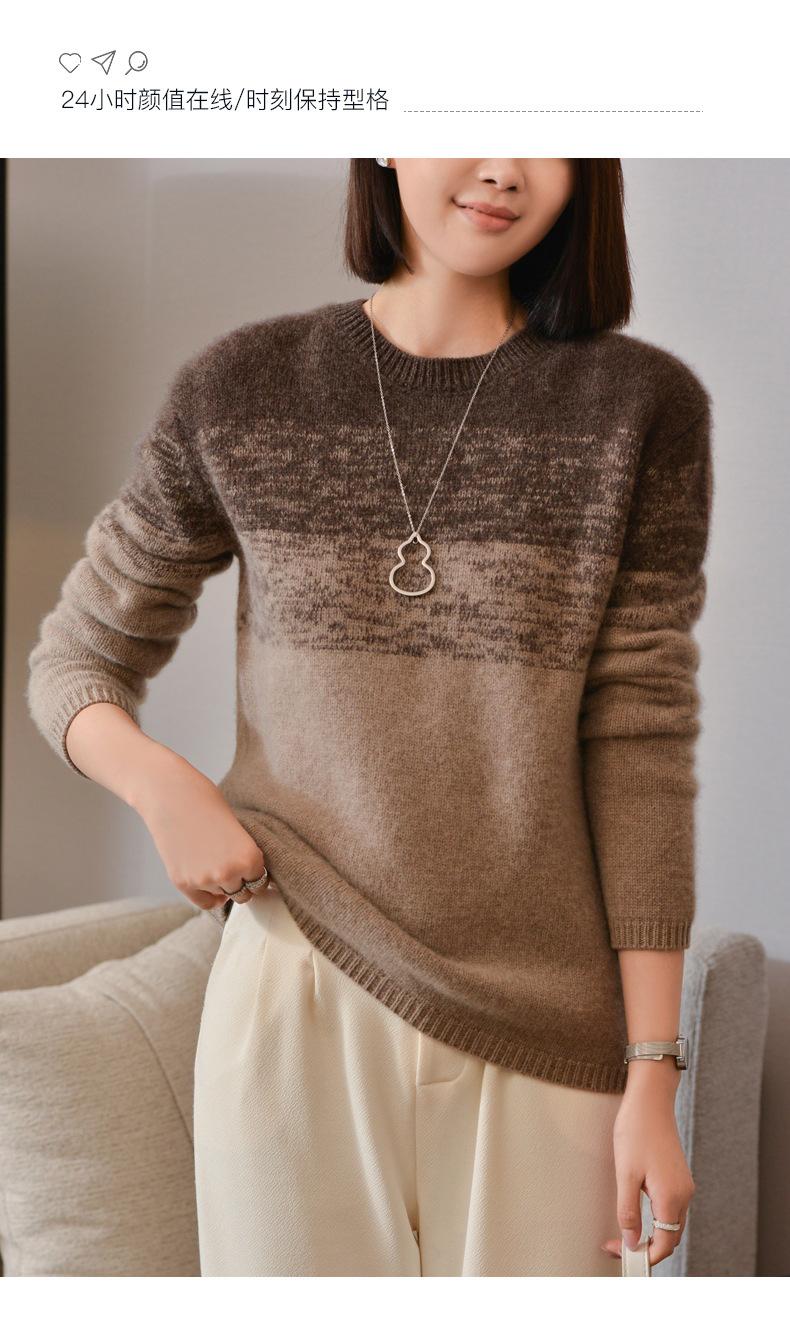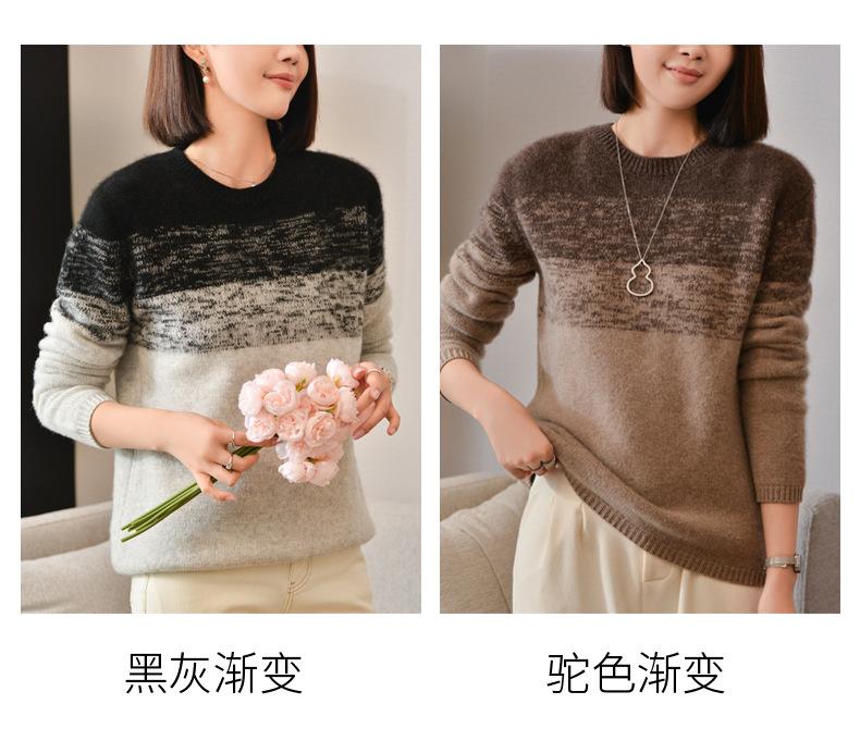 Suéter Suave y Ceroso con Combinación de Colores Degradados para Mujer 2024 Nuevo Suéter Holgado de Cuello Redondo de Lana para Mujer Sencillo Moda Combinable