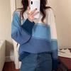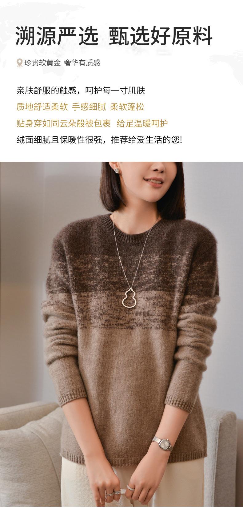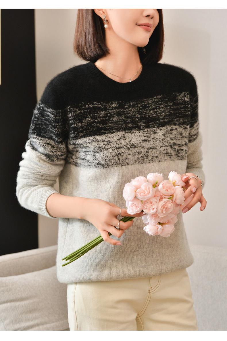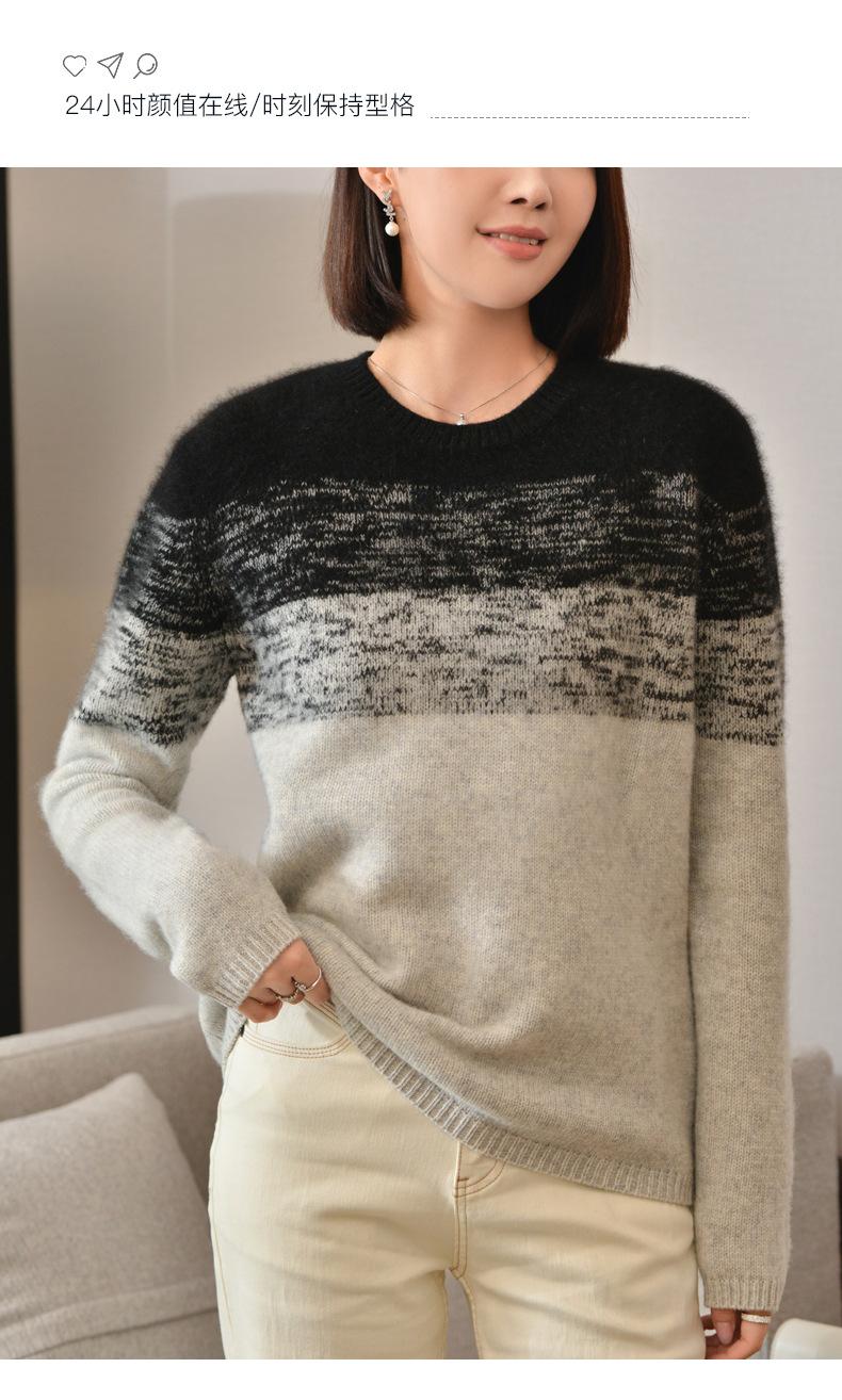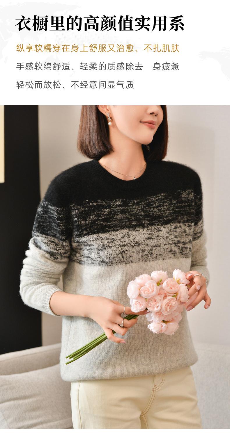 Suéter Suave y Ceroso con Combinación de Colores Degradados para Mujer 2024 Nuevo Suéter Holgado de Cuello Redondo de Lana para Mujer Sencillo Moda Combinable