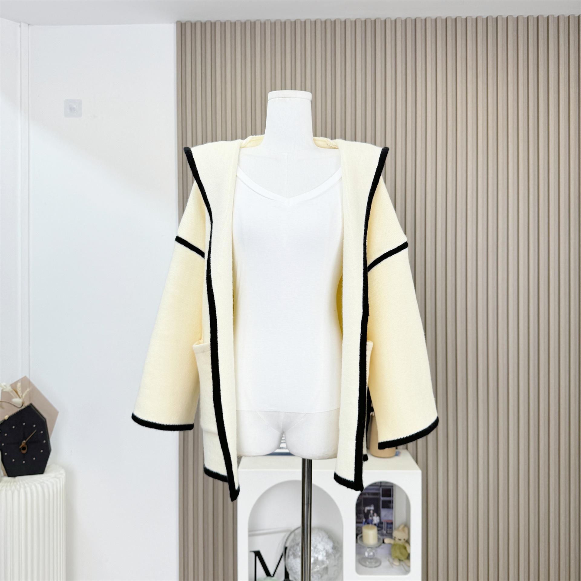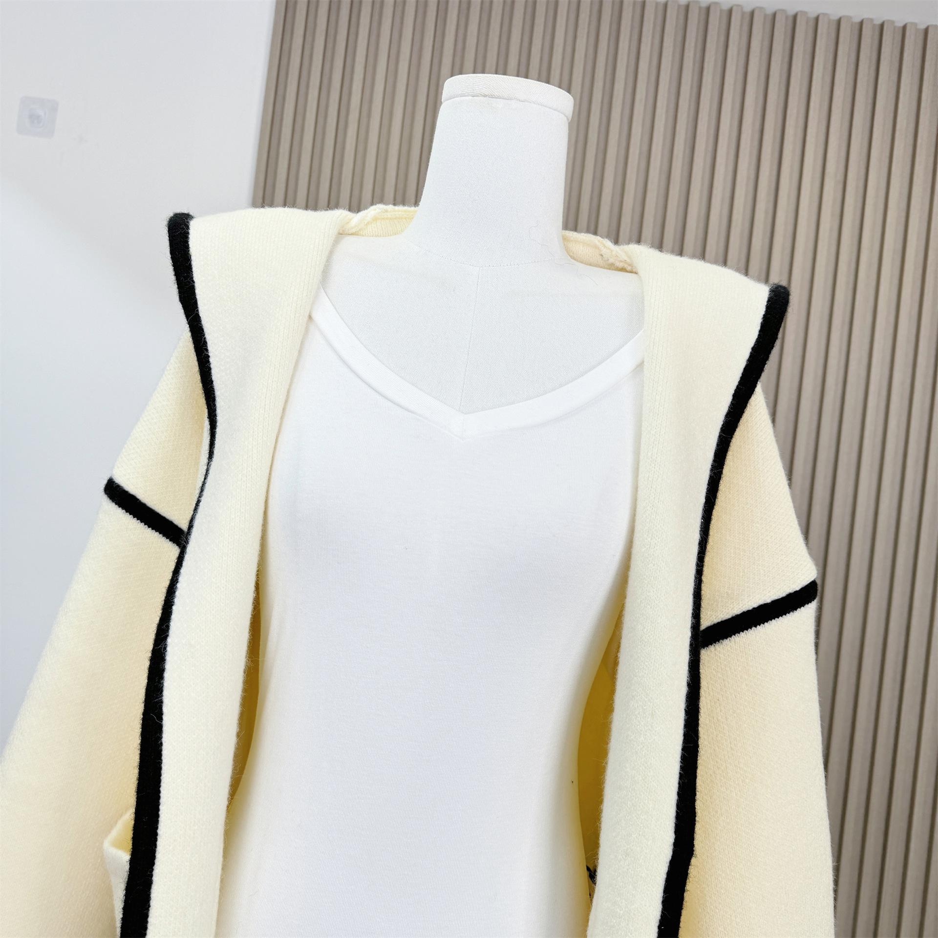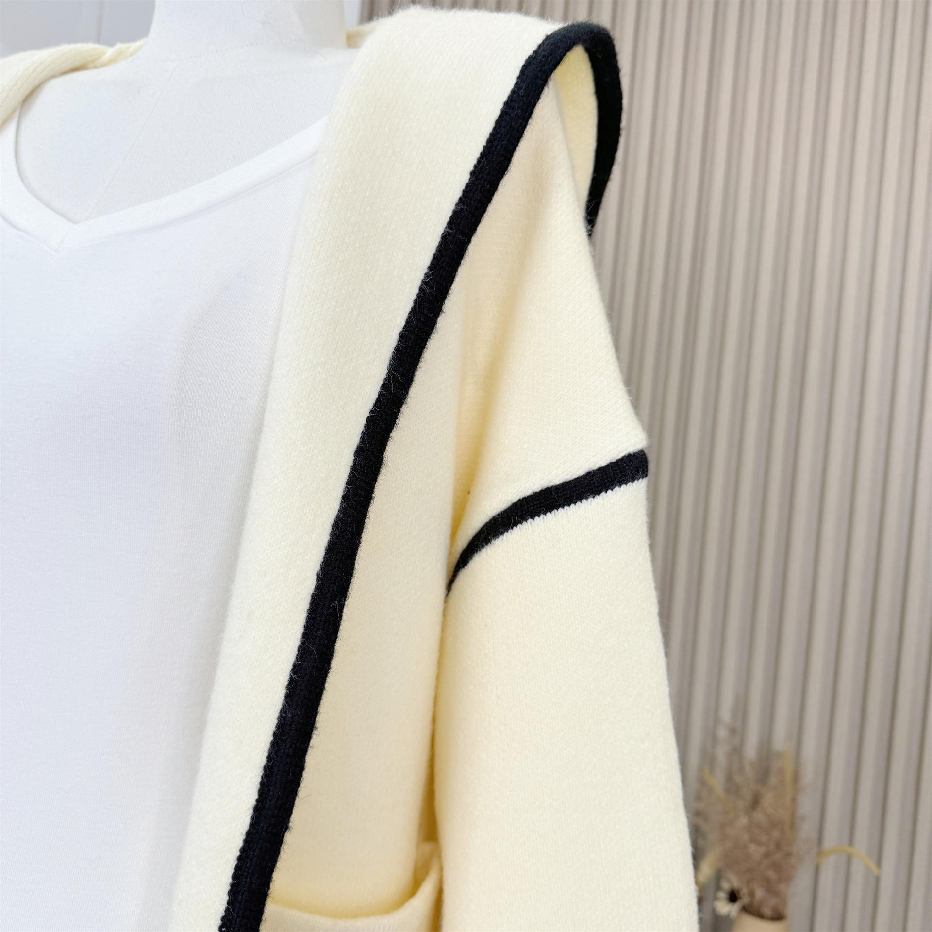 Suéter blanco de punto, cárdigan de otoño e invierno, abrigo poncho holgado con capucha y contraste de colores de alta gama para mujer