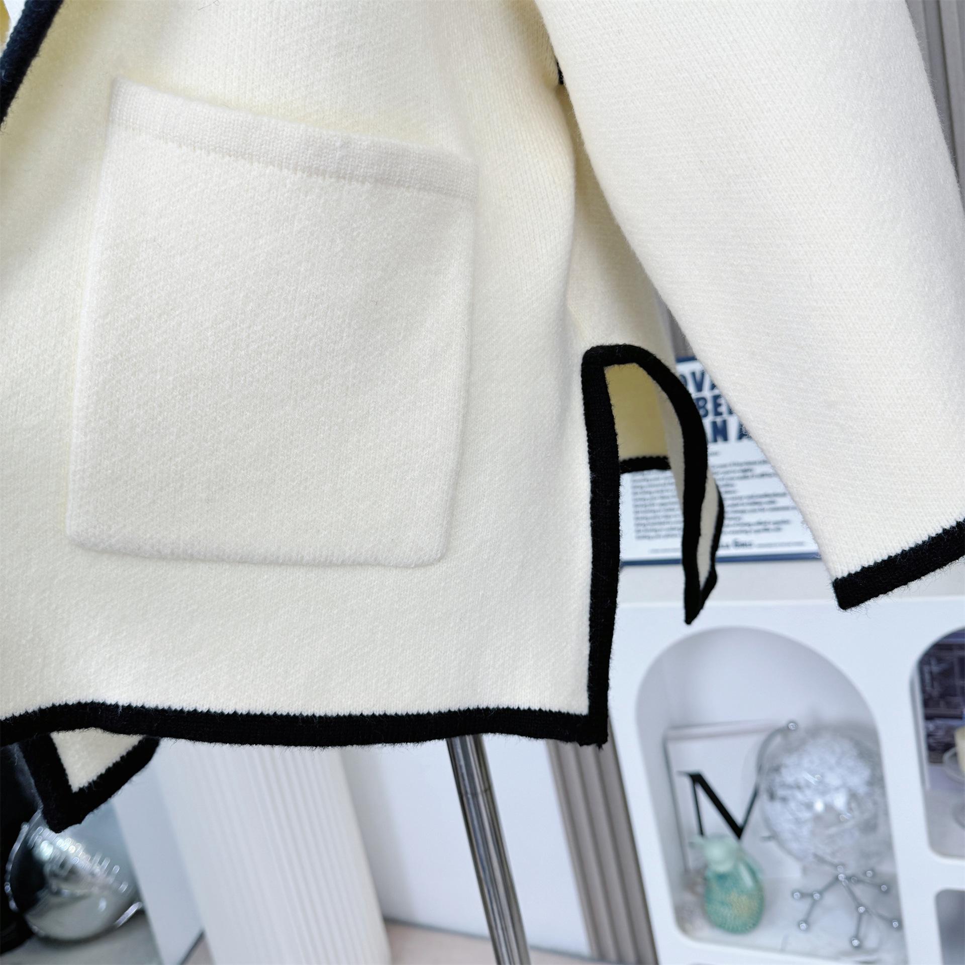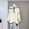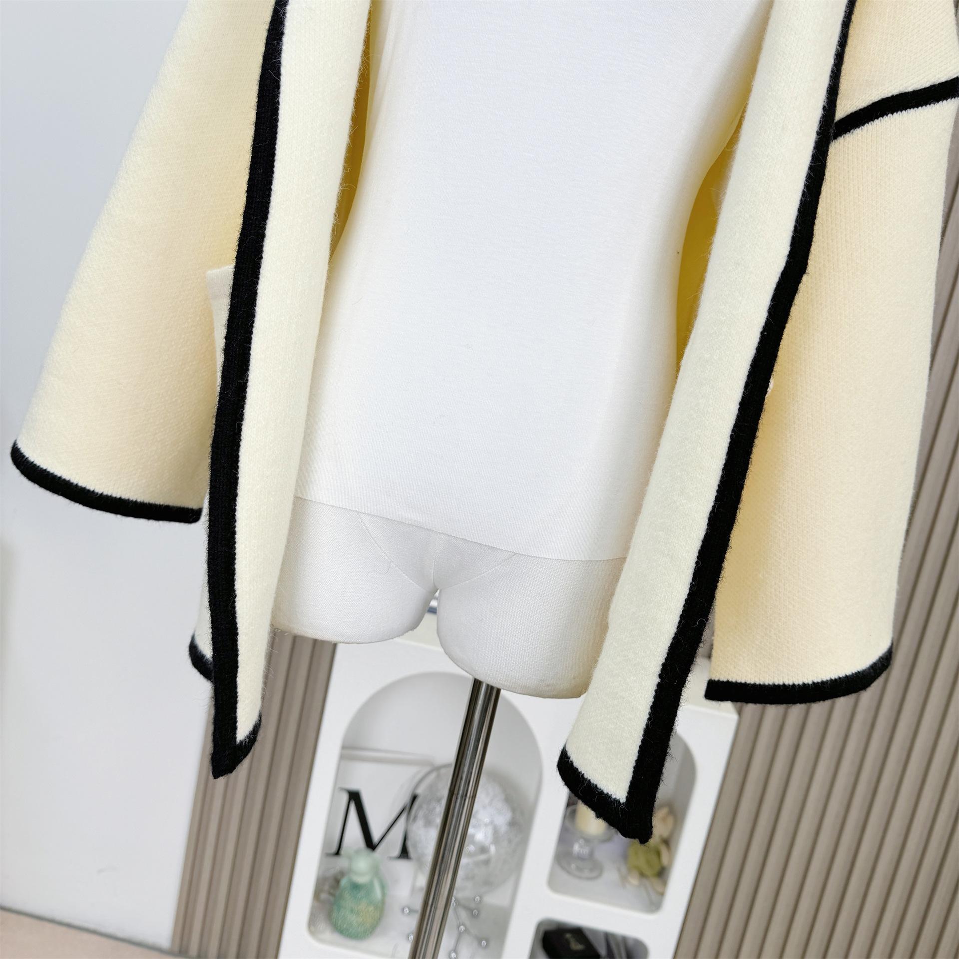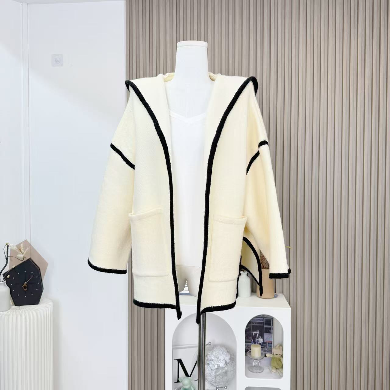 Suéter blanco de punto, cárdigan de otoño e invierno, abrigo poncho holgado con capucha y contraste de colores de alta gama para mujer