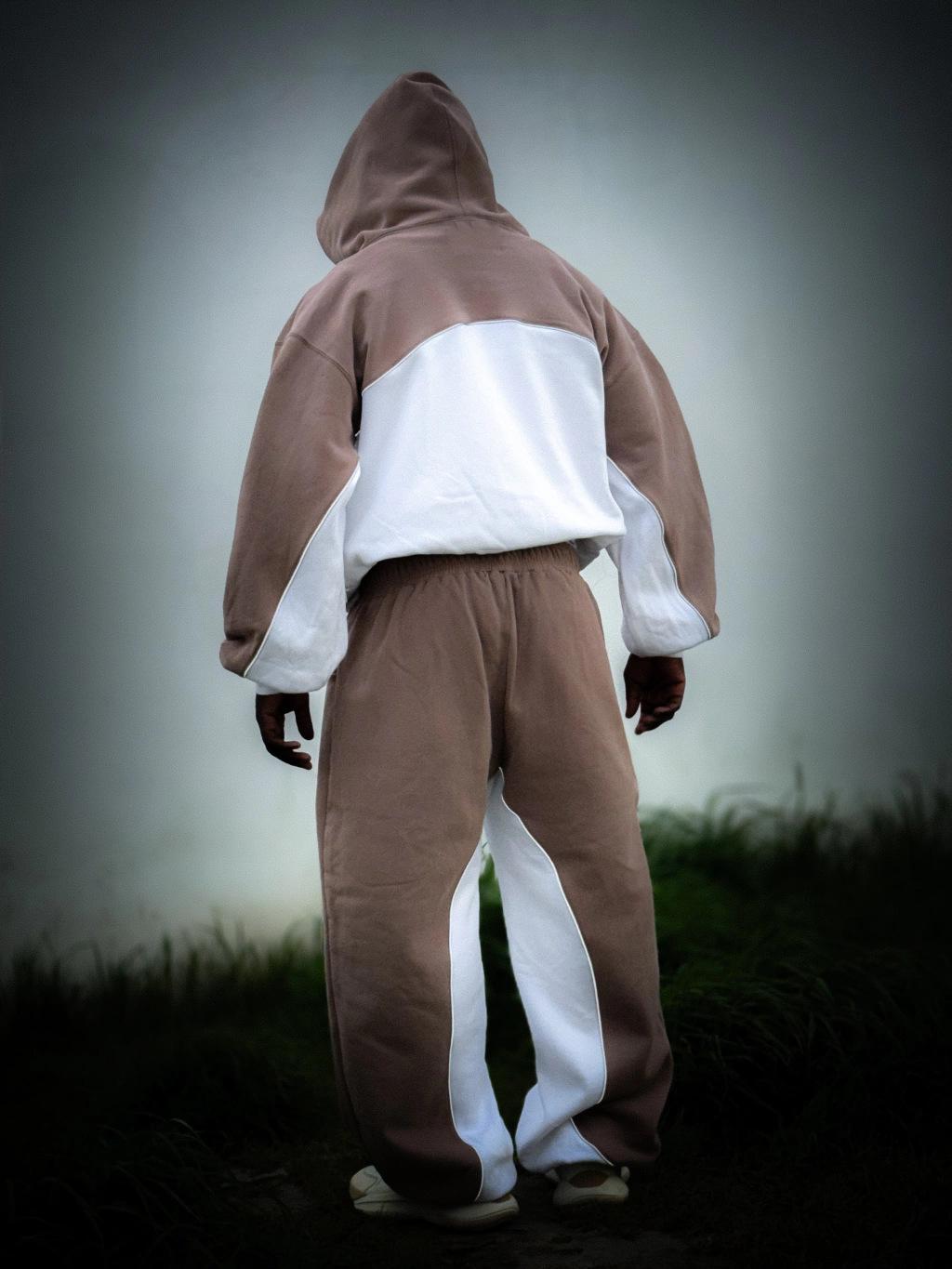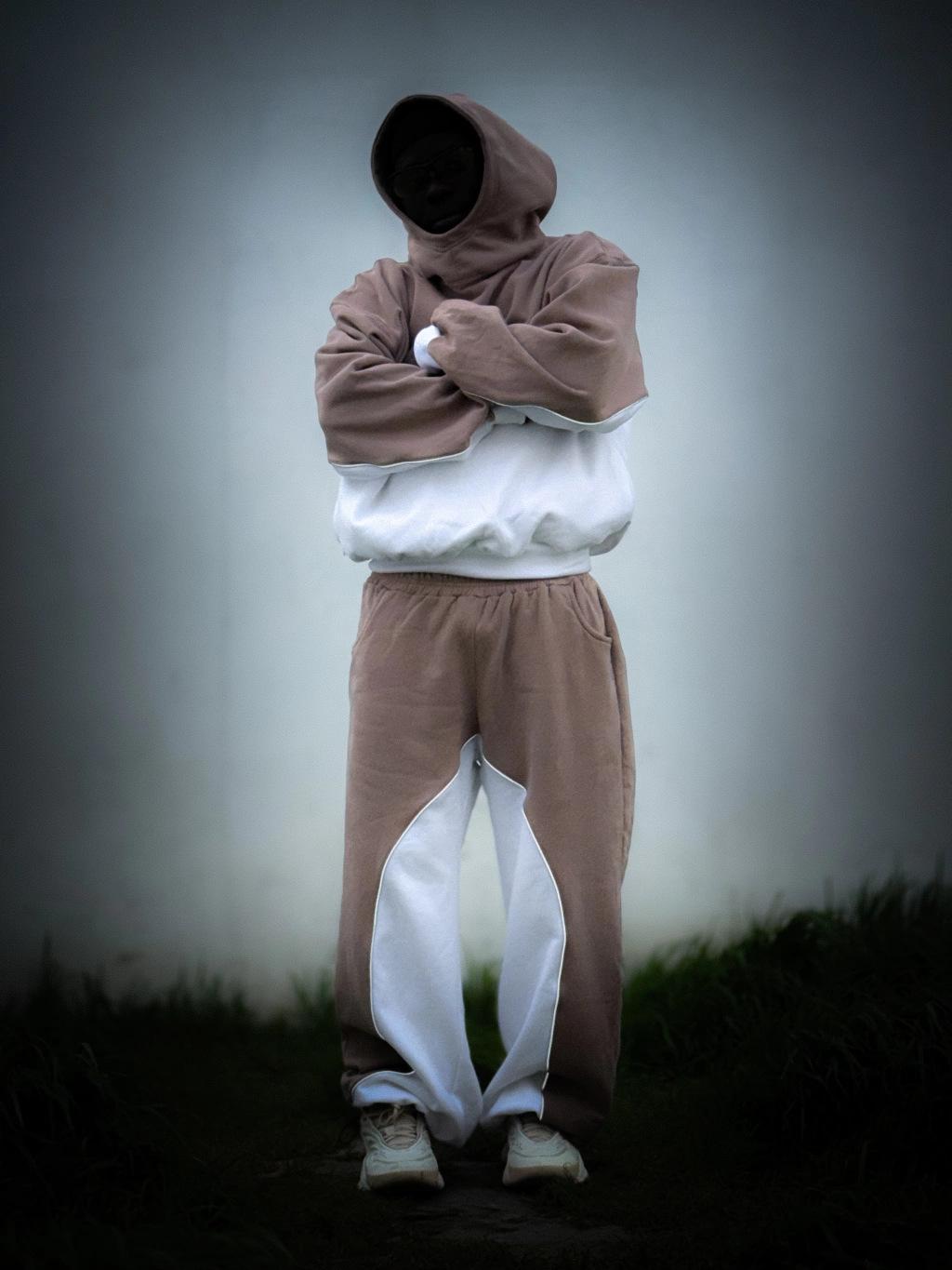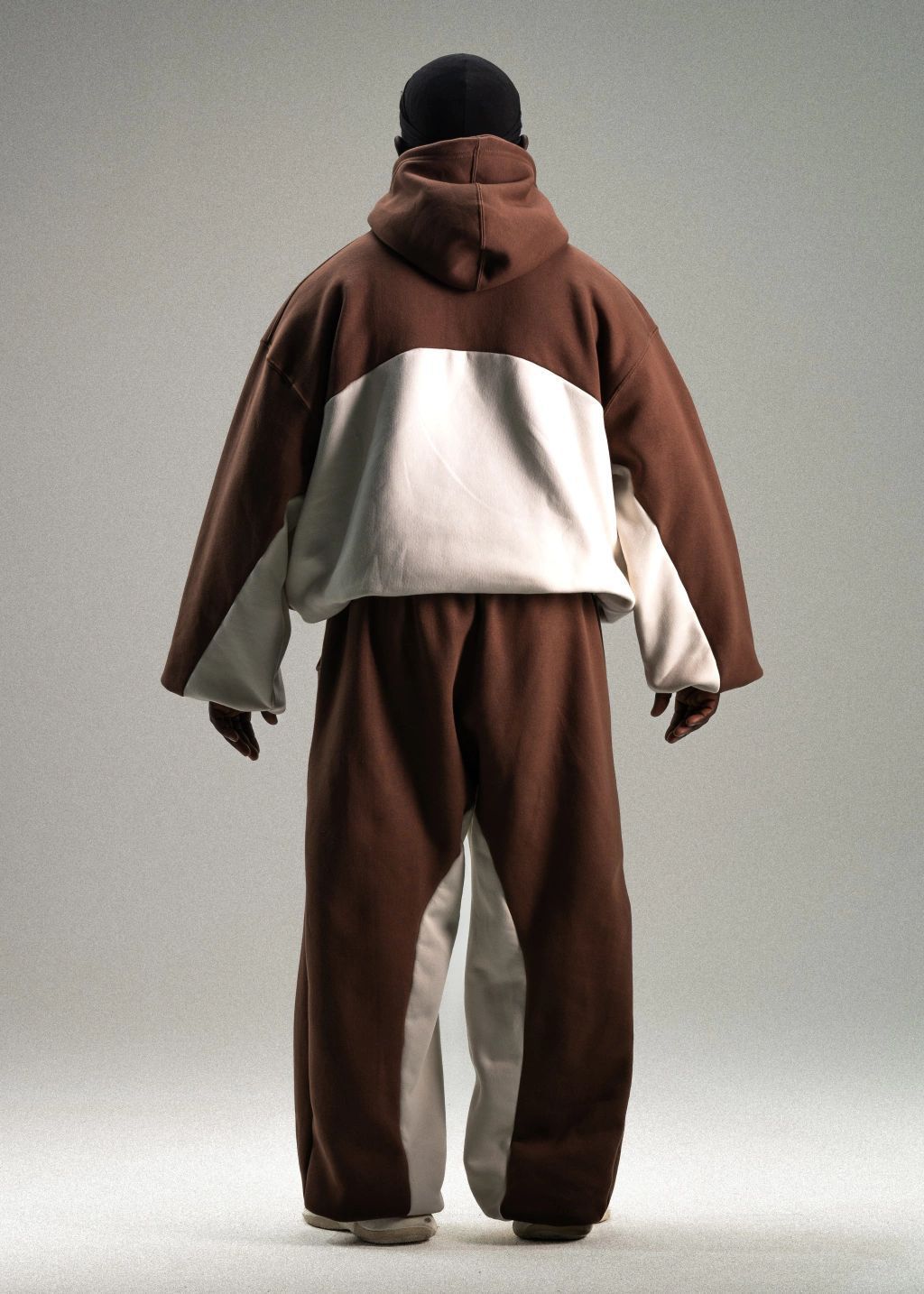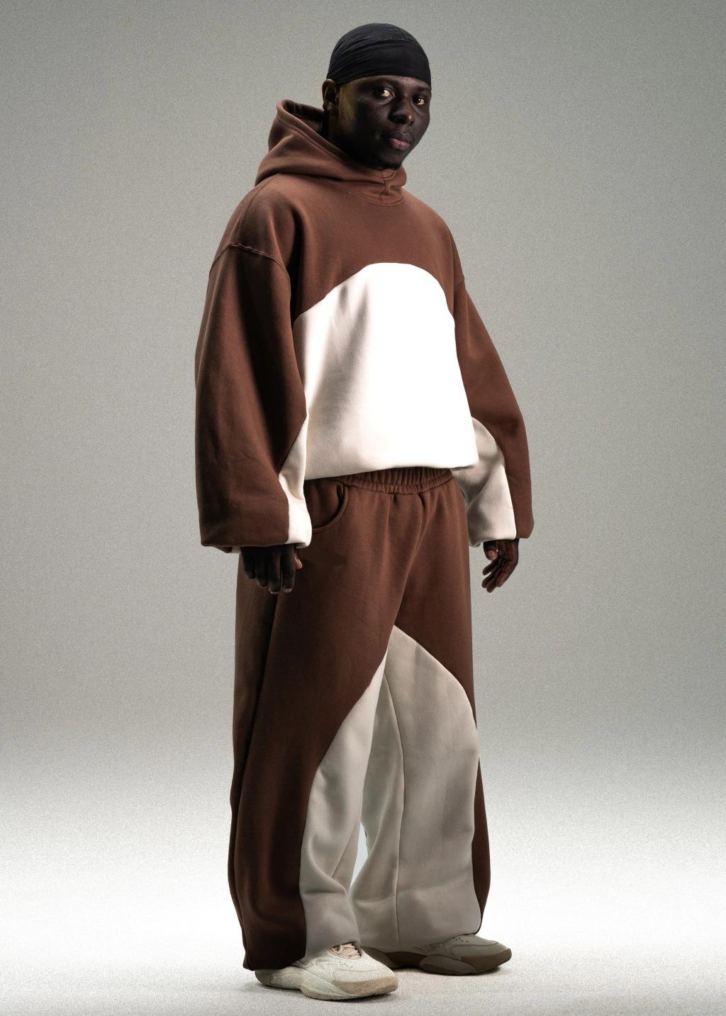 Light brown sweatshirt, Light brown sweatpants, Dark brown sweatshirt, Dark brown sweatpants, Black sweatshirt...