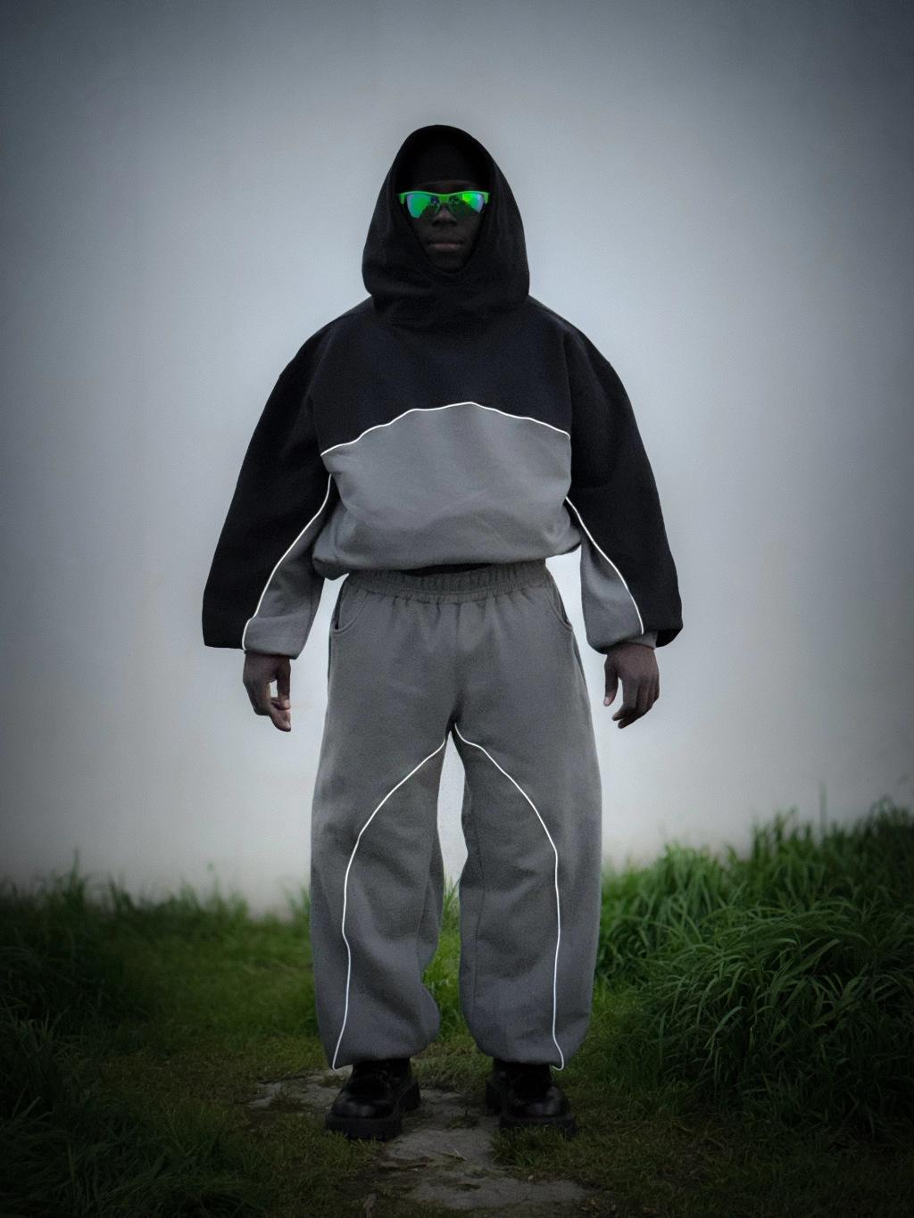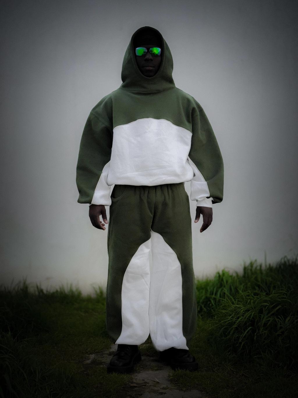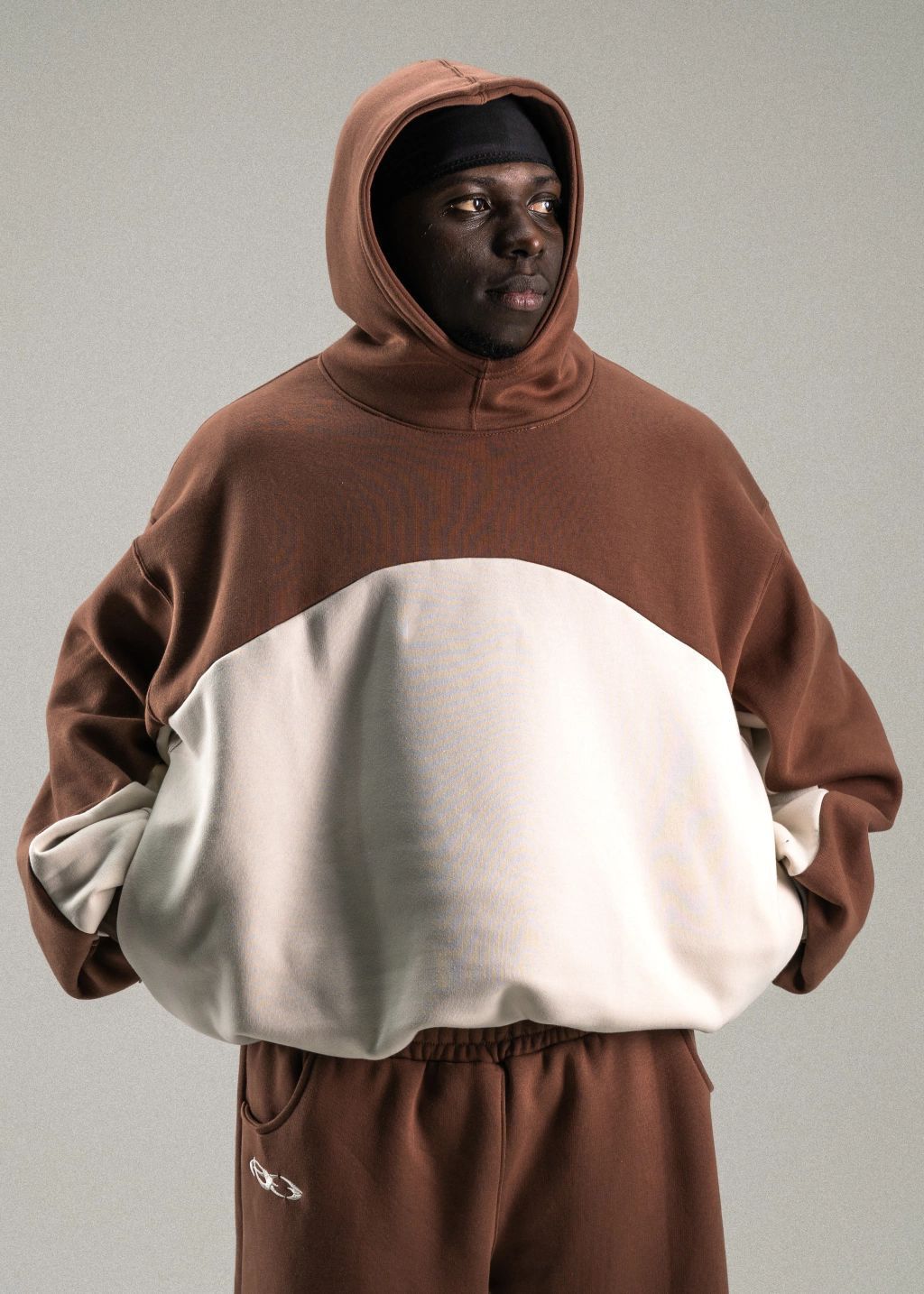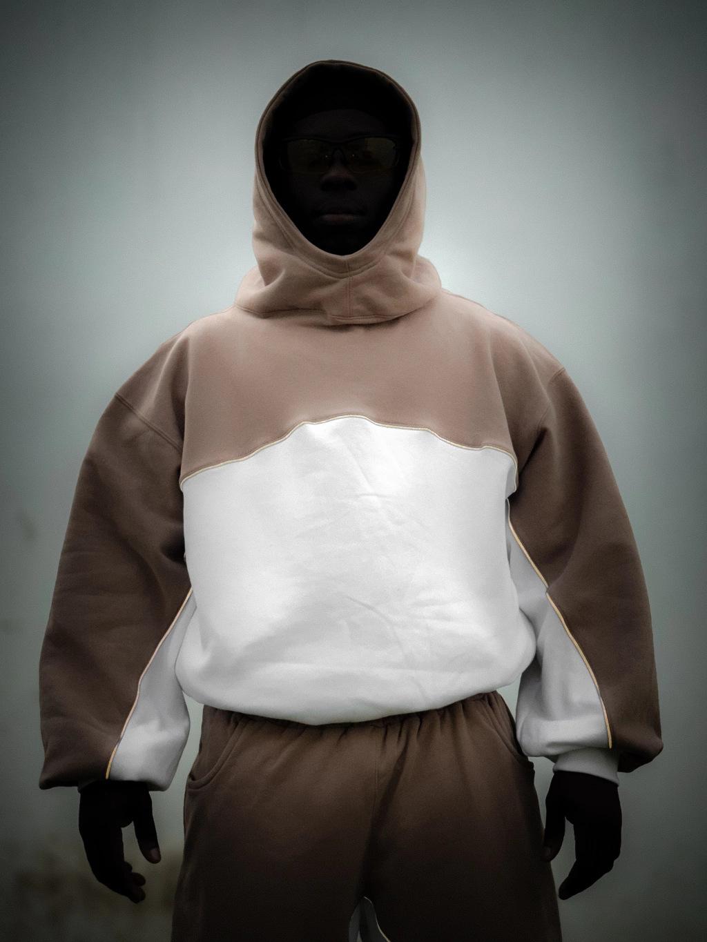 Light brown sweatshirt, Light brown sweatpants, Dark brown sweatshirt, Dark brown sweatpants, Black sweatshirt...