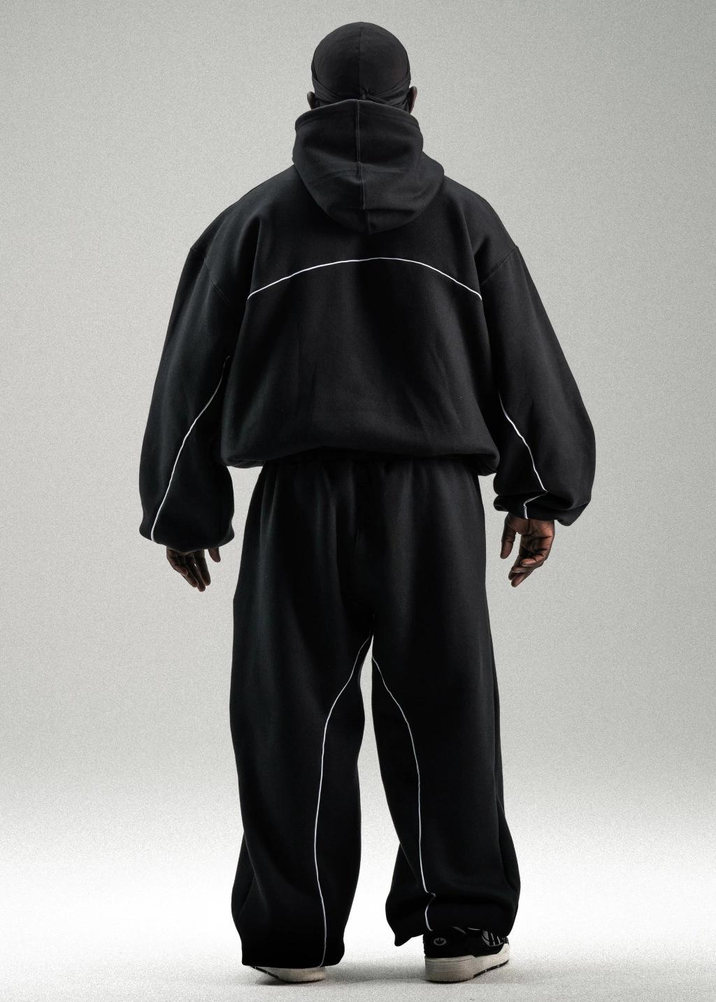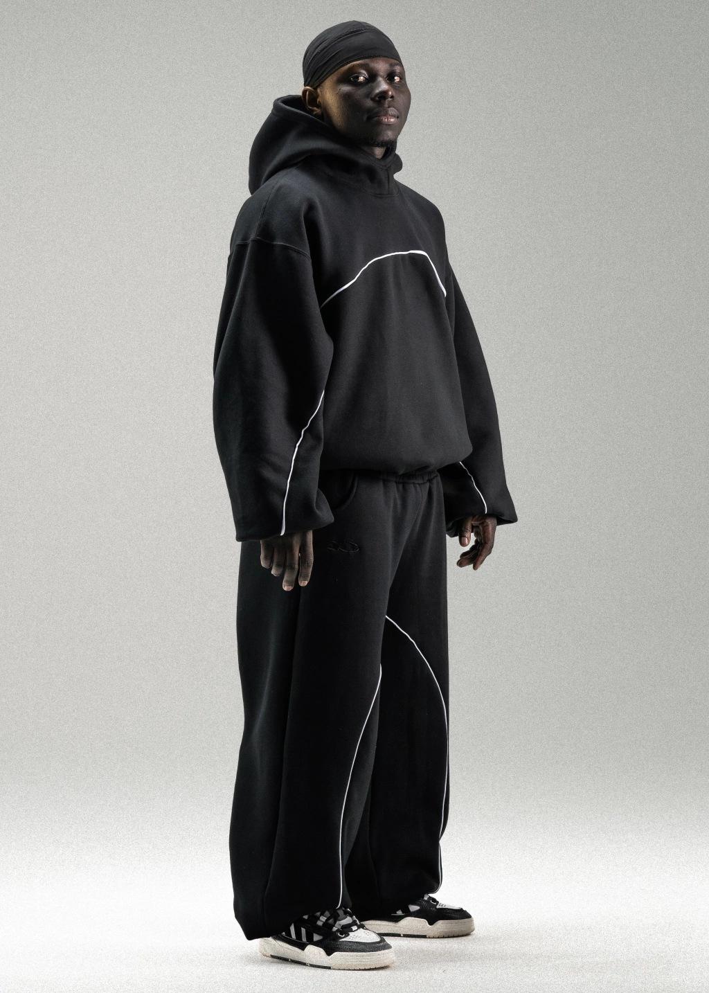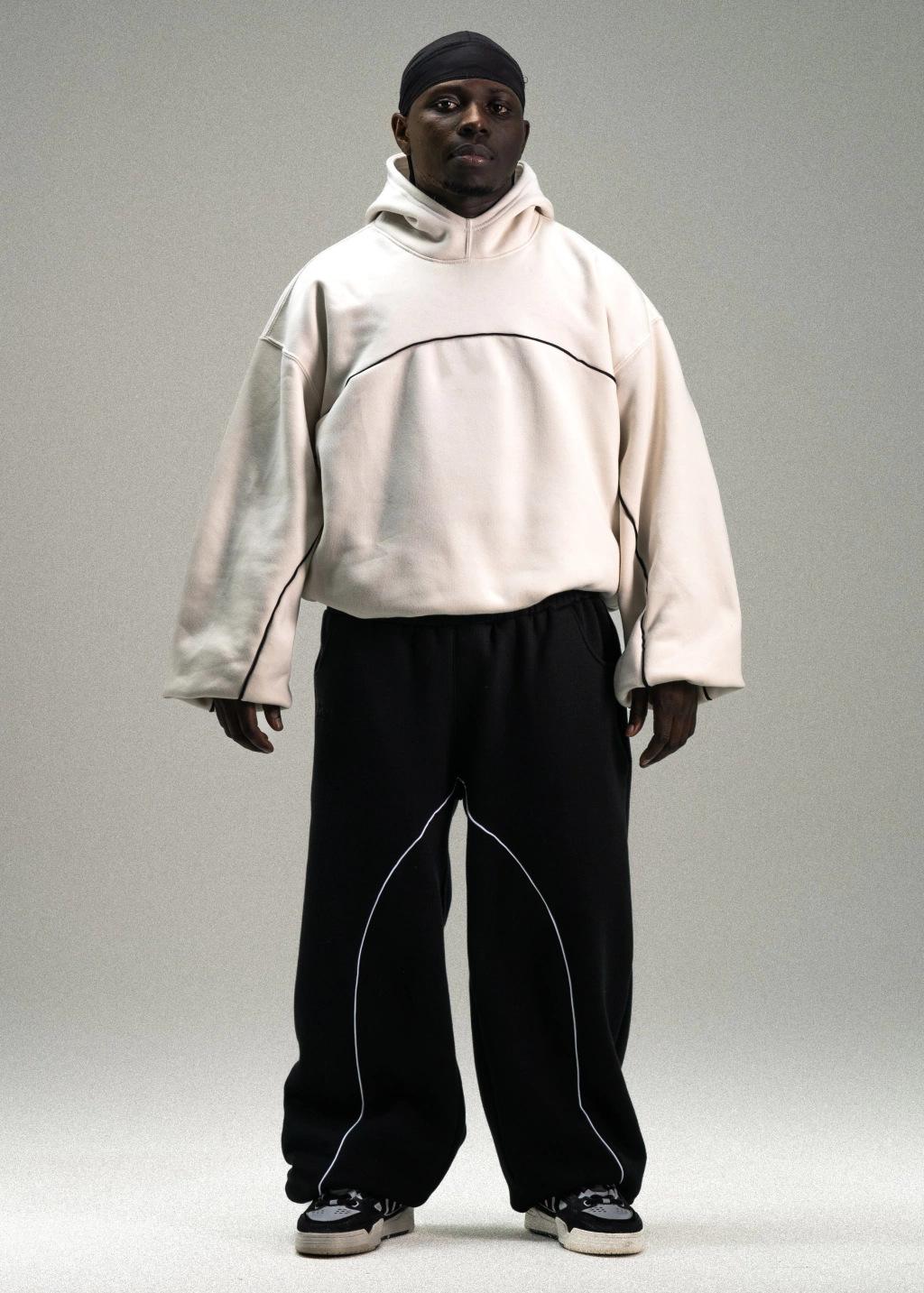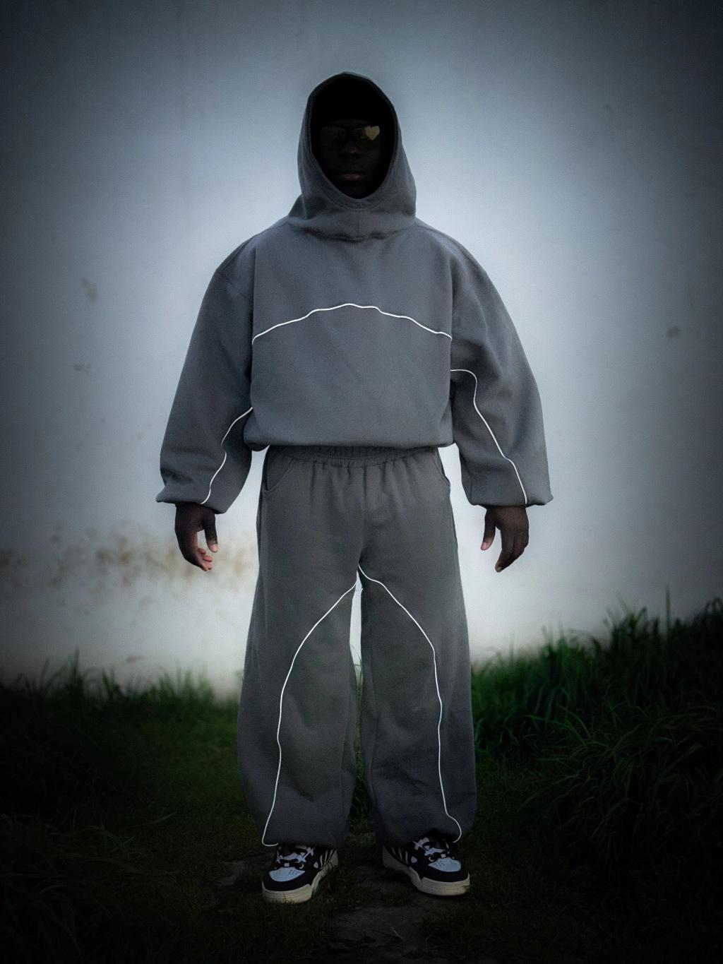 Light brown sweatshirt, Light brown sweatpants, Dark brown sweatshirt, Dark brown sweatpants, Black sweatshirt...
