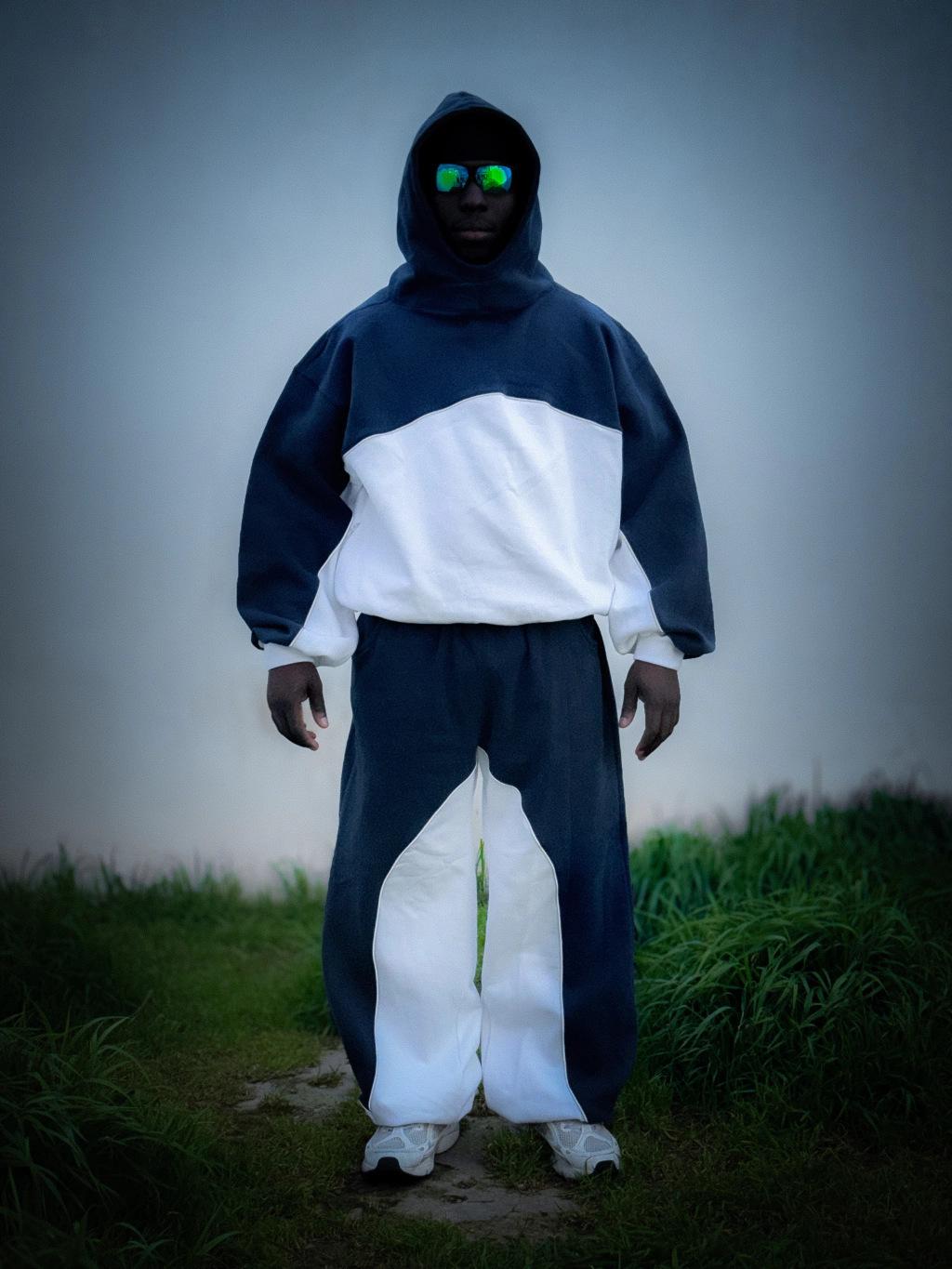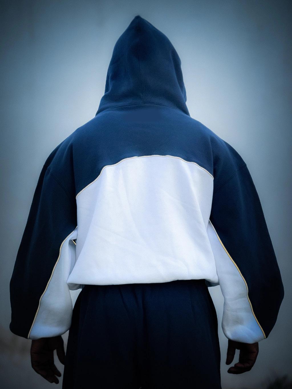 Sudadera y pantalones de chándal de estilo americano nuevo de invierno 2025 transfronterizo, personalizados, de calle, con bloques de color, de moda, de marca, de cuello redondo y manga larga