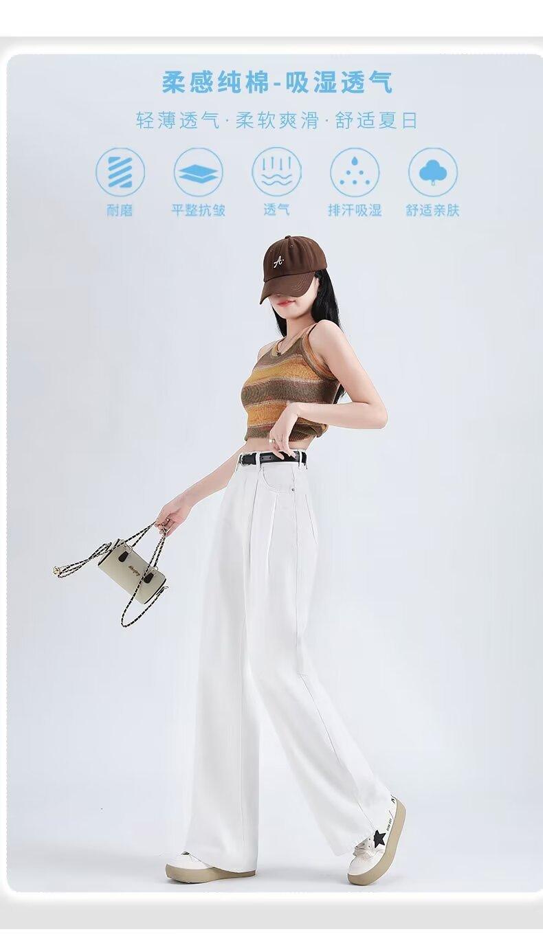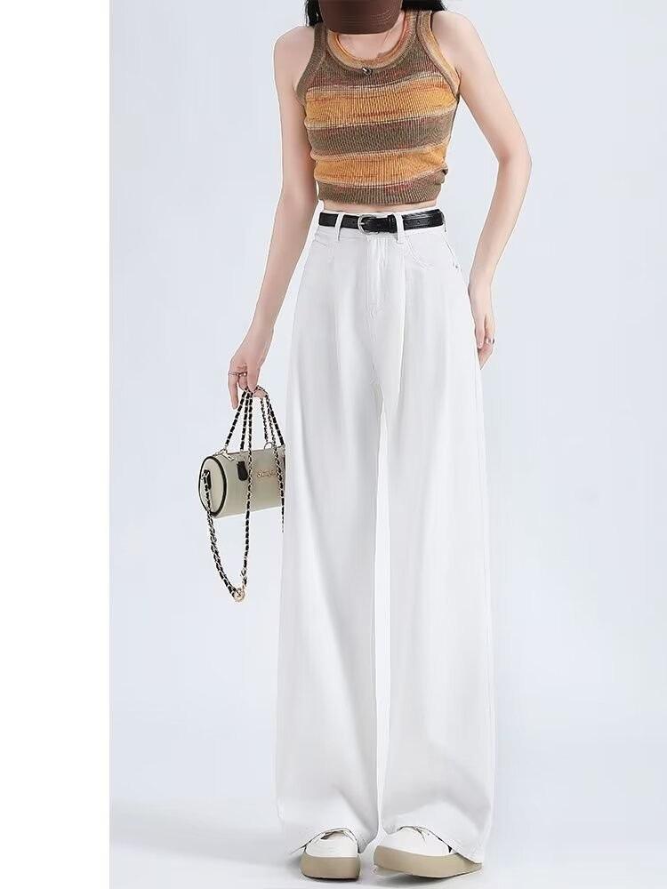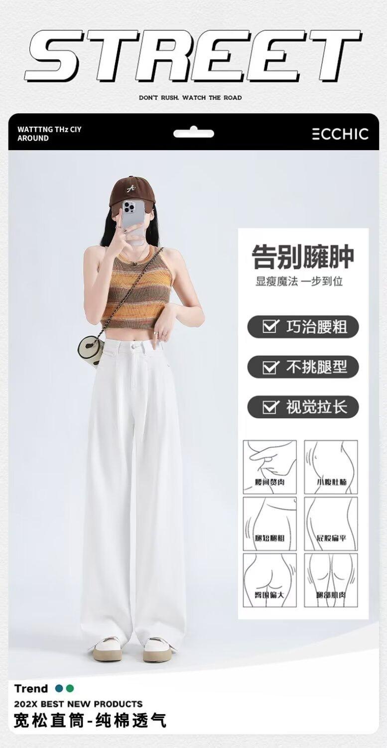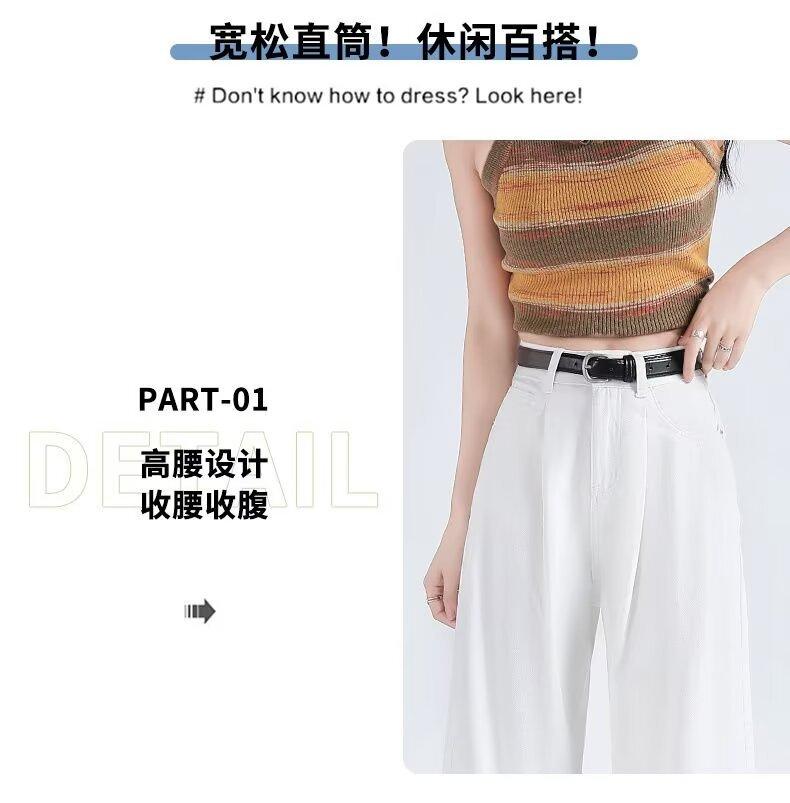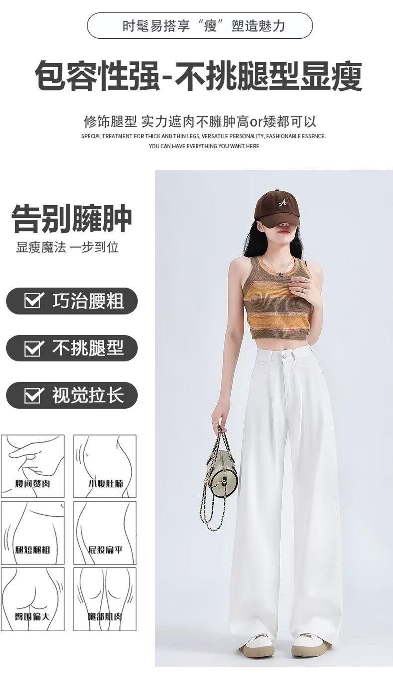 Vaqueros blancos plisados de pierna ancha para mujer, primavera y otoño, nuevos pantalones rectos holgados de cintura alta, adelgazantes, 2024