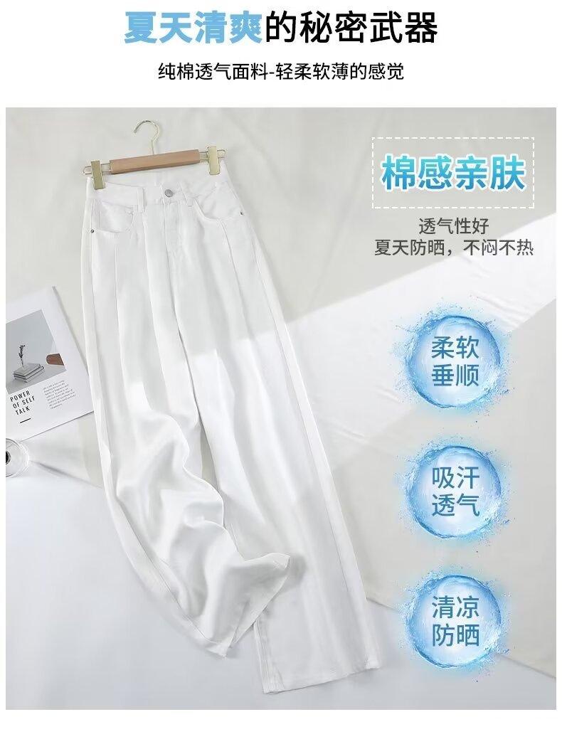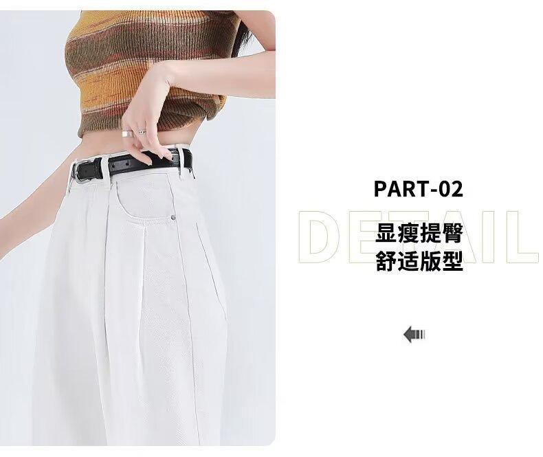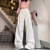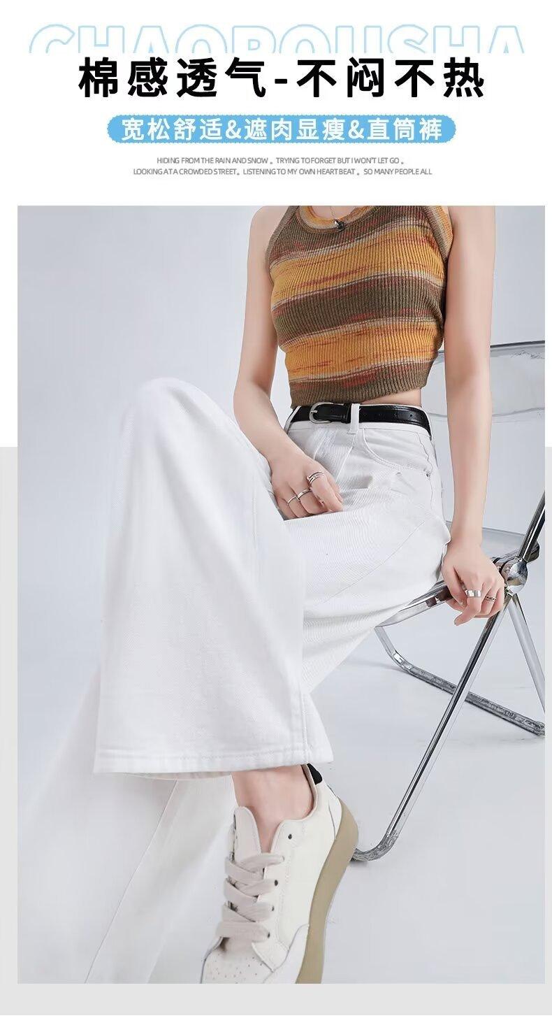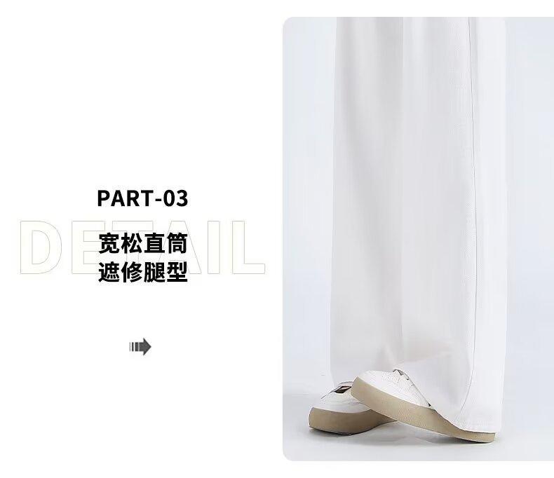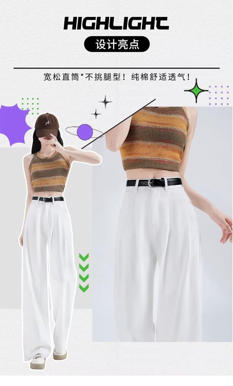 Vaqueros blancos plisados de pierna ancha para mujer, primavera y otoño, nuevos pantalones rectos holgados de cintura alta, adelgazantes, 2024