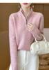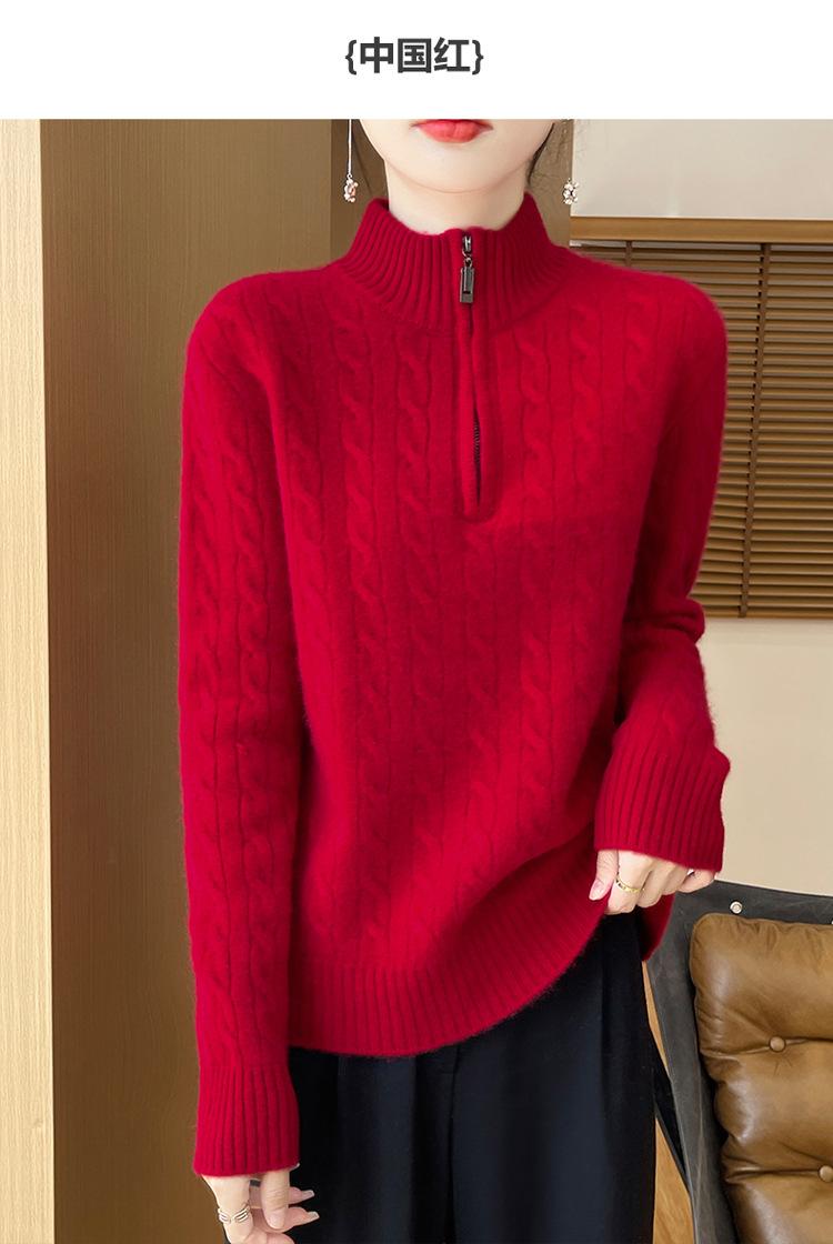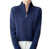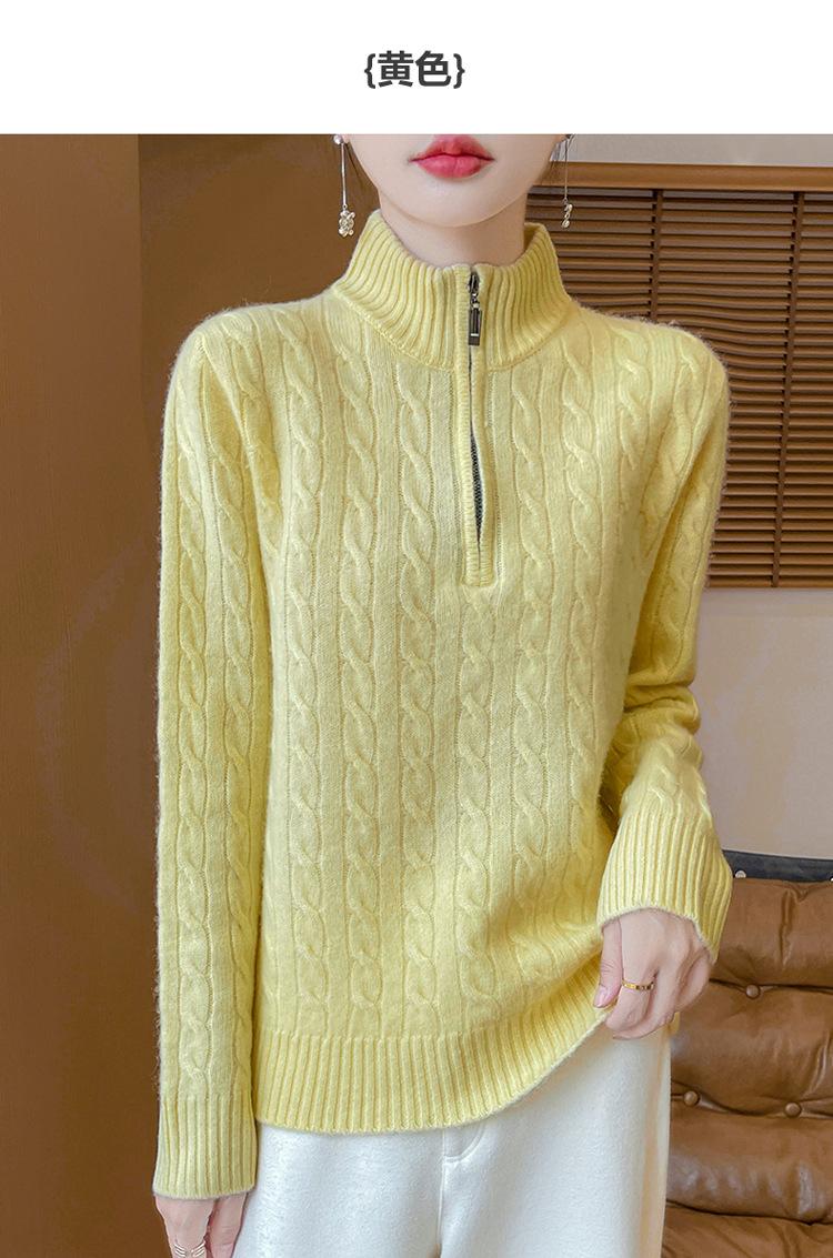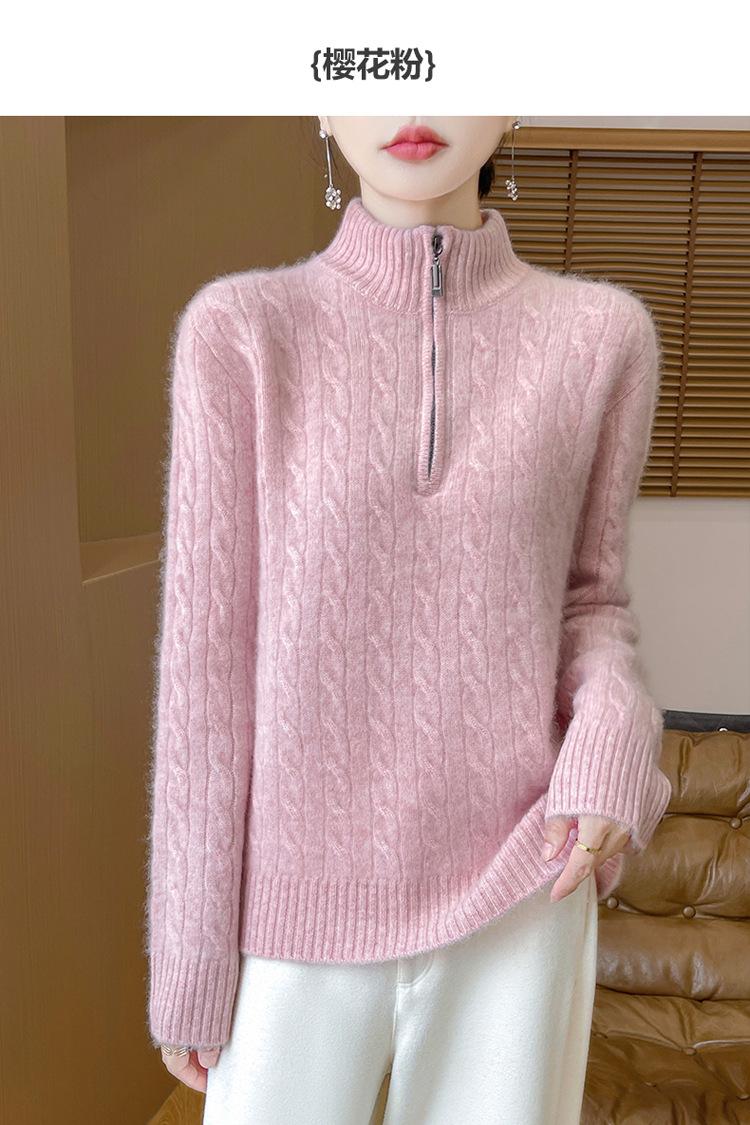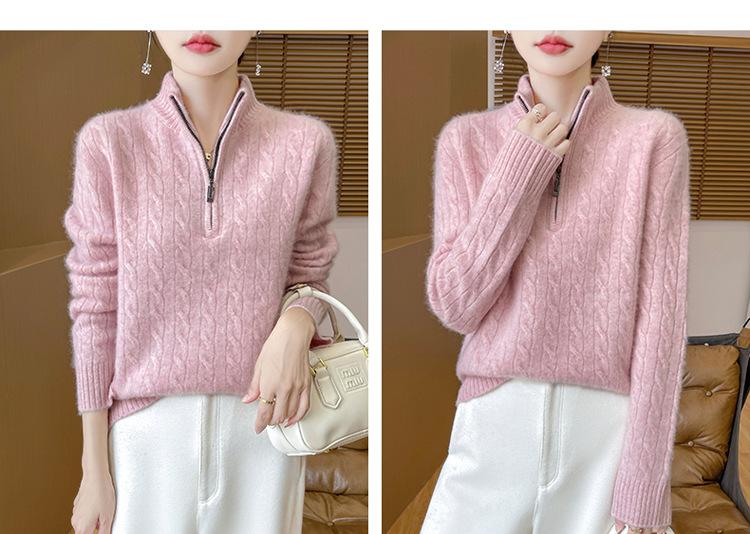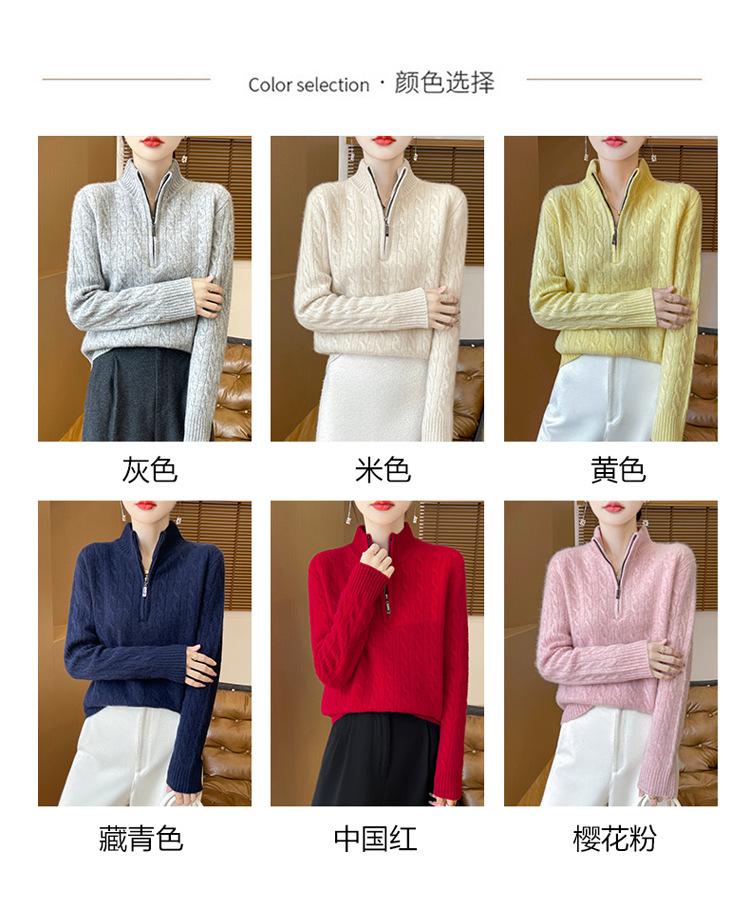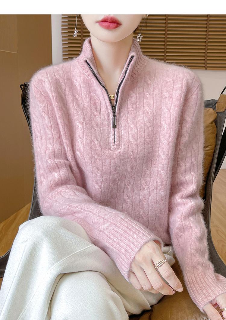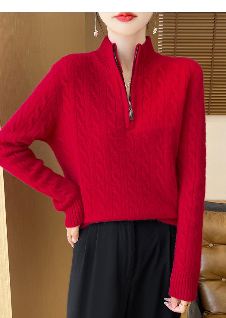 Otoño e Invierno Nuevo Casual Suelto Manga Larga Tejido Grueso Lana Pura Suéter Trenzado para Mujer con Media Cremallera