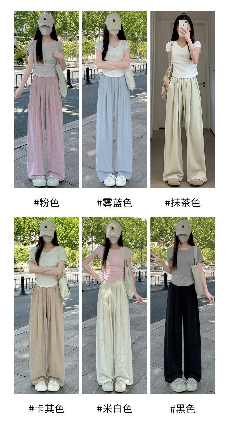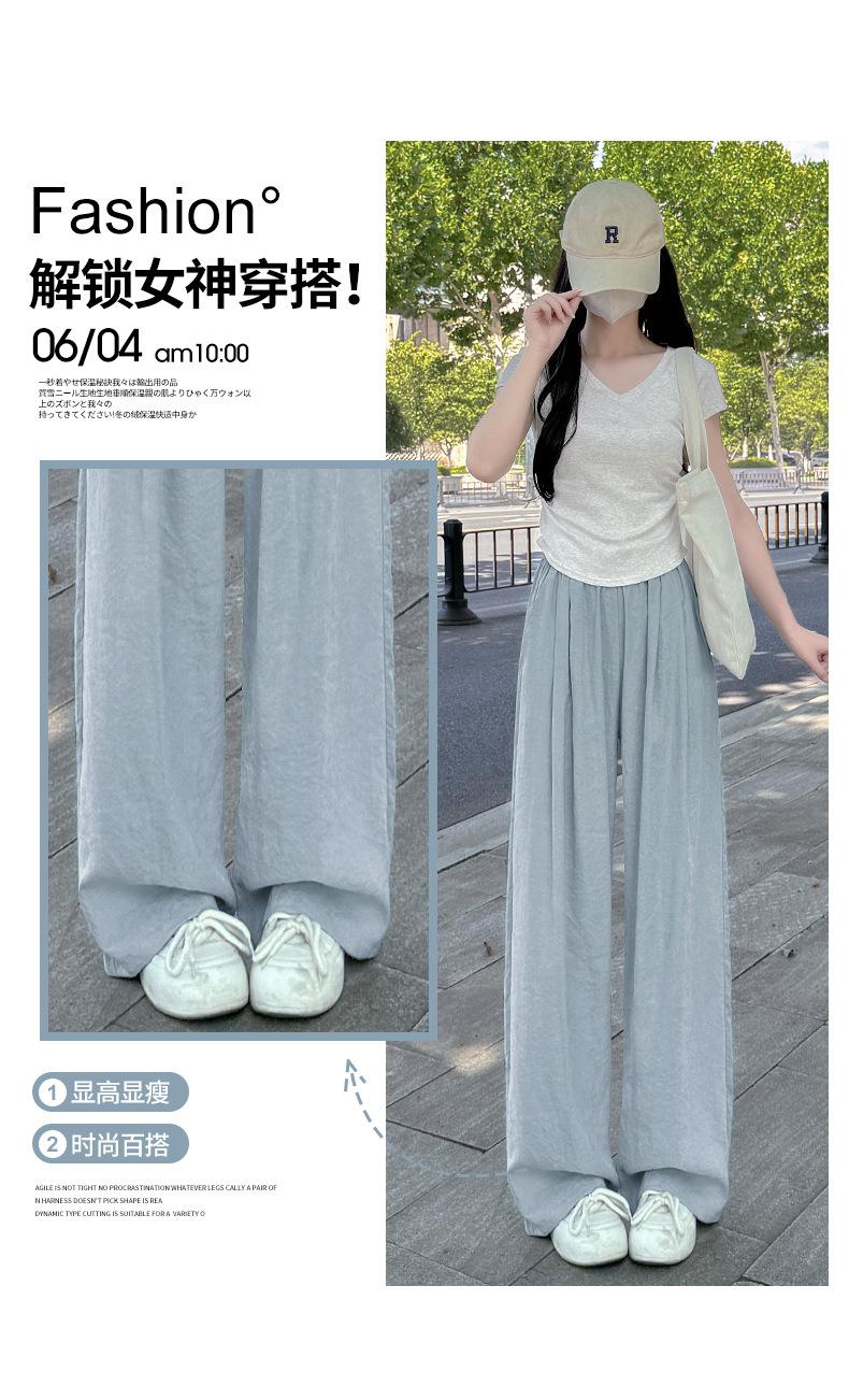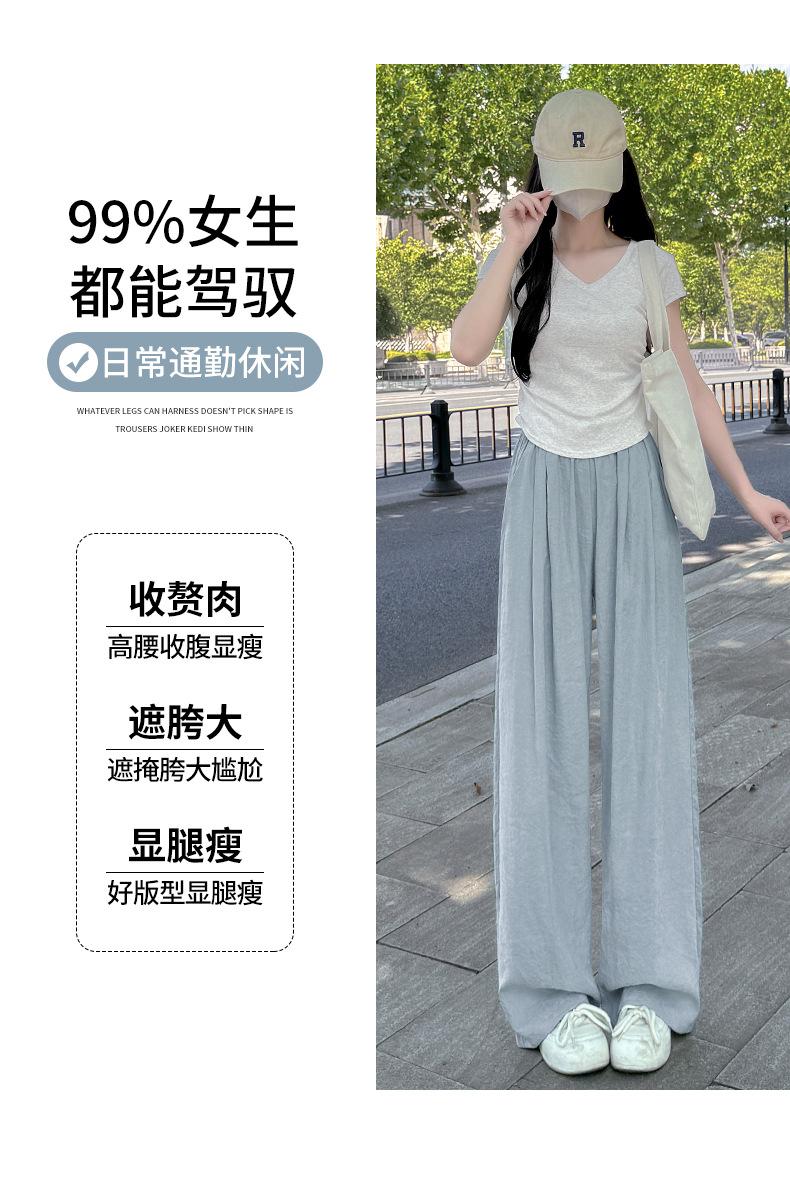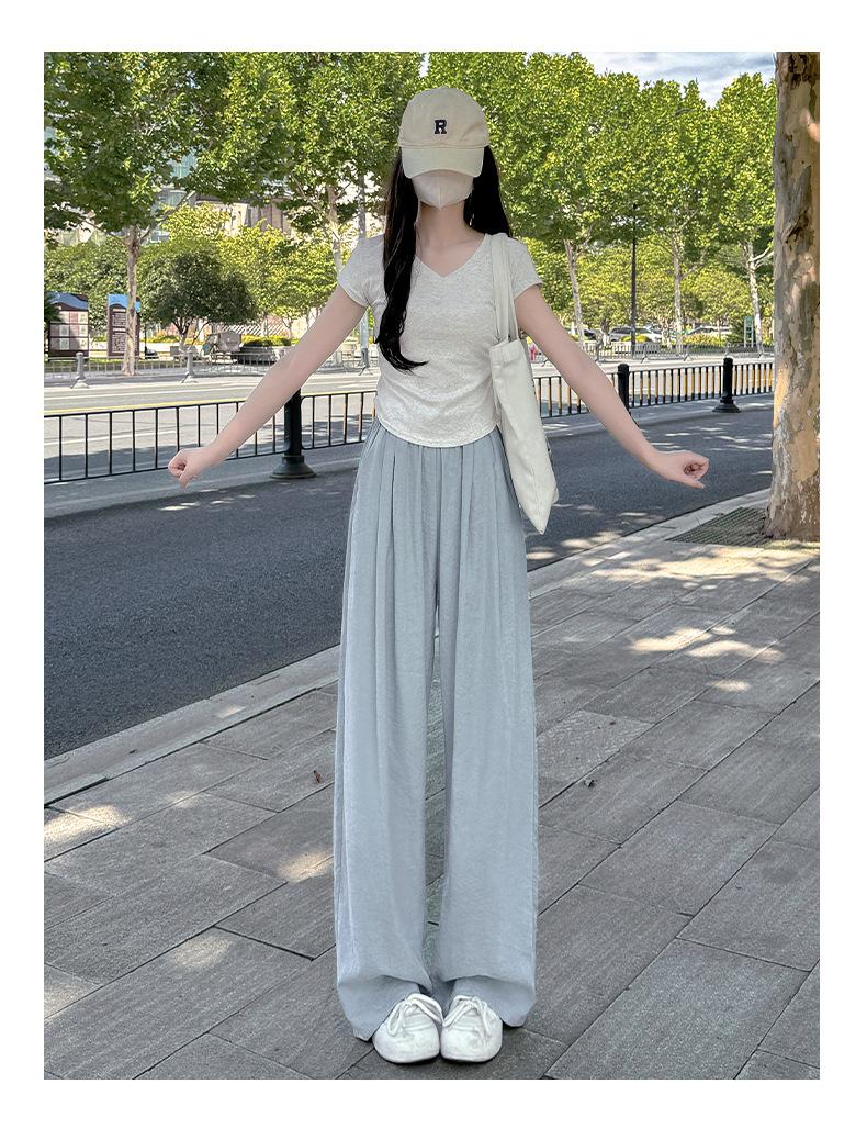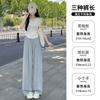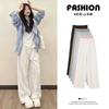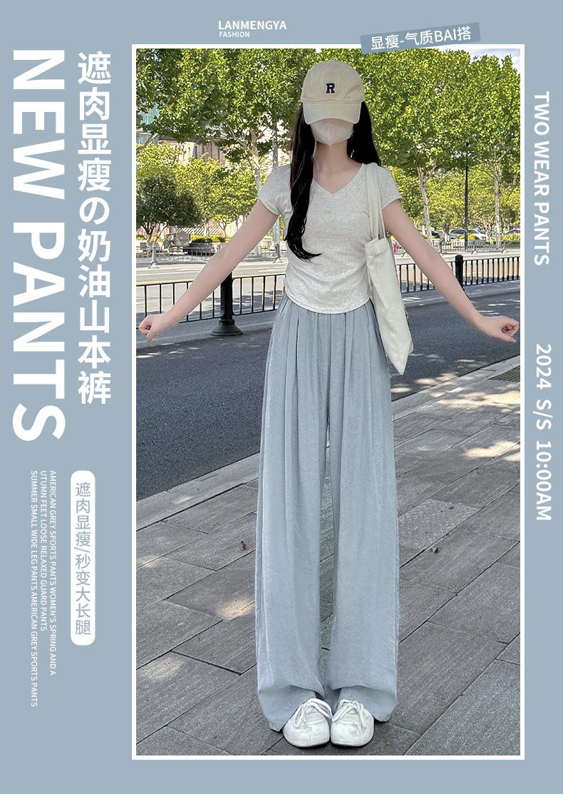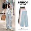 Pantalones Fu Yamamoto de Leche Azul para Mujer Verano Delgados 2024 Nuevos Caída Casual Pequeños Rectos Seda Helada Pierna Ancha