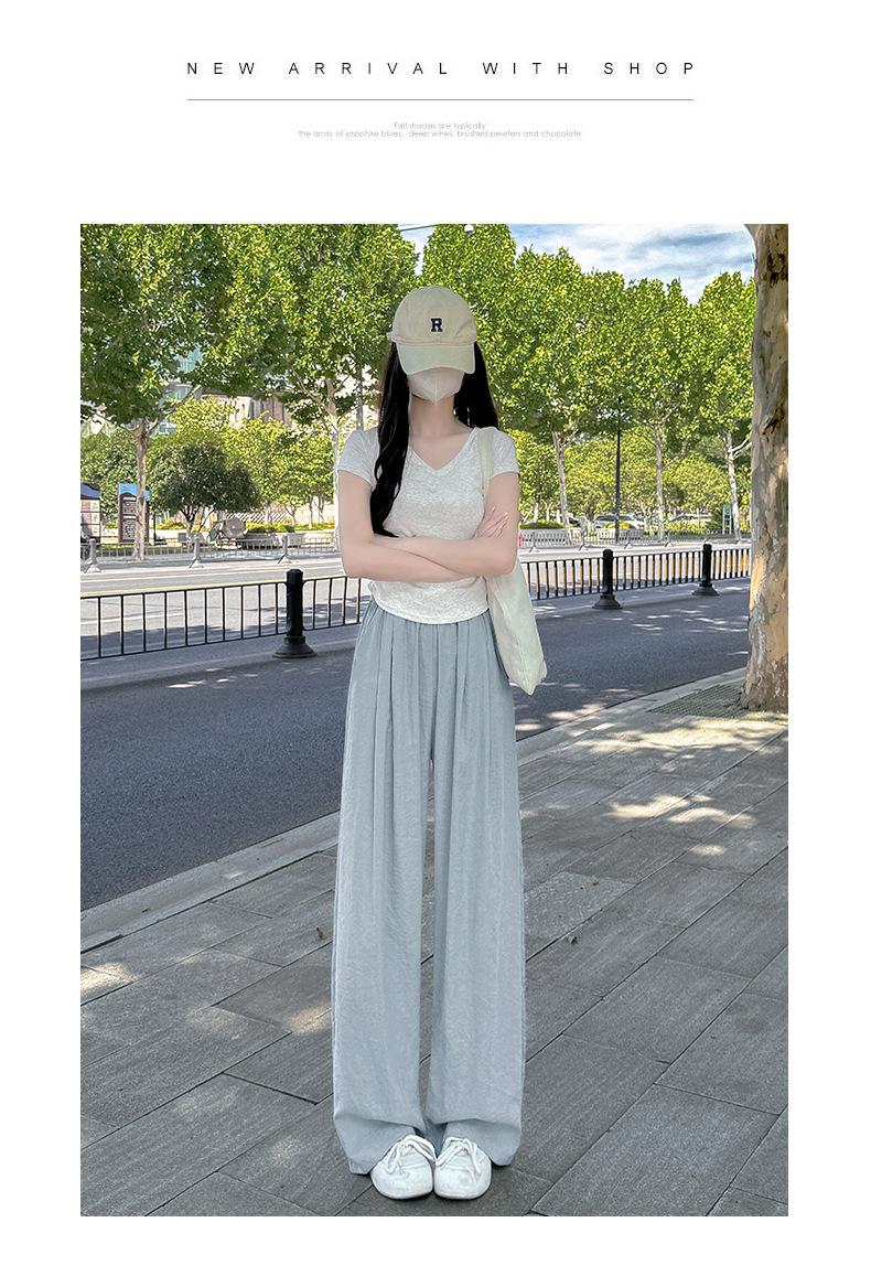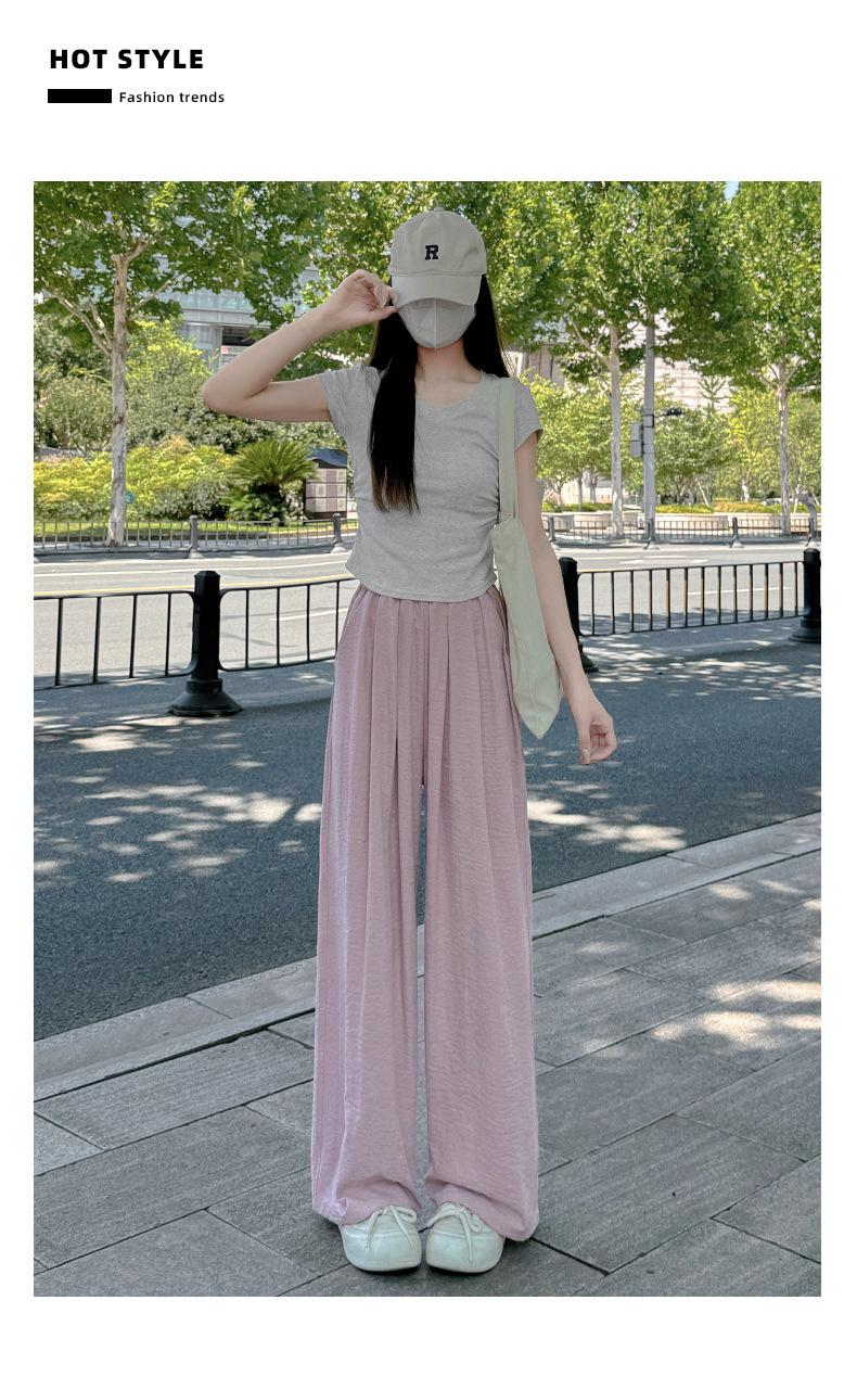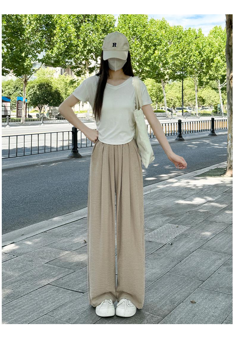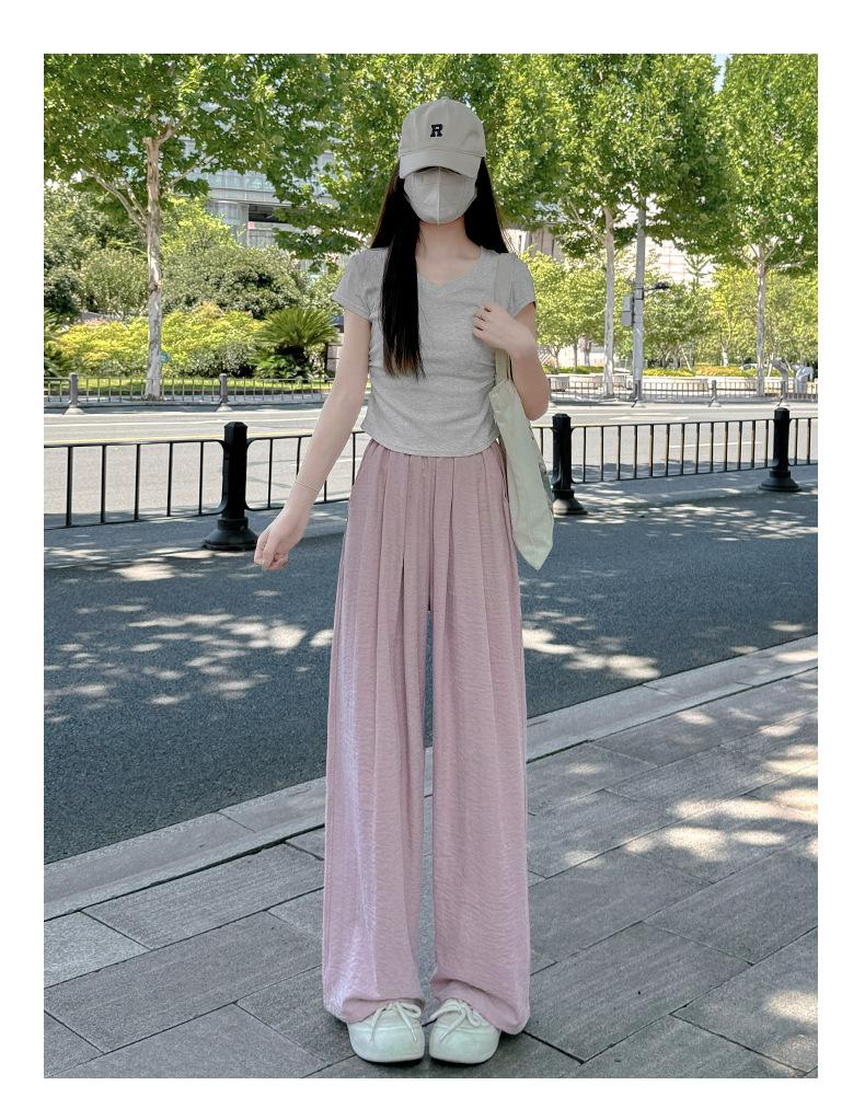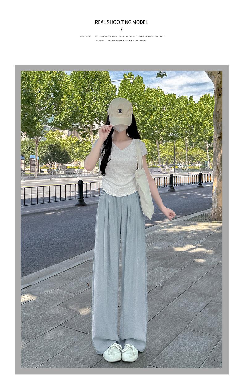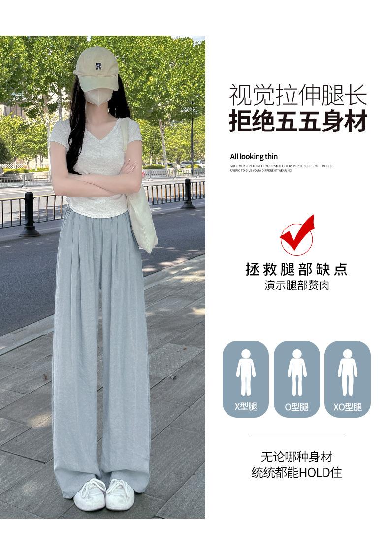 Pantalones Fu Yamamoto de Leche Azul para Mujer Verano Delgados 2024 Nuevos Caída Casual Pequeños Rectos Seda Helada Pierna Ancha