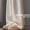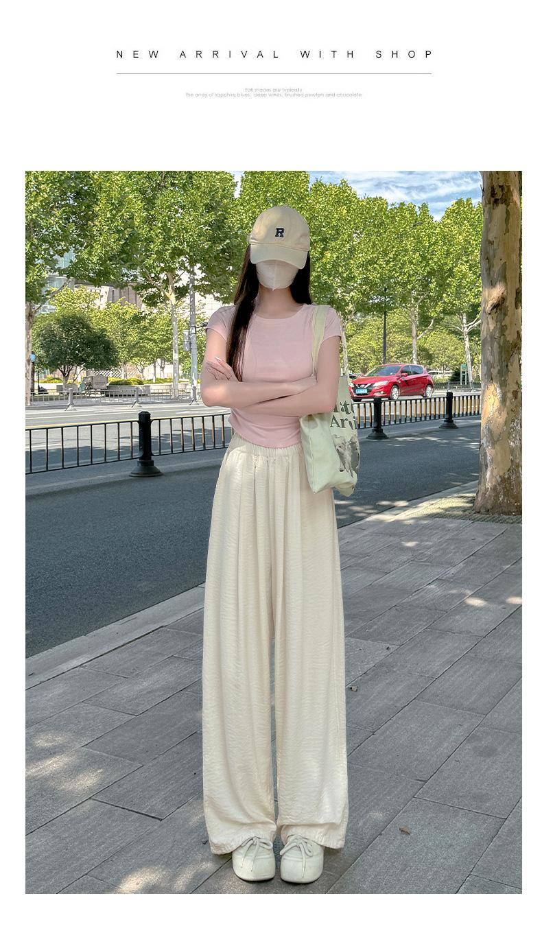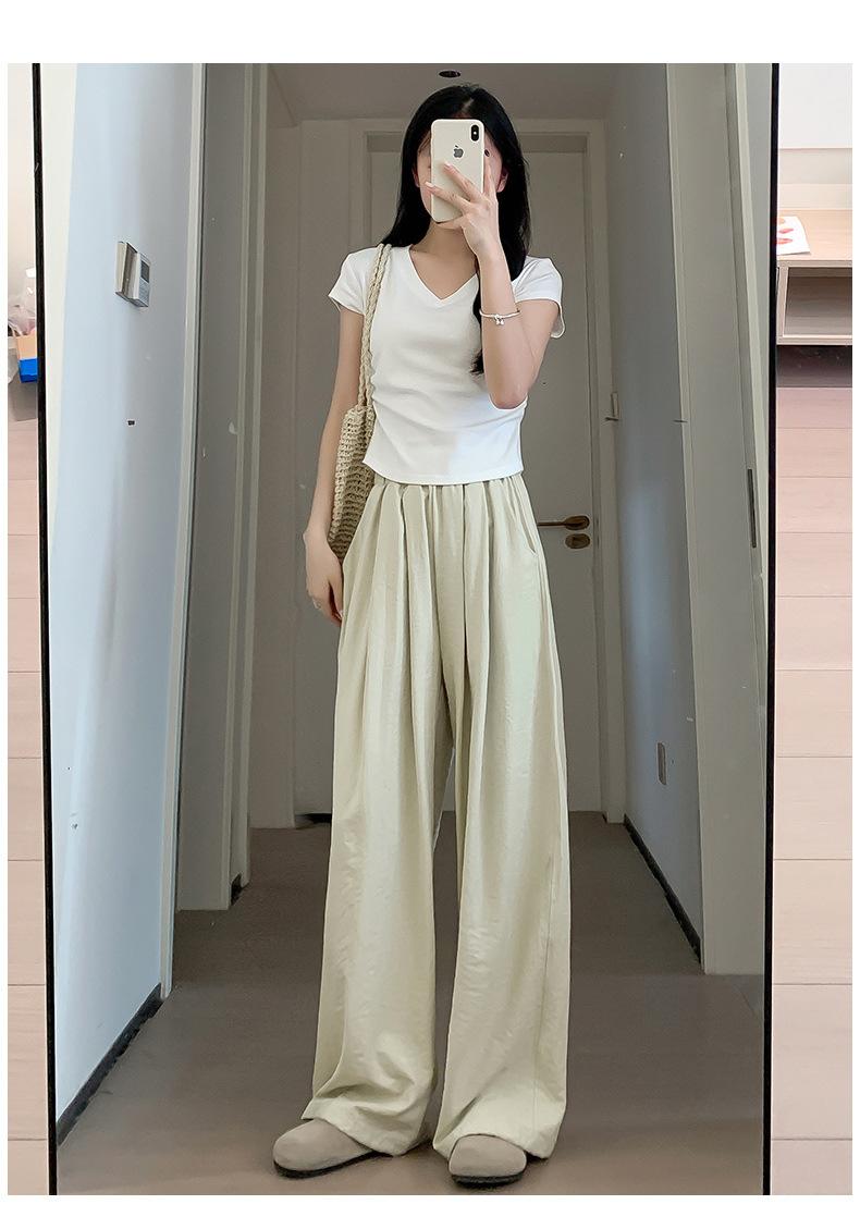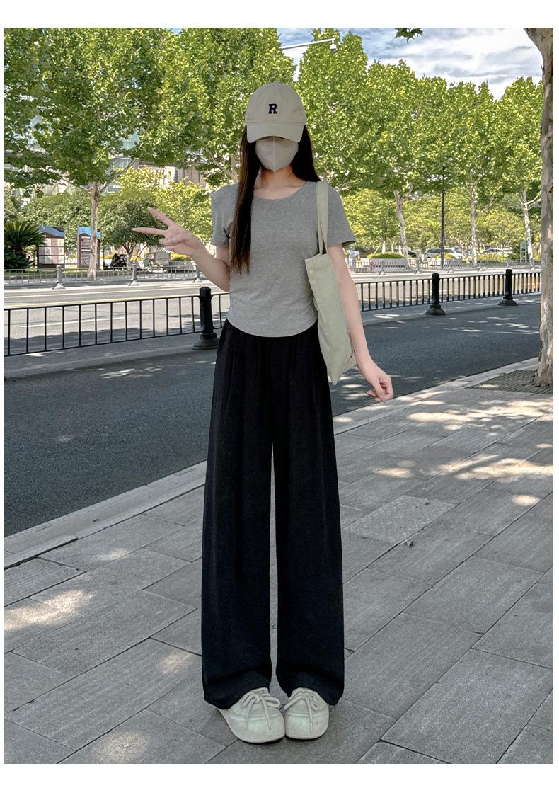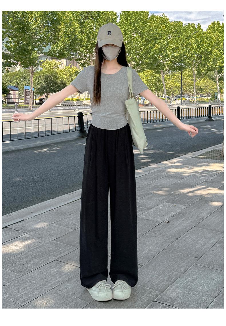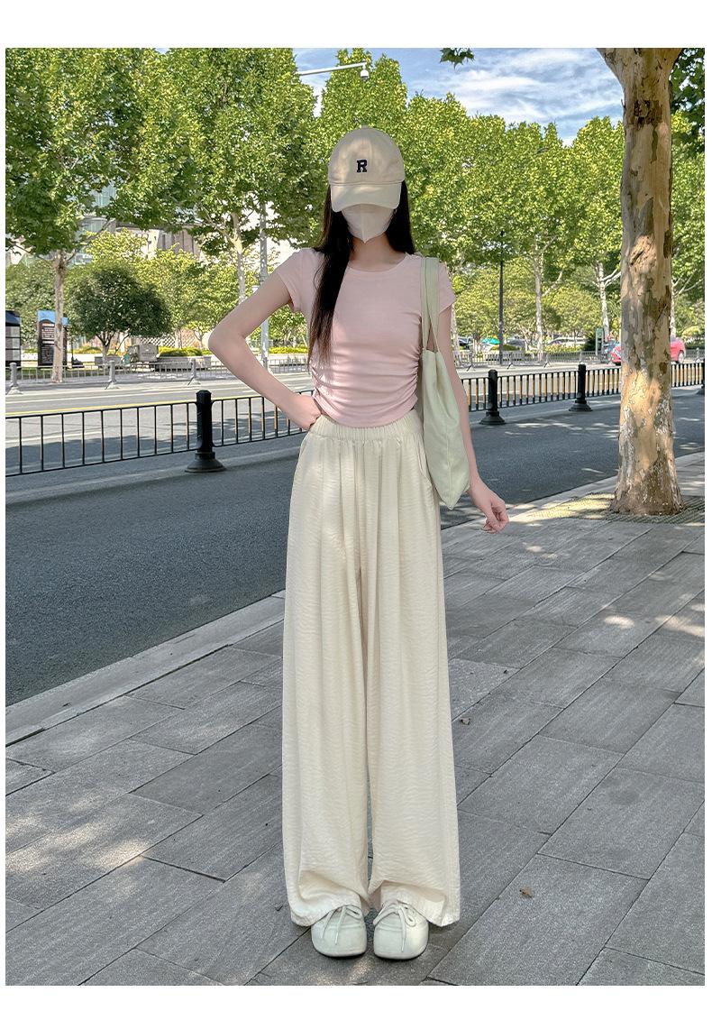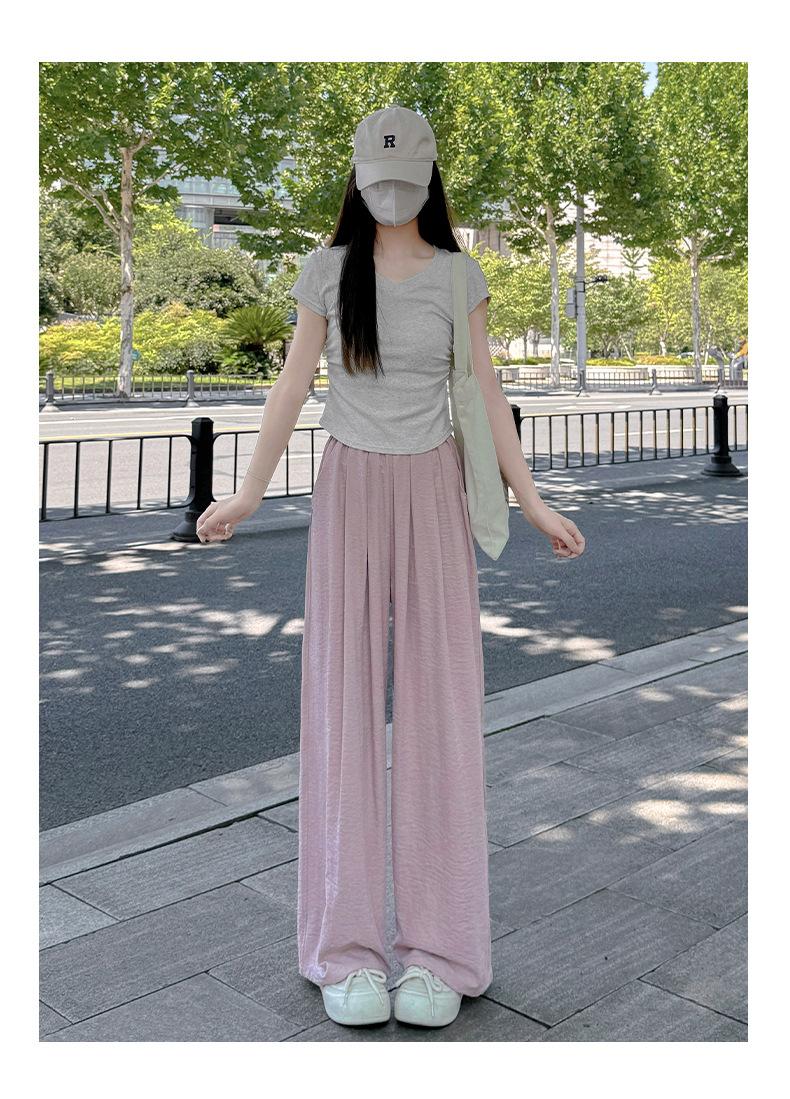 Pantalones Fu Yamamoto de Leche Azul para Mujer Verano Delgados 2024 Nuevos Caída Casual Pequeños Rectos Seda Helada Pierna Ancha