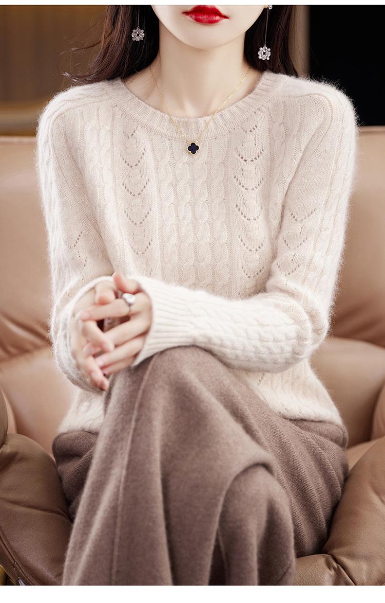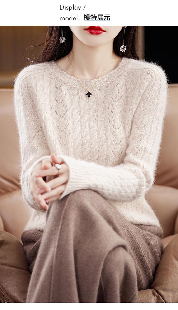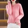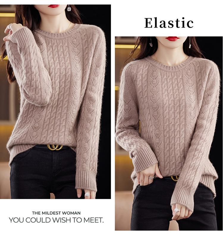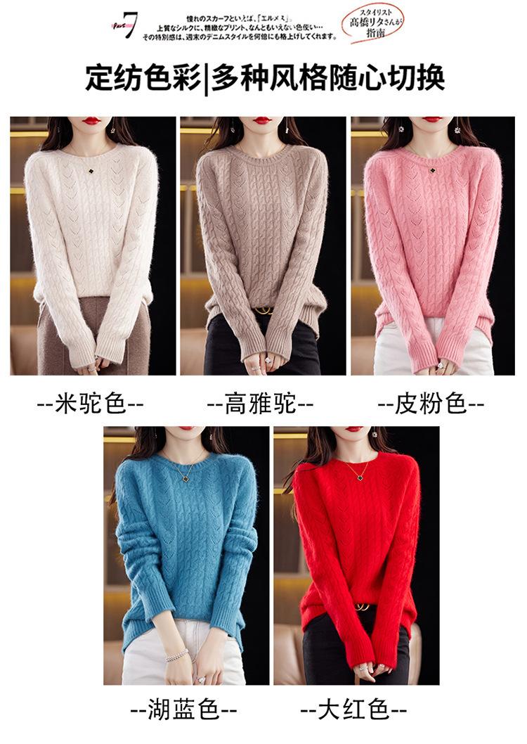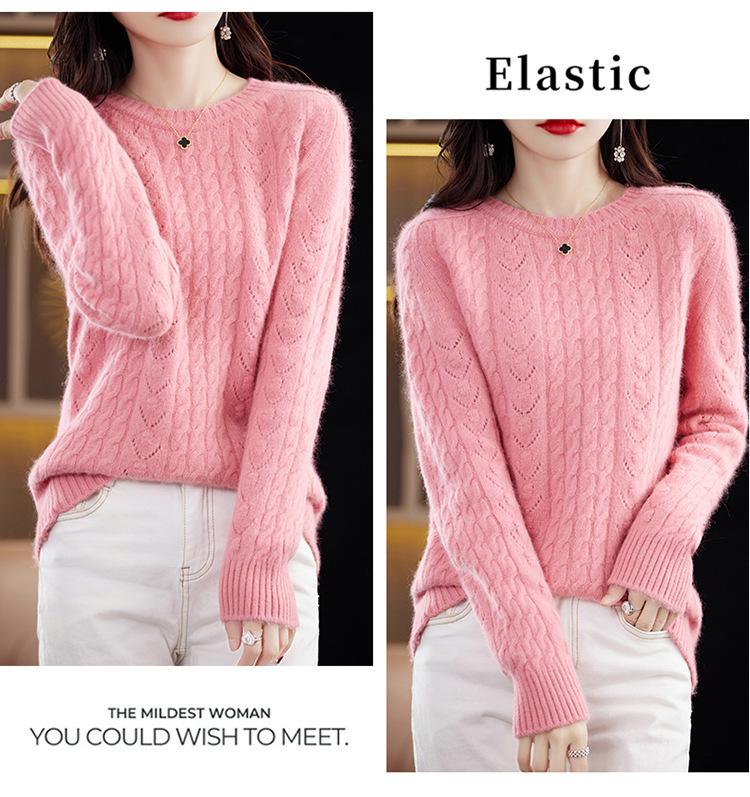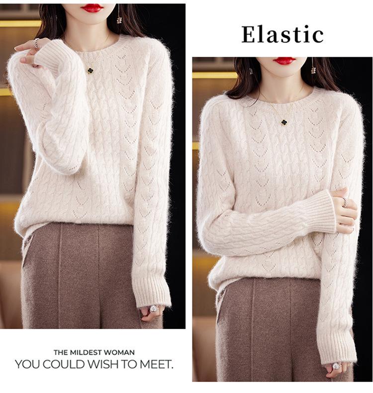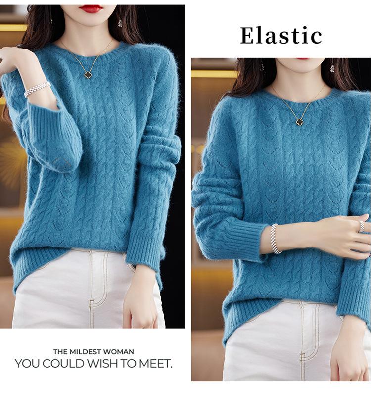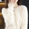Suéter de Forro Polar de Visón de Otoño e Invierno para Mujer Corto Grueso de Cuello Redondo Suelto Jacquard Color Sólido Jersey Lana Base